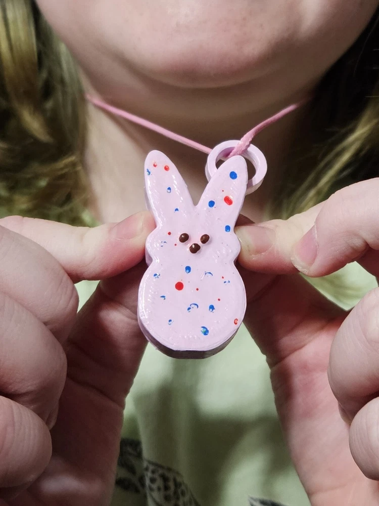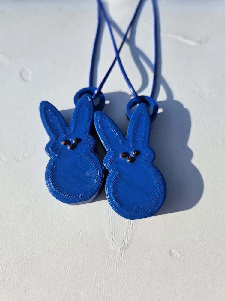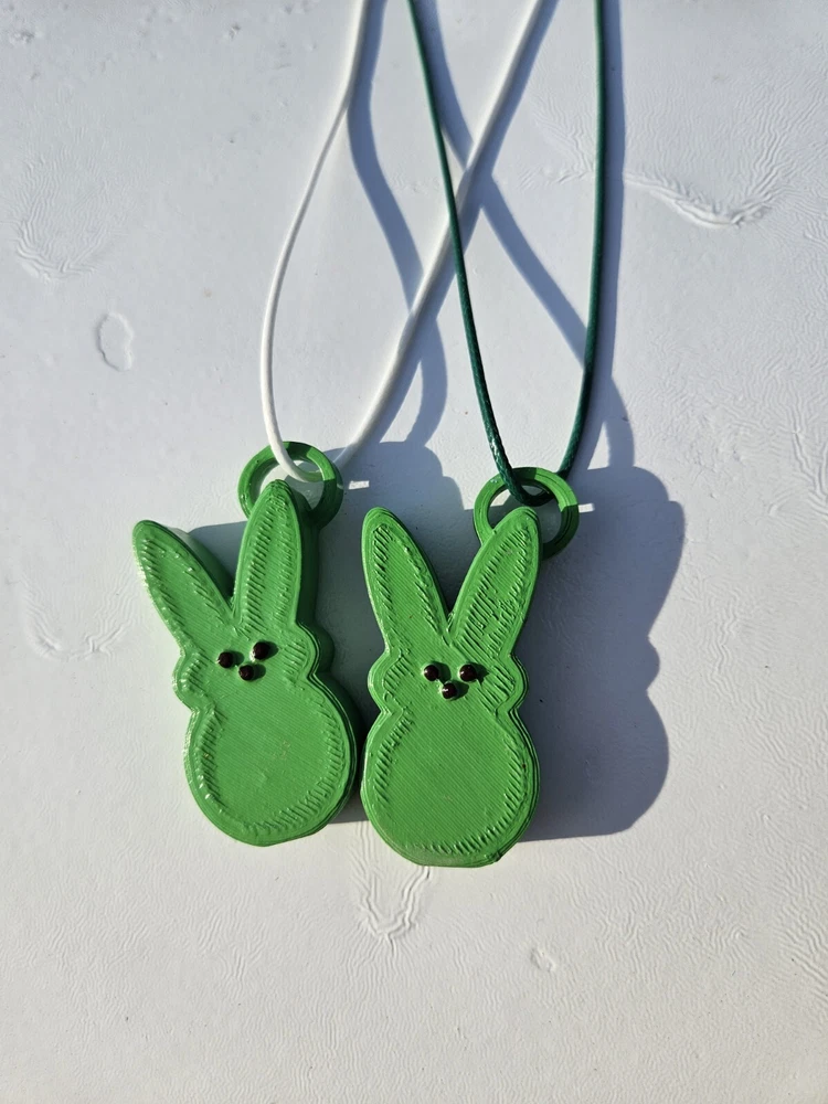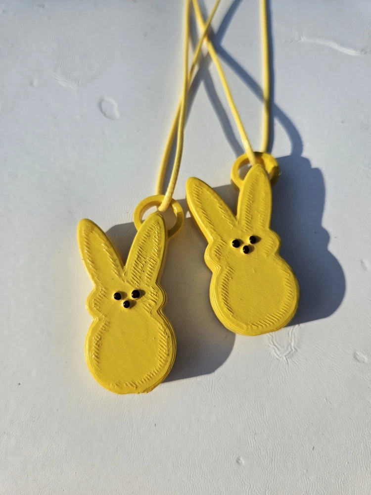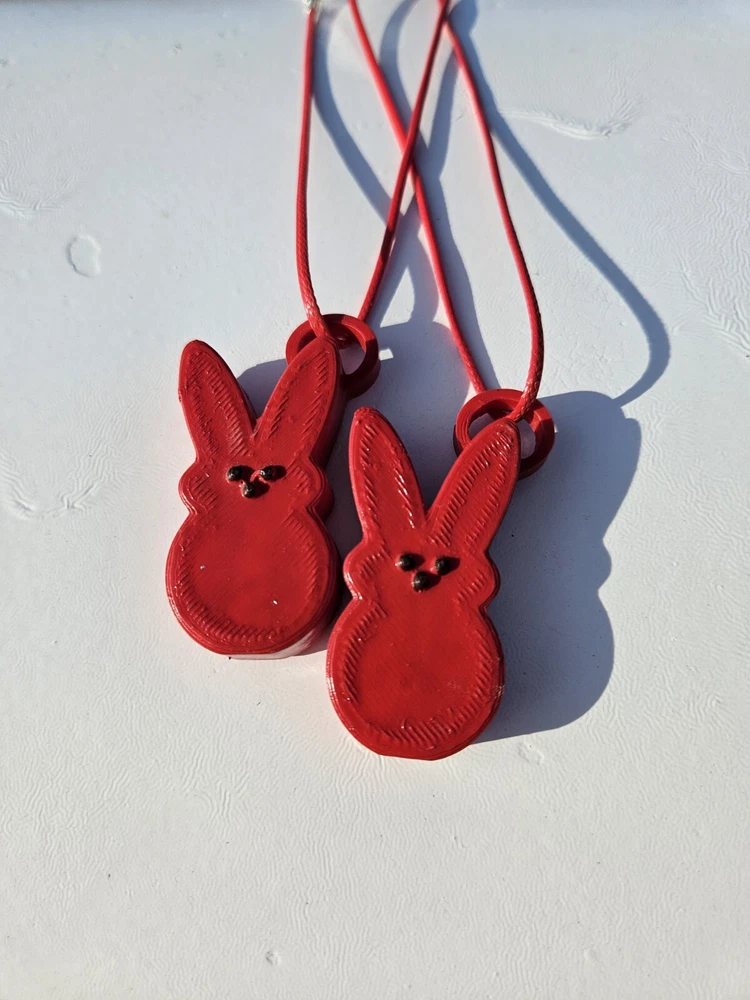 This listing is for 3 PEEP BUNNY pendant necklaces. They are 3d printed and painted in a variety of "Flavors". For each set/auction, you will receive 3 different PEEP bunny necklaces (a random set).