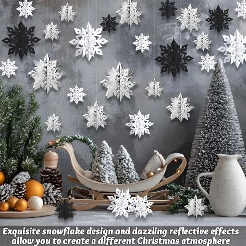 Menu 1. We require immediate payment. 2. We currently accept payment via eBay managed payments only. 3. Once payment is cleared, we will dispatch your shipment within 1-3 business days. Please refer to the "Shipping" tab for more information regarding shipping speed to your destination. Christmas Snowflake Decorations Indoor, 24PCS 3D Paper Snowflakes Hanging Ornaments Snowflake Garlands for Xmas Christmas Tree Winter Wonderland New Year Party Home Decorations Product description Super Value Set: This Christmas ornaments set features 8 white snowflakes, 8 black snowflakes, and 8 silver snowflakes in three different sizes. Simply fold along the pre-sewn seam to create stunning 3D snowflakes. Their intricate designs and various colors capture light beautifully, bringing an elegant and captivating ambiance to your indoor holiday decor Premium Meterial: Made from premium pearl paper, these Christmas snowflake ornaments are both durable and lightweight. Their waterproof and crease-resistant qualities ensure they maintain their pristine appearance over time. Note: Please be careful when opening the package to avoid tangling Ideal Sizes: This Christmas hanging decor set includes white, black, and silver 3D snow flakes in three sizes (9.8", 7.8", and 5.8"), perfect for adding layers and dimension to your holiday decorations. Whether suspended from ceilings, placed on windows, used as a snowflake garland, or hung on Christmas trees, these Christmas hanging snowflakes will make your festive display stand out Versatile Use: These 3D snowflake Christmas decorations are perfect for various festive occasions, including Christmas parties, New Year celebrations, winter weddings, and winter wonderland themed parties etc. They also make great Christmas gifts and can be incorporated into DIY projects, infusing your events with classic winter charm Shop with Assurance: Reliable Support: We strive to offer top-notch products and unparalleled service. Whether you need help with your order, have questions about our our Christmas snowflake decorations for home, or encounter any issues, please reach out to us PLEASE MESSAGE US IF YOU HAVE ANY OTHER QUESTIONS, AND MANY THANKS FOR READING ALL OF THIS. Copyright ©#. All Rights Reserved.