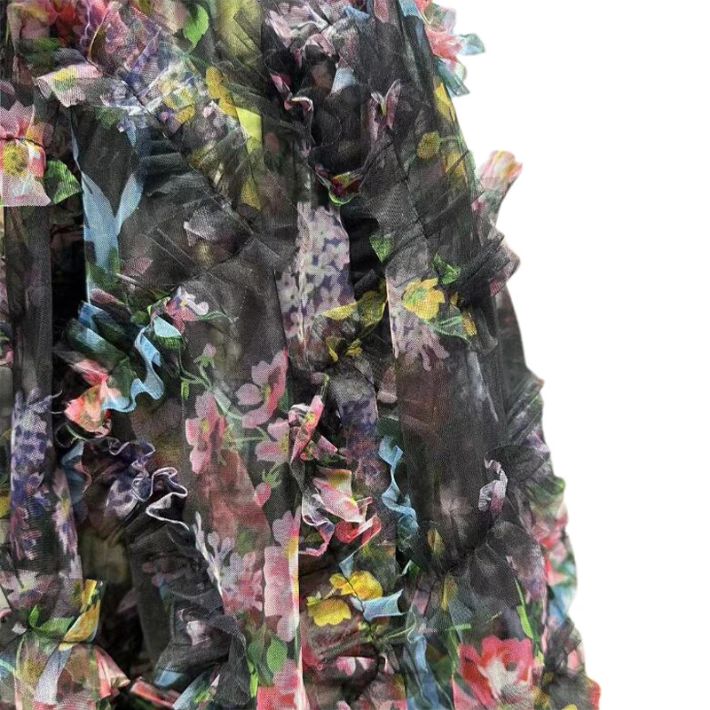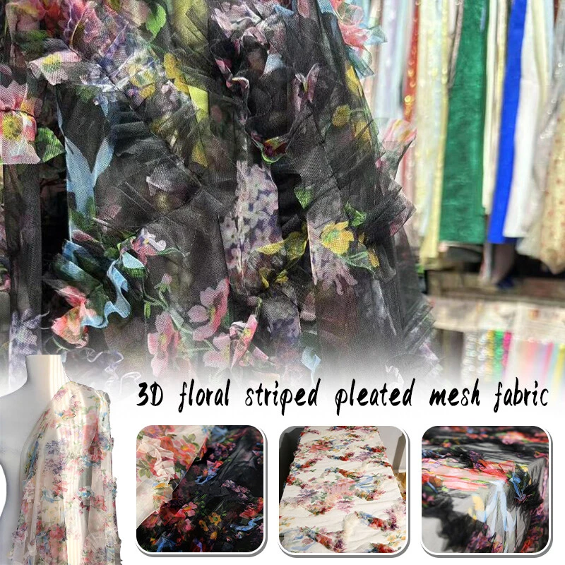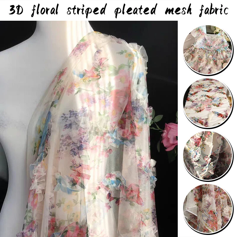 3D Pleated Floral Striped Mesh Fabrics Creative Handmade DIY Cloth Sewing Design