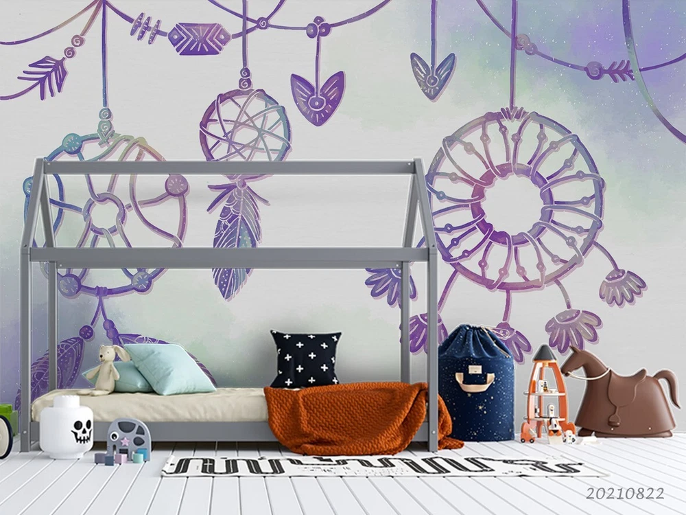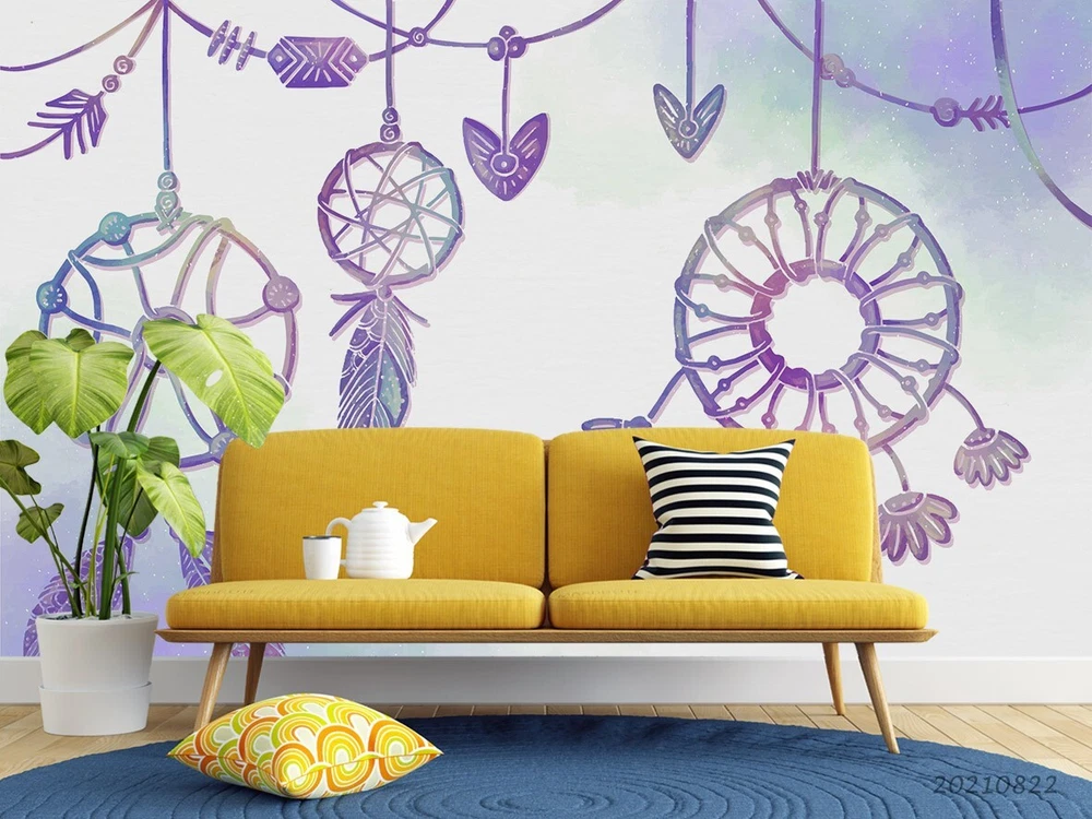 3D Purple Dreamcatcher Wall Murals Wallpaper Murals Wall Sticker