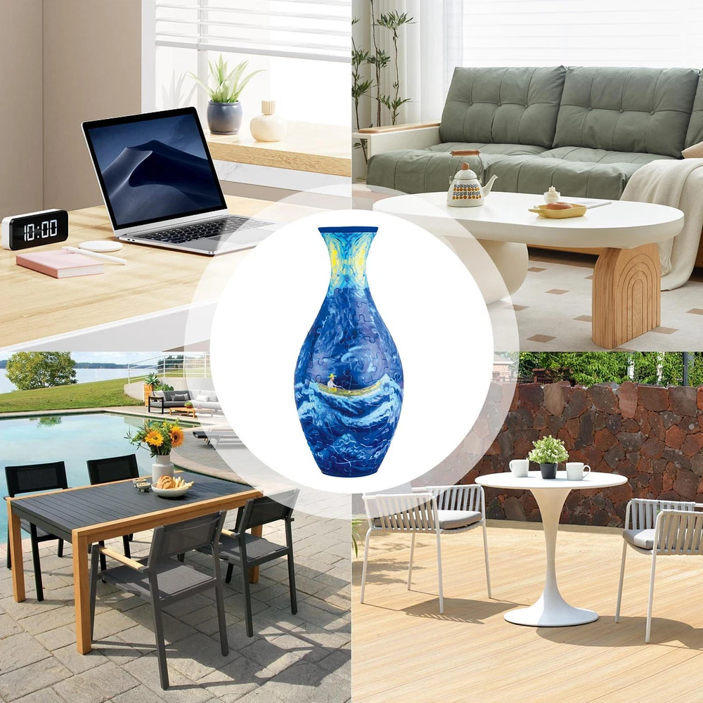 Bullet Points: Puzzle Designed: Transform your space with this stunning vase made from 160 intricately curved 3D puzzle pieces. Standing at 9.5 inches tall and 4.4 inches wide, this unique vase boasts a narrow mouth with a 2.3-inch diameter to showcase your favorite blooms. Artistic Flower Holder: Get creative with this 3D puzzle vase and showcase your love for art. The intricately designed vase is an ideal home accent piece that doubles as a charming flower holder. Favorable Present: Impressing lovers, relatives, and friends with a 3D Puzzle Vase, a notable and unique gift option that adds a touch of elegance and sophistication to any living space Easy to Install: The 3D Puzzle Vase is a perfect addition for puzzle enthusiasts as it allows for precise assembly of its curved puzzle design without any need for glue Boosts Cognitive Ability: Enhance hand-brain coordination, creativity, and communication skills through hands-on interaction with our 3D Puzzle Vase. Suitable for parent-child interaction or creative activities between friends, improving cognitive ability and promoting social development These puzzle vases for flowers feature a narrow mouth perfect for bouquets. Decorative and a suitable gift for home decorators, they can be firmly connected for hands-on interaction. Material: ABS List: 1 piece * 3D Puzzle Vase