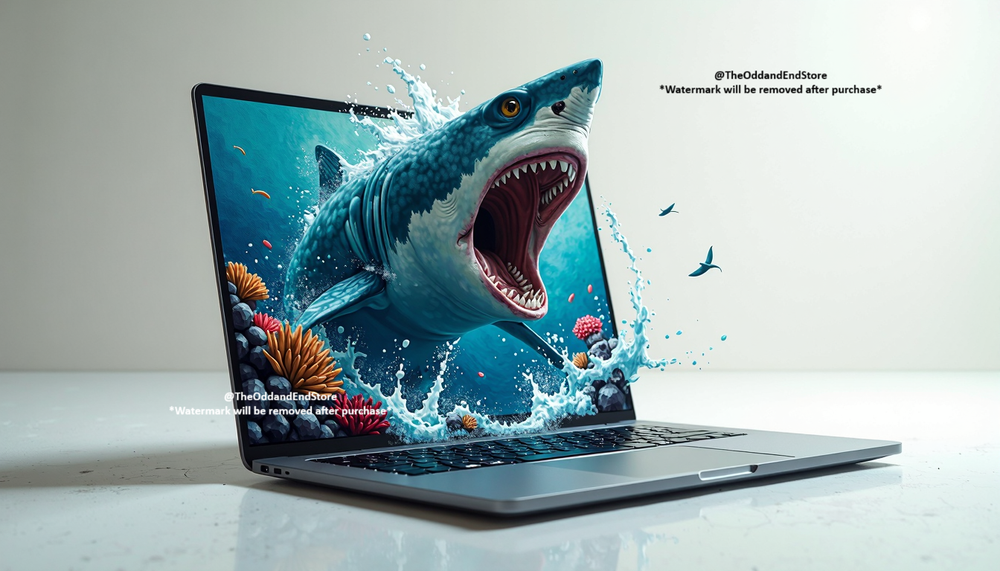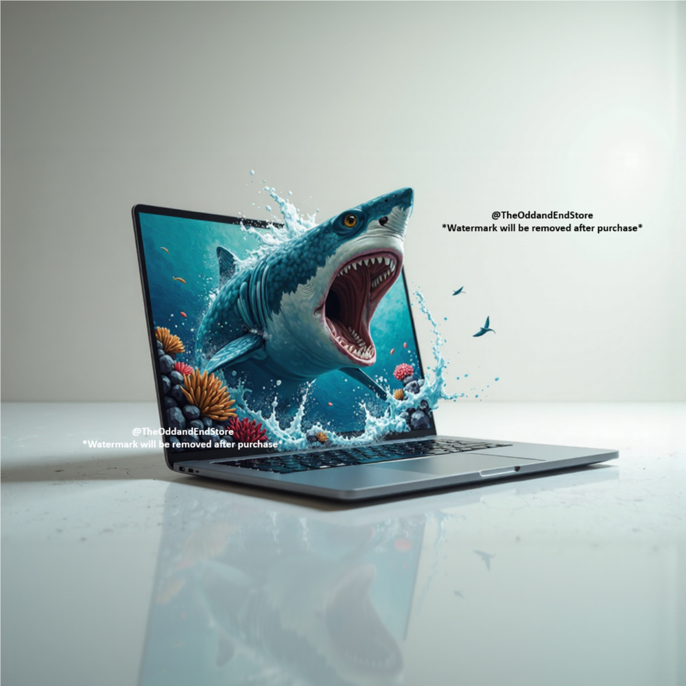This AI-generated artwork was created by The Odd and End Store to produce unique and visually striking digital images with artistic vision, making it ideal for individuals who appreciate distinctive and tasteful digital art. Shark bursting out of a laptop screen. File format: PNG 3 files 1 - Dimension: 1344 x 768 Pixels Aspect Ratio: 16:9 File size: 1.1 + - MB 1 - Dimension: 1024 x 1024 Pixels Aspect Ratio: 1:1 File size: 1.1 + - MB 1 - Dimension: 1080 x 1080 Pixels Aspect Ratio: 1:1 File size: 1.6 + - MB ** Terms & Conditions ** Immediate payment expected. Images are for personal use only—no resale or redistribution allowed. No returns for digital items. No exchanges or cancellations after images have been sent. You may use our images for many creative projects such as wallpaper/background/screensaver for Desktop, Laptop, Phone, iPad, Tablets, Tote bags, Wall art, and more. This is a digital product; no physical item will be shipped. You will receive the image(s) without watermark via eBay messaging within 24 hours of successful payment confirmation. Please check out our other listings. Reach out via eBay message if you have any questions. Thank you