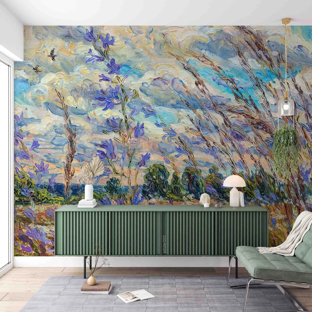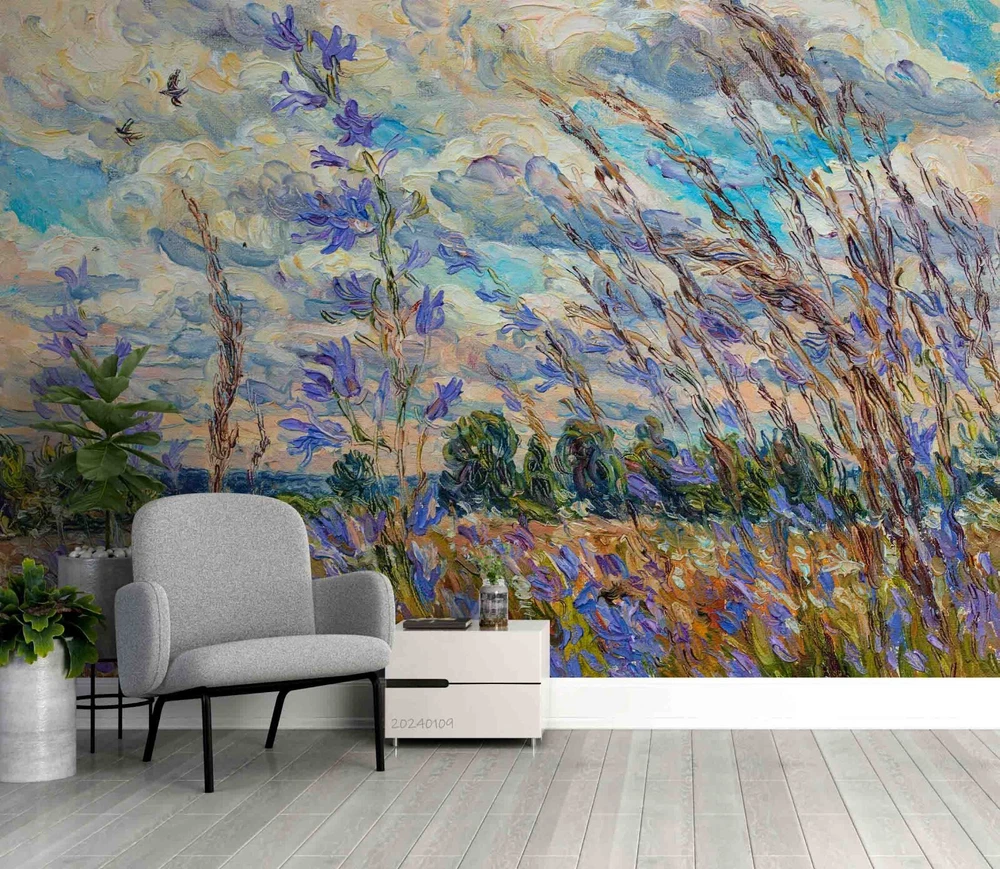 3D Sky Floral Oil Painting Wall Murals Wallpaper Murals Wall Sticker