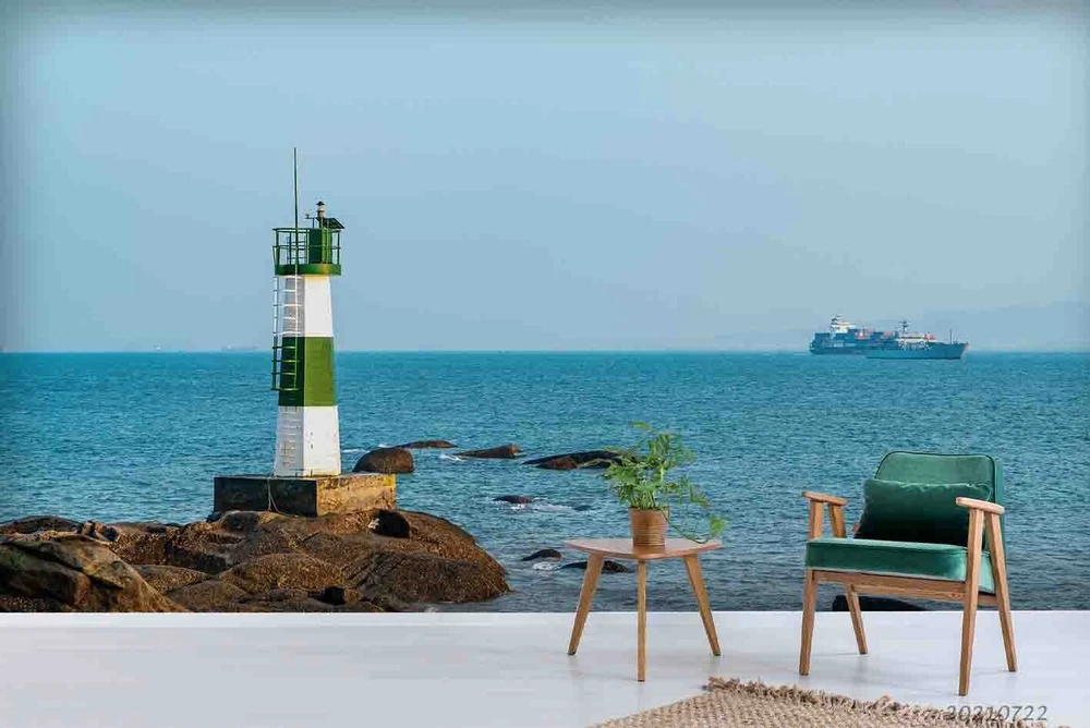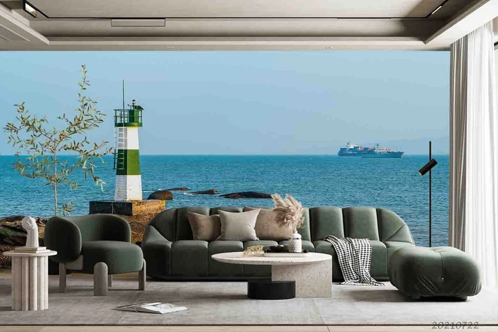 3D Sky Sea Boat Lighthouse Scenery Wall Murals Wallpaper Murals Wall Sticker 89