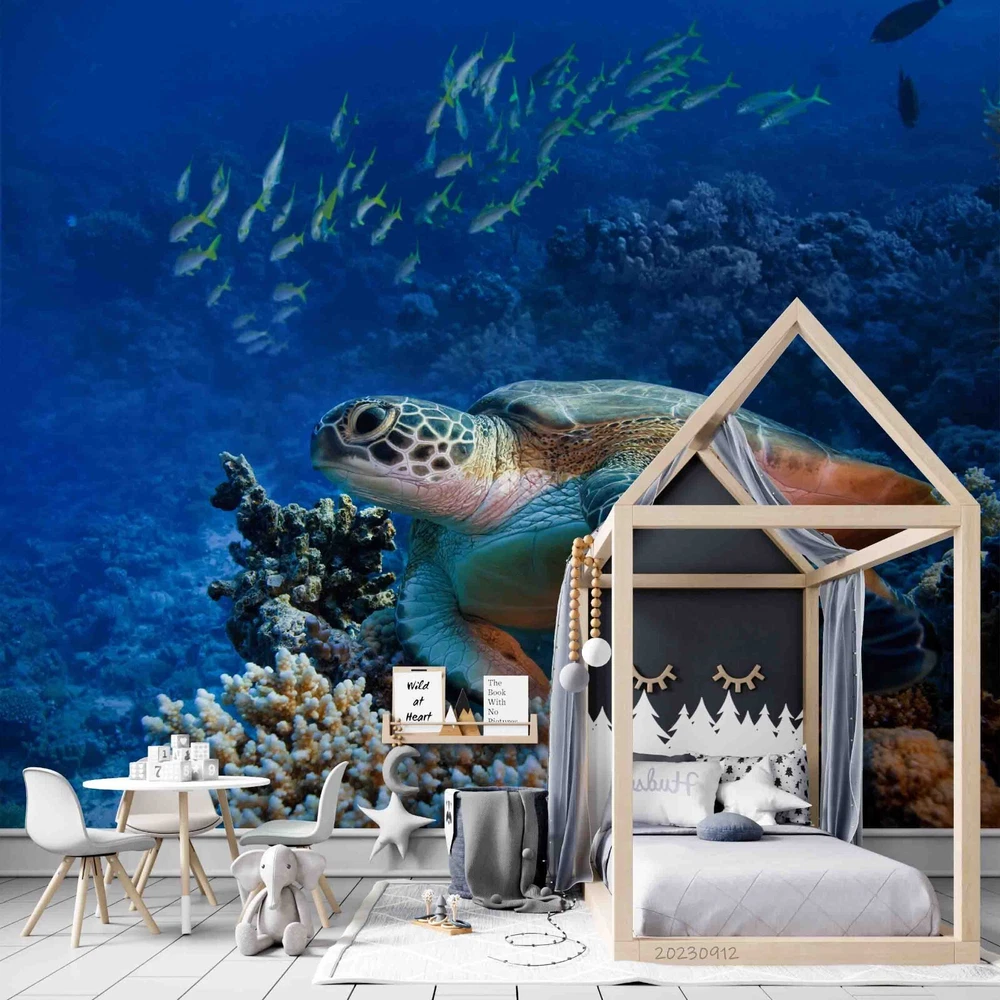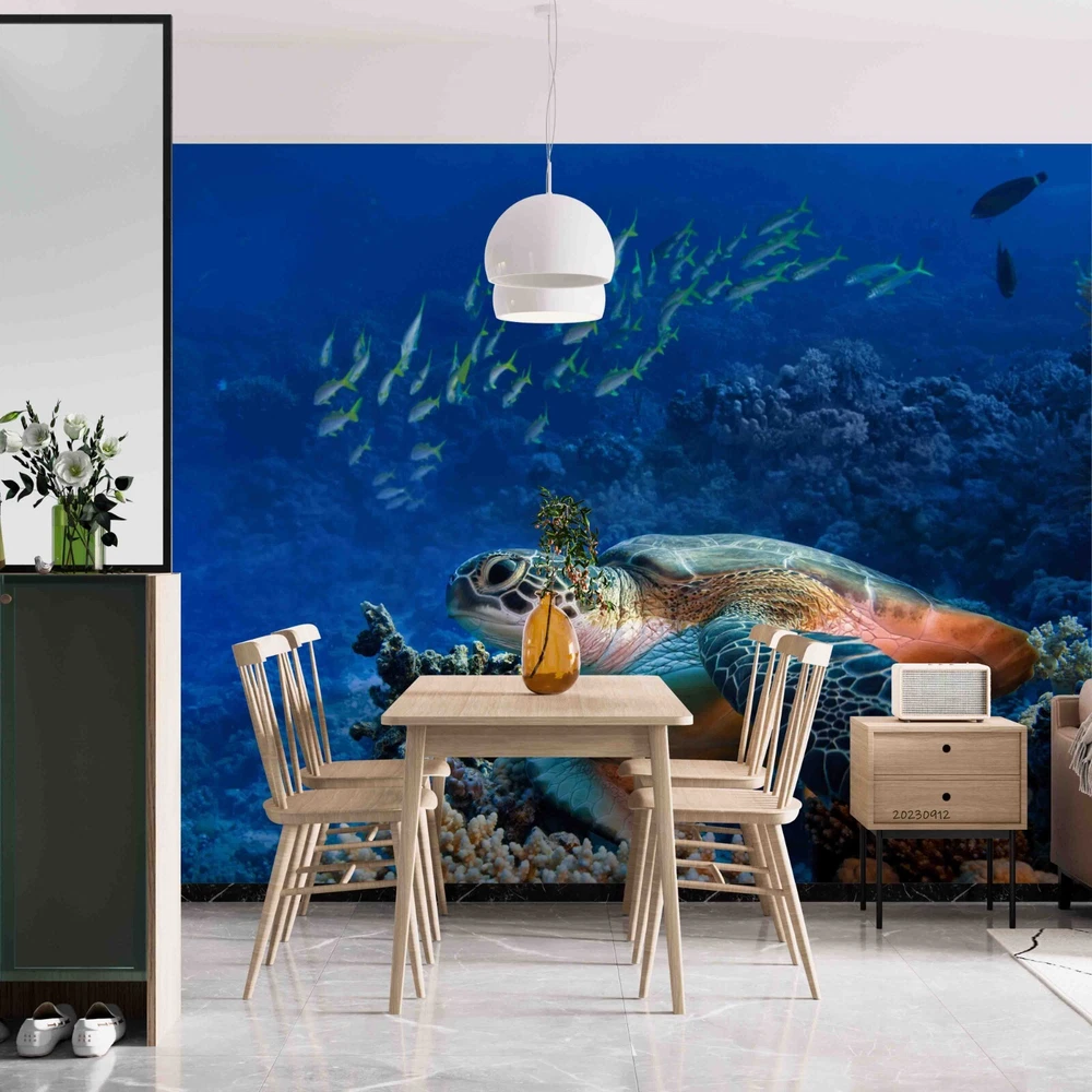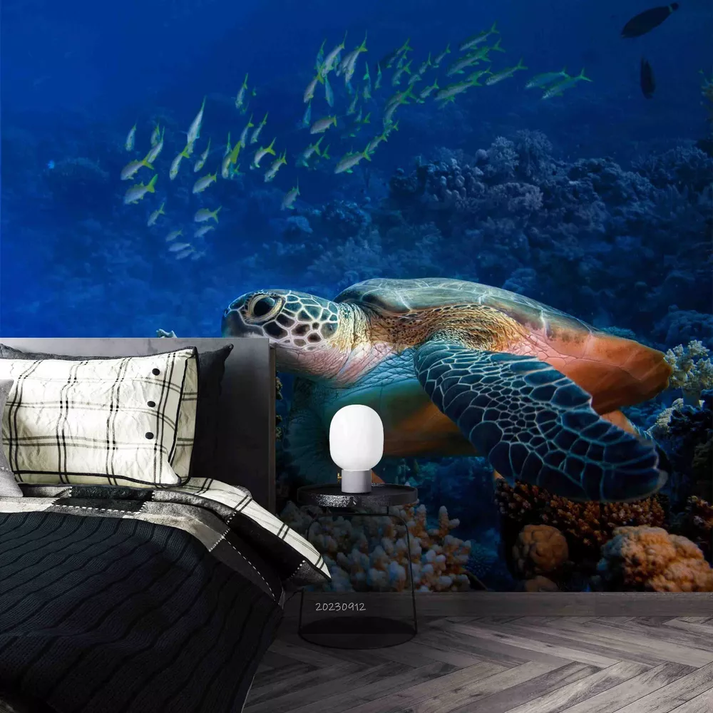 3D Underwater World Coral Sea Turtle Wall Murals Wallpaper Murals Wall 333--JN