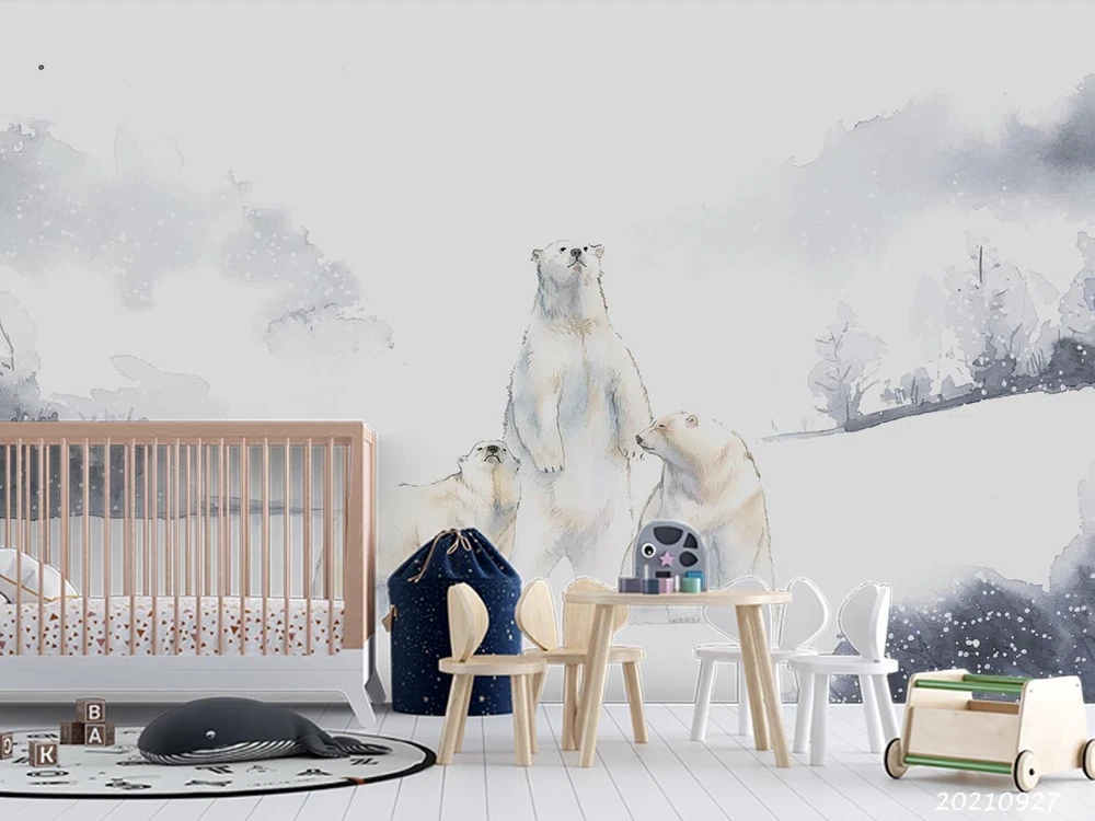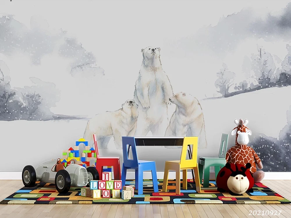 3D Watercolor Forest Polar Bear Wall Murals Wallpaper Murals Wall Sticker 136