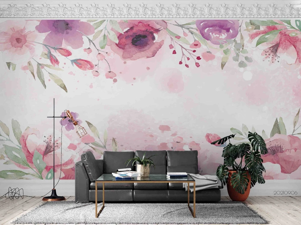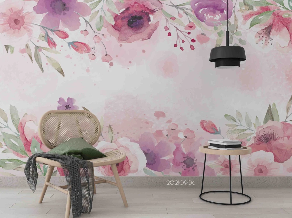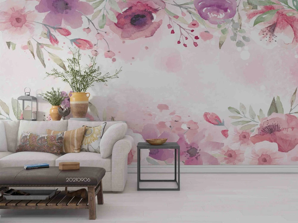 3D Watercolor Pink Floral Wall Murals Wallpaper Murals Wall Sticker