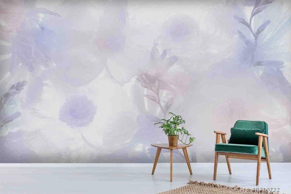 3D Watercolor Purple Floral Wall Murals Wallpaper Murals Wall Sticker