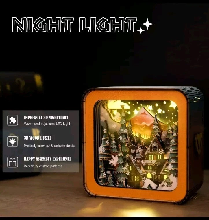 3D Wooden Puzzle Night Light Warm Christmas Eve DIY New
