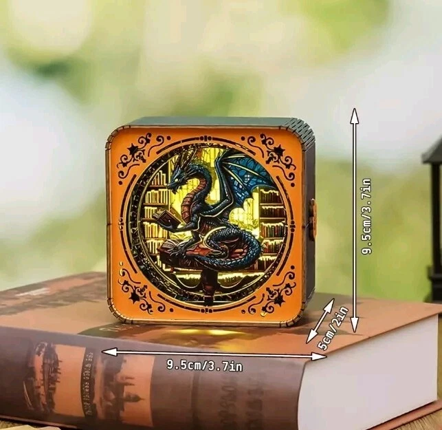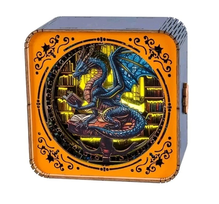 3D Wooden Puzzles Night Light Library's Dragon DIY Wooden Puzzles New
