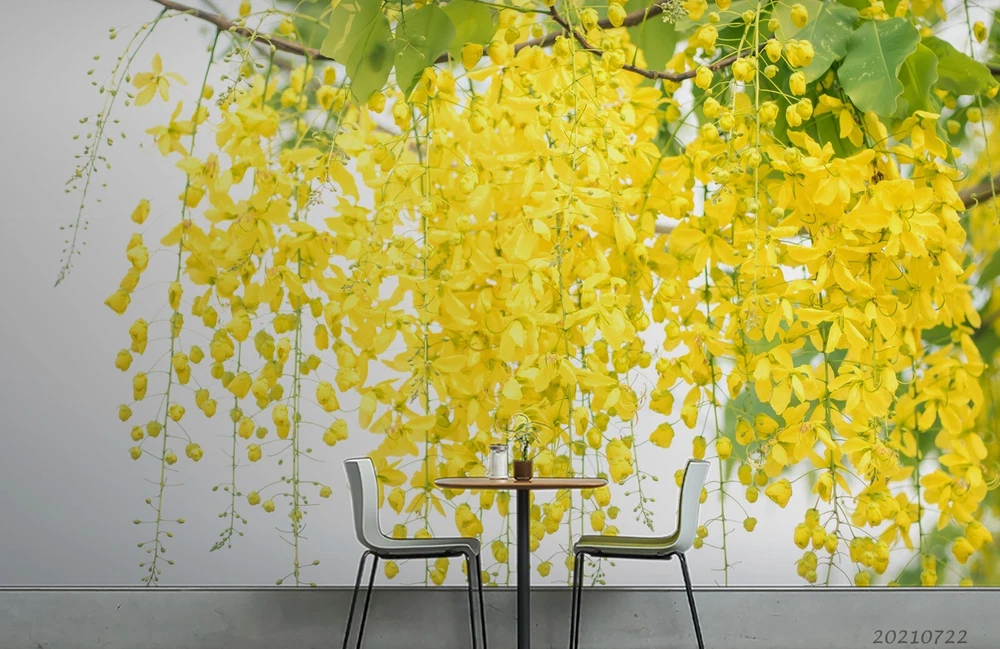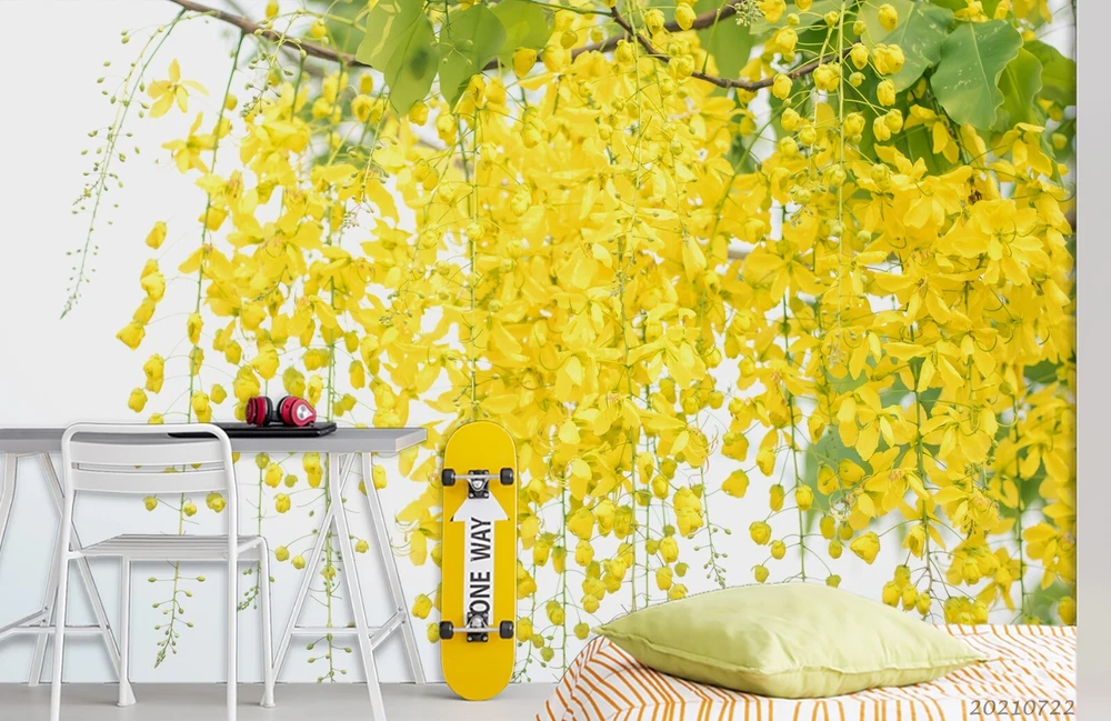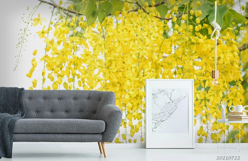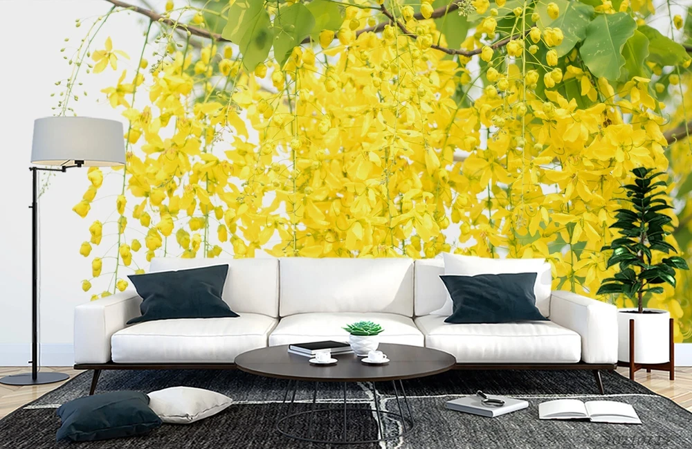 3D Yellow Floral Green Leaves Wall Murals Wallpaper Murals Wall Sticker