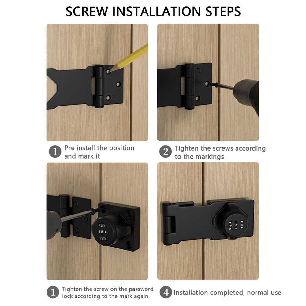 HOME DETAIL SHIPPING ABOUT US CONTACT US Store Categories Other Detail features: STURDY MATERIAL - The combination password lock is made of zinc alloy, durable and rust-proof. Resistant to daily scratches, rubbing and long service life. EASY INSTALLATION - Just fix the combination password lock on both sides of the cabinet door with screws, (please refer to the illustration for detailed installation steps). SIMPLE AND QUICK TO USE - the mechanical combination password lock only needs a simple password operation, which is more efficient and convenient than traditional key unlocking. In addition, it also solves the problem that the lock cannot be unlocked due to lost keys. RELIABLE SECURITY - You don't have to worry about the troubles caused by children looking through drawers or cabinets. If you need to store important items safely, this combination lock is your better choice. WIDELY USED - The combination password lock can be perfectly combined with gate, shed door, barn door, garden, yard, pet door, cabinet, drawer, gun storage, mailbox, safe, office filing cabinet lock. Keyless Security - Password Lock is a secure metal cam lock with 1000 possible combinations. Easy to set up and password system This lock is made of sturdy alloy and will not wear out. Including: 1 password lock+8 screws drawer locks,shed door handle with lock,bifold door lock,barn door lock,door lock latch,shed lock,hasp lock,garage door locking slide latch,garage door lock,lock hasp,garage door latch,door latch lock,lock for cabinet doors,hasp lock latch with lock,gate locks for outdoor fence,latch lock,cabinet door latch,outdoor gate lock,smart lock for drawer,desk lock,desk locks for drawers with key,safety first cabinet locks,lock for cabinet,cabinet locks with combination,pantry lock,smart drawer lock,door handle baby proof,cabinet locks with keys,freezer lock, cabinet door lock HOME DETAIL SHIPPING ABOUT US CONTACT US Detail features: STURDY MATERIAL - The combination password lock is made of zinc alloy, durable and rust-proof. Resistant to daily scratches, rubbing and long service life. EASY INSTALLATION - Just fix the combination password lock on both sides of the cabinet door with screws, (please refer to the illustration for detailed installation steps). SIMPLE AND QUICK TO USE - the mechanical combination password lock only needs a simple password operation, which is more efficient and convenient than traditional key unlocking. In addition, it also solves the problem that the lock cannot be unlocked due to lost keys. RELIABLE SECURITY - You don't have to worry about the troubles caused by children looking through drawers or cabinets. If you need to store important items safely, this combination lock is your better choice. WIDELY USED - The combination password lock can be perfectly combined with gate, shed door, barn door, garden, yard, pet door, cabinet, drawer, gun storage, mailbox, safe, office filing cabinet lock. Keyless Security - Password Lock is a secure metal cam lock with 1000 possible combinations. Easy to set up and password system This lock is made of sturdy alloy and will not wear out. Including: 1 password lock+8 screws drawer locks,shed door handle with lock,bifold door lock,barn door lock,door lock latch,shed lock,hasp lock,garage door locking slide latch,garage door lock,lock hasp,garage door latch,door latch lock,lock for cabinet doors,hasp lock latch with lock,gate locks for outdoor fence,latch lock,cabinet door latch,outdoor gate lock,smart lock for drawer,desk lock,desk locks for drawers with key,safety first cabinet locks,lock for cabinet,cabinet locks with combination,pantry lock,smart drawer lock,door handle baby proof,cabinet locks with keys,freezer lock, cabinet door lock