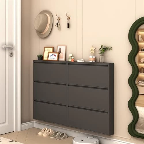 Return Policy Fast Delivery Trusted seller Shoe Cabinet Storage for Entryway,Black Metal Shoe Cabinet with 3 Flip Drawers,Narrow Wall Shoe Storage Cabinet for Entryway,Hallway,Living Room,Require Assembly Product Description 【Entryway Shoe Cabinet】Black metal shoe cabinet for entryway is simple and stylish, which can perfectly match all kinds of decoration styles. Perfect for placing in the entrance, hallway, living room, or porch, provide a neat and organized space for your home 【Metal Wall Shoe Cabinet】Overall sizes: 31.5”W x 6”D x 43.01”H. This multifunctional wall shoe cabinet with 4 flip drawers offering ample space to meet your family's needs., Its modular design not only stores shoes but also expands to accommodate other small items like keys, wallets, or accessories, making it a perfect shoe storage cabinet for any home. 【Space-Saving Design】The shoe storage cabinet for entryway slim features a wall-mounted design that frees up valuable floor space, making it perfect for small apartments or homes with limited room. Its compact yet functional structure ensures your entryway stays clutter-free, while the secure mounting prevents tipping, keeping children and pets safe. 【Large Capacity Shoe Cabinet】The narrow shoe cabinet with 3 flip drawers total of 8-12 pairs of shoes can be stored,effectively organizing all your shoes in one place.The compartment in the middle of each drawer can be adjusted or removed to accommodate different shoe 【Easy to assemble】All parts are numbered and each step of the installation has detailed instructions, easy to understand and assemble. In addition, if you have any problems with the product, please contact us in time, all problems will be solved within 24 hours. Shipping Returns Payment Shipping Shipping is FREE to all addresses other than APO/PO boxes in the lower 48 states. All our stock ships from US-based warehouses. Shipped via USPS or UPS (depending on location and package weight) Unless stated otherwise, all orders will ship within 24-72 hours of your payment being processed. Check our feedback to see the great reviews of FAST shipping we offer. Returns Seller does not accept returns Payment We currently accept payment via eBay managed payments only. Once payment is cleared, we will dispatch your shipment within 1-3 business days. Please refer to the "Shipping" tab for more information regarding shipping speed to your destination.