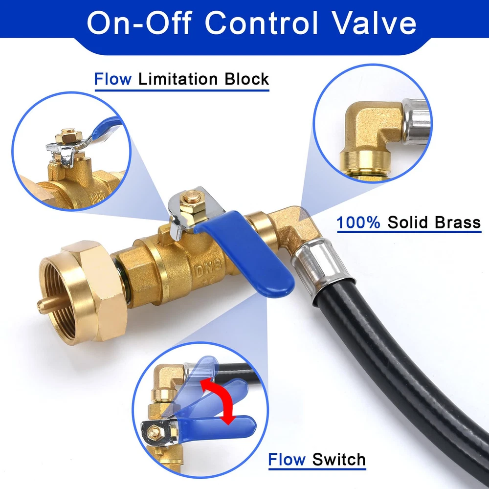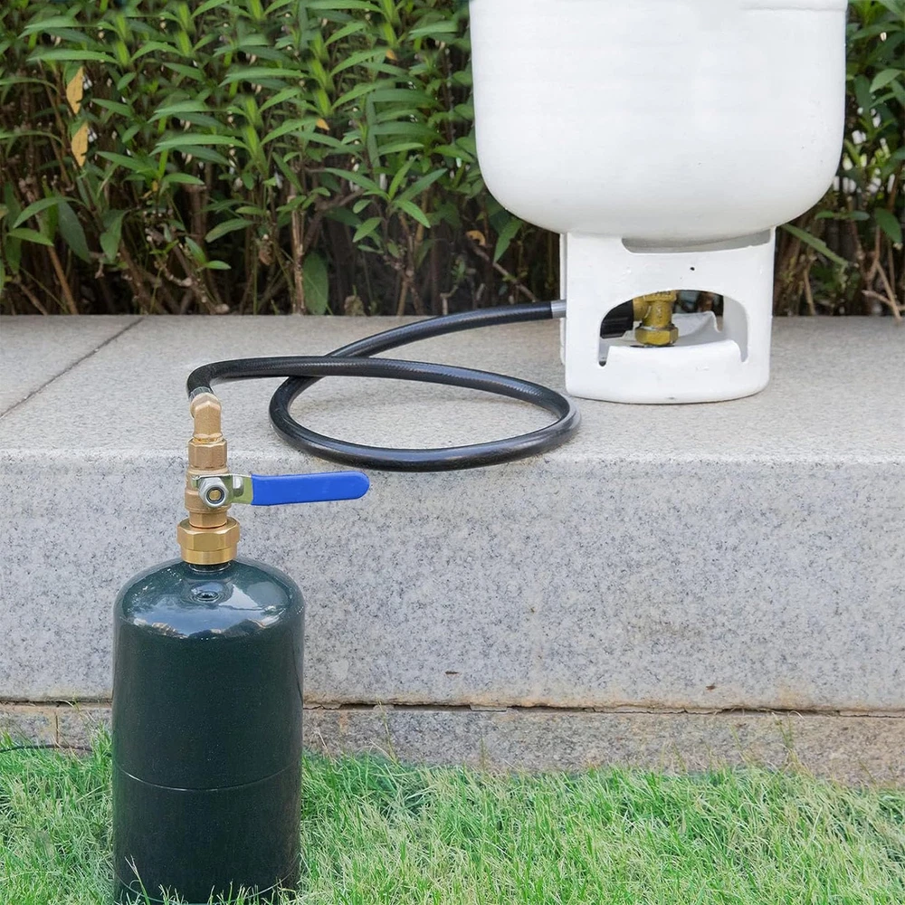 【Propane Refill Hose】: The propane hose is made of high-quality rubber and hundred percent solid brass, which has higher wear resistance and corrosion resistance 【Efficient use】:The propane filling hose can help you fill 1 pound propane bottle unlimited times. Connect QCC1/Type1 to the 5-40 pound water tank and connect the other end of the 1 pound gas cylinder. 【Safe and Convenient】:Traditional adapter joints are difficult to control gas. The propane hose has an on-off valve at the front end and can be directly closed after filling. 【Scope of Application】:Propane filled hose suitable for heaters, camping stoves, portable grills and blackstone griddleses, etc. 【Note】:You can freeze a 1 lb. propane bottle for half an hour before use. Close the valve on the propane hose first after you finish filling it, then close the switch on the tank.