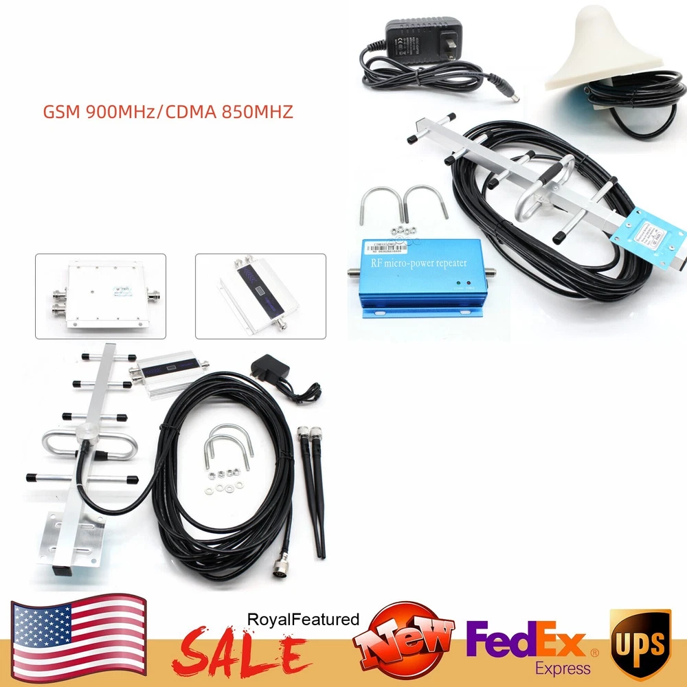 850mhz Cdma Specification: Brand New Frequency Range: 824-849mhz (up Link); 869-894mhz (down Link) Maximum Gain: 60db(up Link); 65db(down Link) Standard Output Power: 26dbm~29dbm(up Link); 25dbm~27dbm(down Link) Standard Input Power: ﹣32dbm~﹣27dbn(up Link) ;﹣38dbm~﹣37dbn(down Link) Noise Figure: ≤5db Repeater Coverage: 50-200m² Return Loss: ≤﹣18db Input Power: Ac 110v - 240v, 50/60hz Stray Radiation: ≤﹣36dbm Gsm 900mhz Specification: Frequency Range : 890mhz--915mhz(up Link);935mhz--960mhz(down Link) Power: -70 ~-40 Dbm/ Fa (1.23mhz) Gain : (up Link) 50/55/60/65db/±10db (down Link) 55/60/65/70db±10db Signal Coverage : up to Cover for 150 Square Meters Use Impedance : 50ω Seclusion : >65db Power Supply : 110v Output Voltage: 5v Compact Design: Indoor Use Signal Repeater Size: 140*100*20m ❤❤❤Welcome to royalfeatured, have a good day ❤❤❤ 850mhz Cdma Attention: This Product Is in the 850mhz Band, It Only Supports Mobile Phone Cards in the 850mhz Band. Support 2g 3g 4g Calls. Internet Access Only Supports 3g. This Antenna Is Not Available for Verizon 4g Lte Networks Before Purchase, Please Make Sure Your Phone Network's Frequency Is Compatible with This Signal Booster. Return Is Not Accepted If the Signal Booster Is Not Effective for Your Phone Network. Please Feel Free to Contact Us If You Need Help Choosing Signal Boosters. Note:the Outdoor Signal Has to Have 3 Bars at Least, Then the Unit Will Work Indoor.otherwise This There Is No Signals Indoor. Specification: Brand New Frequency Range: 824-849mhz (up Link); 869-894mhz (down Link) Maximum Gain: 60db(up Link); 65db(down Link) Standard Output Power: 26dbm~29dbm(up Link); 25dbm~27dbm(down Link) Standard Input Power: ﹣32dbm~﹣27dbn(up Link) ;﹣38dbm~﹣37dbn(down Link) Noise Figure: ≤5db Repeater Coverage: 50-200m² Return Loss: ≤﹣18db Input Power: Ac 110v - 240v, 50/60hz Stray Radiation: ≤﹣36dbm The Repeater Works with Two Antennas (Included in the Kit). One Is the Indoor Antenna Which Communicates with Your Cell Phone or Laptop Data Card, And Another One Is the Outdoor Antenna Which Communicates with the Cell Tower When the Indoor Antenna Receives the Signal from Your Cell Phone or Data Card, The Booster Amplifies the Signal and Transmits It Through the Cable to Outdoor Antenna and Then to the Cell Tower. And the Better the Outside Signal, the More Coverage the Indoor Antenna Can Create Light Weight, Easy to Install Mainly Used in Office Buildings, Shop-ping Malls, Large Underground Parking Field, Exhibition Center, Workshop Installation Steps 1.Install Outdoor Yagi Antenna Select an Appropriate Location with Strong and Stable Signal for Outdoor Antenna. When Installing, the Outdoor Antenna Should Be Horizontal While the Small Vertical bar Vertical to the Ground. 2.Install the Repeater and Connect the Feeder Connect the Outdoor Feeder with Interface Outdoor(Bts) in Repeater. 3.Install Ceiling Antenna Select a Room Where the Signal Needs to Be Enhanced. Install the Ceiling Antenna in a High Place (Higher than Two Meters) and Towards the Ground. 4.the Miniature Repeater Is Made in Aluminum Which Could Help Reduce the Attenuation in Signal Transmission and Radiation. 5.the Area of Signal Amplification Is About 100-150 Square Meters. There Is No Need to Worry Missing Phone Calls or Network Off-line. Package Included: 1pc X Cdma850mhz Cell Signal Booster 1pc X Outdoor Yagi Antenna with 10m Cable 1pc X Ceiling Antenna with 3m Cable 1pc X Charger 1pc X User Manual ................................................................................................................................................................................................................................. Gsm 900mhz The Signal Repeater Call Support 2g / 3g / 4g ,the Network Can Only Support 2g Features: High Gain, Easy Installation and Operation. Full-duplex, Dual-port Design. Use Alc Technology, Adjust Extent Automatically. Led Light Working & Signal Condition Indicators. Big Linear Power, Control Intermodulation & Scatteration Stably. Dependability Stand by Gb6993-86 Standard. Compatibility of Electromagnetism According with Ets300 609-4. Ce and Rohs Approved. Specification: Frequency Range : 890mhz--915mhz(up Link);935mhz--960mhz(down Link) Power: -70 ~-40 Dbm/ Fa (1.23mhz) Gain : (up Link) 50/55/60/65db/±10db (down Link) 55/60/65/70db±10db Signal Coverage : up to Cover for 150 Square Meters Use Impedance : 50ω Seclusion : >65db Power Supply : 110v Output Voltage: 5v Compact Design: Indoor Use Signal Repeater Size: 140*100*20mm/5.51*3.94*0.79" Installation Approaches 1. Fix up Outdoor Antenna Reception on Housetop and Point to Signal Tower. 2. Connect Outdoor Antenna to "Bts" Port in Repeater Machine Through Cable. 3. Connect Indoor Antenna(S) to "Mobile" Port in Repeater Machine Through Cable Also. 4. Plug Power Adaptor into Ac Power Socket and Finish Installation. Installation Note: 1. Please Make Sure Distance Above 10m Between Indoor and Outdoor Antenna, It’s Better Divides One from Another by a Wall. 2. Please Try to Choose a Good Signal Place to Set up Outdoor Antenna. 3. Please Sure That There Are Good Signal 4-5 Bars on Your Outdoor, or It Will Not Work on Your Room. Package: 1 X Mobile Signal Repeater 1 X Indoor Antenna Reminder: Please test the frequency band of your mobile phone before purchasing, and then judge whether it is suitable according to the frequency band table on the detail page and the applicable frequency band of the product. Please confirm before purchasing. Payment Delivery details Terms of sales About us Contact us Payment We accept ebay payment 。 Fees such as import duties, taxes are not included in the item price or shipping costs. These charges are the buyer's responsibility. Delivery details Shipping: 2-9 working days to: USA Terms of sales We maintain high standards of excellence and strive for hundred percent customer satisfaction. Feedback is very important to us. We hope th