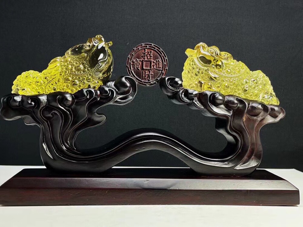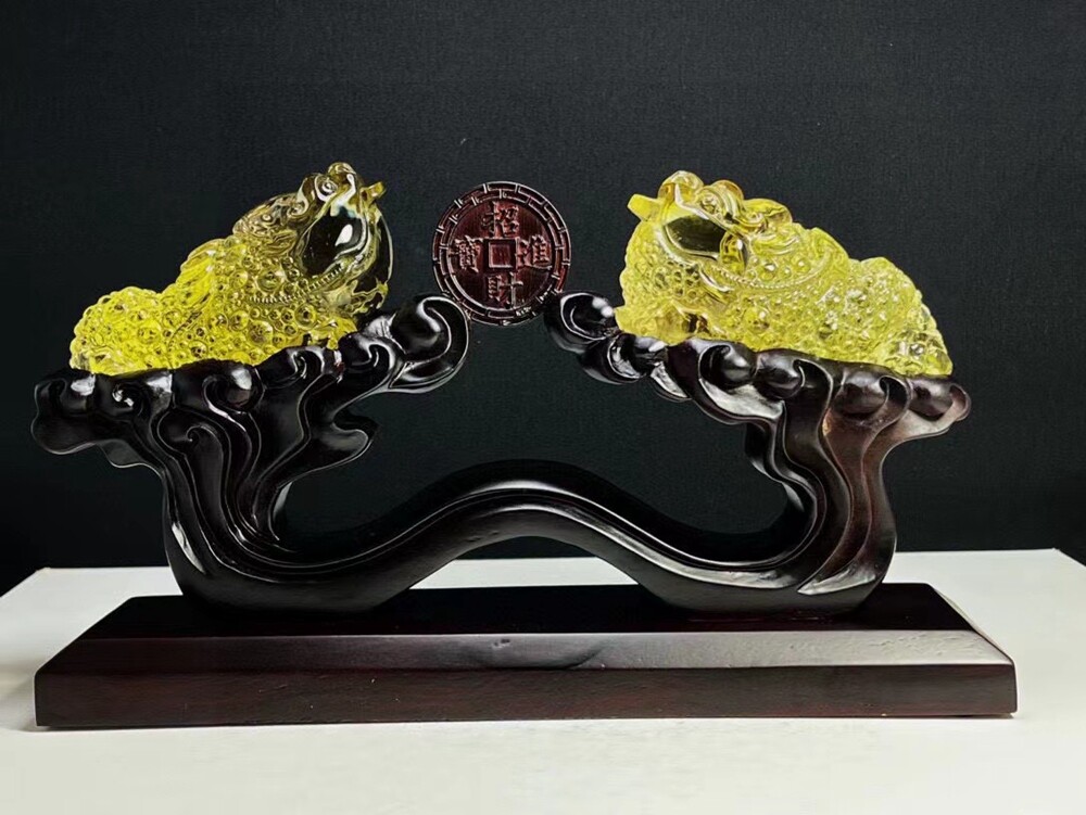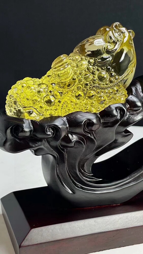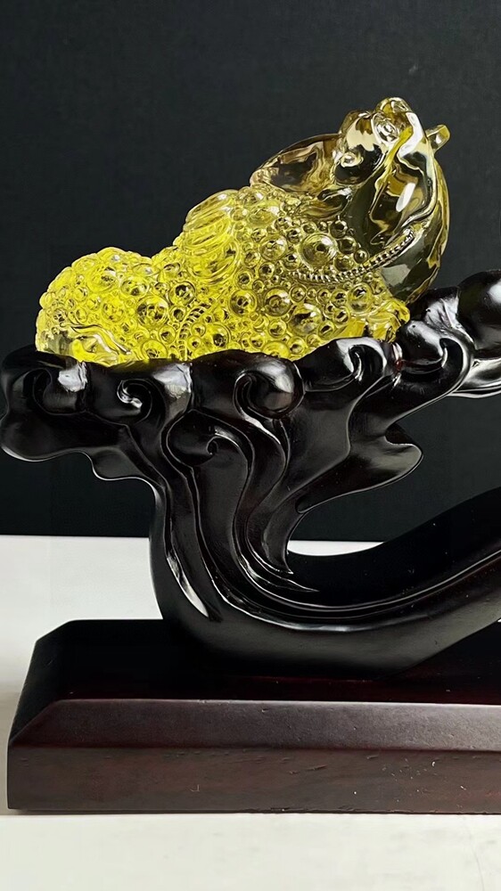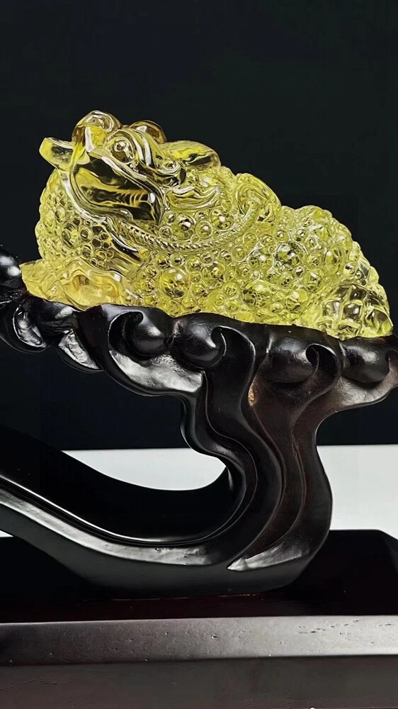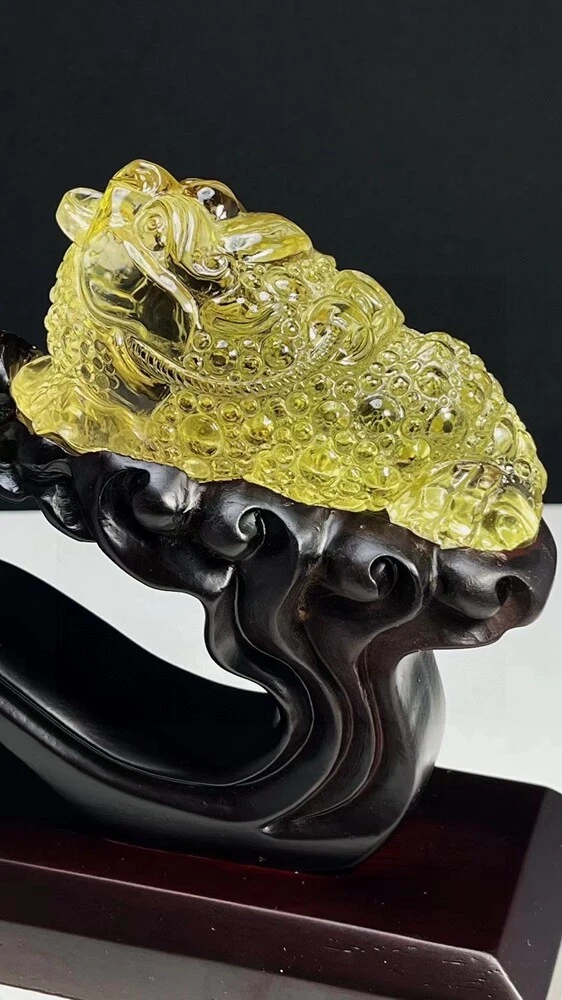 3LB Natural Citrine Quartz Golden Toad Skull Carved Crystal Gift