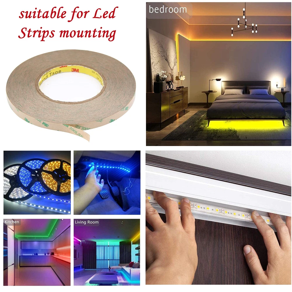 Double sided Mounting Tape Adhesive 55Meters 10MM Strong sticker for Led Strip Light 5050 5630 5054 SMD (164ft Length 0.4Inch width) Iterm Specifications : Size: 10mm*55M Material: Non woven fabric, acrylic acid adhesive Short Time Temp Resistant: 120 centi-degree Long Time Temp Resistant: 90 centi-degree Product Description Made of non-woven cloth and coating with acrylic on both sides, half transparant color, very easy to operate, good Durability, temperature withstanding, strong adhesive, waterproof. Usage: normally used for case, pannel, lcd, led, etc. adhesive. Application Techniques 1. Bond strength is dependent upon the amount of adhesiveto- surface contact developed. Firm application pressure develops better adhesive contact & thus improves bond strength. 2. To obtain optimum adhesion, the bonding surfaces must be clean dry and well unified. A typical surface cleaning solvent is isopropyl alcohol & water. Use proper safety precautions for handling solvents. 3. Ideal tape application temperature range is 21°C to 38°C (70°F to 100°F). Initial tape application to surfaces at temperatures below 10°C(50°F) is not recommended because the adhesive becomes too firm to adhere readily. However once properly applied low temperature holding is generally satisfactory. Note: * Pleas be sure the surface is clean before adhesive. * Best adhesive temperature is 21~38°C. * Total size around 50 meters available, we can customize for you. * Picture is for your reference, acutal width is as per acutal tape. Thanks! Package include: 1PCS x 55M 164ft Double side Adhesive Tape. 【3M High quality heavy duty double sided tape】- Proven Reliability from 3M 300LSE Mounting Tapes. Total 164Ft/55M, 0.4 Inch/10mm Width. With strength of 90 pounds per inch (longitudinal). High strength and durability. The stickiness will gradually increase over time and display perfectly after 24 hours. 【MULTIPURPOSE TAPE】 - fits for many occasions, such as signs, nameplates, wall hooks, scrapbooking, cards making, carpet fixing, wall decor like LED strip lights installing and posters / picture frame hanging, doors and windows decoration for home, school and office, automotive displays and personalized cars, etc. 【Waterproof Double Sided Tape】– Consists of a durable acrylic adhesive with viscoelastic properties, make the adhesive tape suitable for most surfaces, including installation outdoors or in damp locations. It can handle “harsh heat”. 【Easy to Put into Use】– This foam tape is easy to install, tear off the tape and stick it to the surface of the object. it bonds quickly and securely when it’s fully compressed. 【STRONG DOUBLE STICK TAPE】 - bonds to a wide variety of smooth and clean surfaces such as glass, metal, plastic, tile, wood, marble and more! Not suggested for wallpaper, fabrics, textured walls, brick, and other rough or non-stick surfaces.