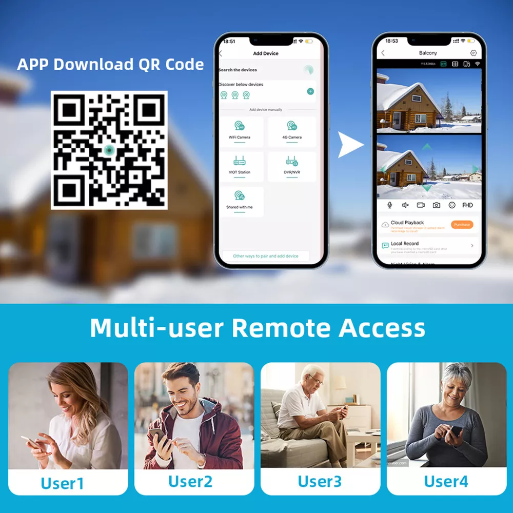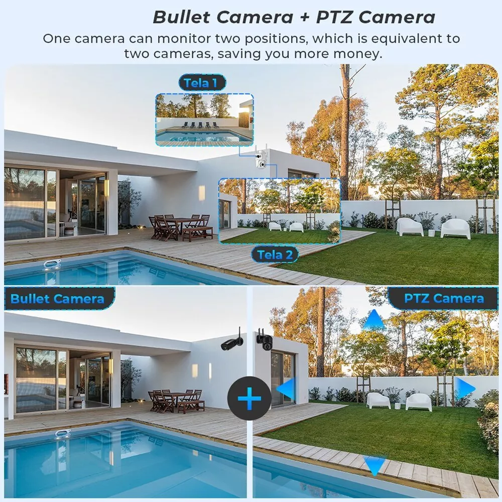 Dual Lens 3MP+3MP PTZ Security Wireless Outdoor Camera Light Alarm 2.4G WiFi 6MP Wifi Camera Dual Lens Screen Ai Human Detect Auto Tracking Wireless Outdoor Waterproof Surveillance Camera Security PTZ 3K 6MP HD Dual-Lens PTZ Outdoor Camera 3K 6MP camera, which means single lens is 3MP ,so dual lens is 3MP+3MP= 3K 6MP 3K Wired WiFi Outdoor Camera 6MP Dual Lens Security Camera PTZ Camera w/Auto Tracking 2.4GHz Wi-Fi Motion Detection Color Night Vision Cam Description: 6MP camera version: Means that the single lens is 3MP, so the dual-lens is 3MP+3MP=6MP. 3 million bullet camera, 3 million dome, screen up and down splicing into 6 million, clear and detailed images Dual Lens and Dual Screen:There are 2 video screens in APP, the upper one is fixed position camera and the lower one is PTZ camera. Dual-Lens with Dual Screen Auto Tracking PTZ WIFI Camera Dual lens, Dual screen, Notifications alarm, humanoid tracking, two way voice intercom 360 monitoring, full color night vision, IP66 waterproof, mobile phone remote monitoring,Share video, SD card storage, 24 hours video recording Specification: Name: 6MP Binocular HD Wireless WiFi Network Camera APP:ICSEE Color: White Waterproof Grade: IP66 Lens: 3.6mm Pixels: 6MP (3MP+3MP) Total Resolution: 2304*2592 (Single Pixel: 3MP) Sensors: Two 3 Million High-performance Cmos Sensors. PTZ Control: Horizontal Rotation: 270° Vertical: 90° Intelligent Analysis: Supporting Humanoid Detection Tracking Function: Support Humanoid Tracking. Light Source: 8pcs White Led + 8pcs Infrared Led. Lighting Mode: Starlight Full Color/Infrared Night Vision/Double Light Alert Night Vision Mode: 3 Modes (Infrared Night Vision, Full-color Night Vision, Double-light Warning) Night Vision Distance: About 10 Meters (Varies with the Environment) Two-way Voice: Support Support Protocol: Support Netip Protocol and Onvif Protocol. Network Interface: 10m/100m Adaptive Ethernet Port. Storage Interface: Local Tf Card (Maximum Support 128g, TF Card Is Not Included ) Cloud Storage: Support( No free ) Recording Mode: Manual Recording, Alarm Recording Reset Key Interface: Support One-button Factory Setting Recovery. Power Consumption: 10W Operating Environment: Minus 10℃-60℃, Humidity less than 90%. Power Supply: DC 12V Alarm Action: Mobile Phone Client Push Connection: Bluetooth Connection & Wifi Connection & Network Cable Connection Network Connection: Wifi Network Interface: Only Supports Wi-fi/802.11/B/G (2.4ghz); Does Not Support 5 Ghz Wireless Standards: IEEE802.11B, 802.11G, 802.11N Features: 1. Dual Camera & Dual Screen: Our Dual Lens house camera indoor has two 3MP lenses. You can monitor two areas at the same time. The lower camera can rotate 270° horizontally and 90° vertically. The higher lens is fixed. 2. AI Human Detection Alerts: Quickly finds human targets and immediately sends App notifications to your phone so you can see what's happening anywhere. 3. AI Auto Tracking: When someone passes through the protected area, the camera will detect the person's movement and follow the person. 4. Smart Night Vision: Built -in White LED and IR LED, you can choose color night vision or infrared black and white night vision. 5. Two Way Audio: Built in microphone and speaker,support real time video,you can talk to your friends,vistors or family through ICSEE APP anytime, anywhere, or scare away uninvited guests. 6. 2.4Ghz Wifi Connection & LAN Connection: Powered by DC12V adapter, you can connect the camera to Wi-Fi network. you can setup wifi connection of the camera or LAN Search with network cable connected to router, work with 2.4G wifi only (Does not support 5G). 7. Support TF Card Storage and Cloud Storage: The camera supports up to 128GB TF card (not include tf card) ,automatic loop recording and also provides cloud storage service (Need to pay extra cost). 8. IP66 Waterproof / Dustproof: The camera is equipped with IP66 case , which is waterproof, sun-proof and dust-proof. It is suitable for any environment. 9. Remote Access/Multi-User: Share the same camera with your families , let all of you protect and pay more attention to your house.It let you be able to view the live situation of your house wherever you are , just with the APP account on the app via your Smartphone or tablet. Package List: 1 x Camera 1 x Power Adapter 1 x Instructions 1 x Screw Bag 1 x Waterproof Cap Accessories Kit Note: The memory card of the camera cannot be lower than Class 6 or higher, and Class 10 is recommended. The larger the number, the better the storage effect FAQ: Q1: Do cameras really have 6MP pixels? A1: 3K 6MP camera, which means single lens is 3MP ,so dual lens is 3MP+3MP= 3K 6MP Q2: What should I do if the device is connected but cannot talk? A2: In the lower left corner of the APP monitoring screen, click the "horn" button, and press and hold the "microphone" button to speak, you can release the "microphone" button after speaking; Q3: What should I do when the SD card cannot be recognized? A3: Please turn off the power of the camera, then insert the card first, and then reconnect the wifi after power on (it is wrong to insert the card after connection); Q4: What software does this camera support? A4: Support icsee. Q5: Does it support 5G WiFi ? A5: 5G WIFI is not supported, it only supports 2.4G WIFI; If you use 5g router, 5G and 2.4G use the same connection hotspot (that isSSID is the same), you can connect directly.lf 5G and 2.4G are not the same connection hotspot (that is,SSID is different, generally SSID of2.4G is xxxxx-2.4G,SSID of 5G is xxxxx-5G),please connect WiFi of mobile phone to hotspot of xxxxX-2.4G ofrouter before configuring camera. Q6: How to set up "Auto Tracking"? A6: In the upper left corner of the functional area of the APP monitoring screen, click "Mobile Tracking", and click the "On/Off" button; Q7: How to do if the camera is not connected or offline? A7: 1.Check if the camera power or network of router normally 2.Plug the camera power to restart camera. 3.R