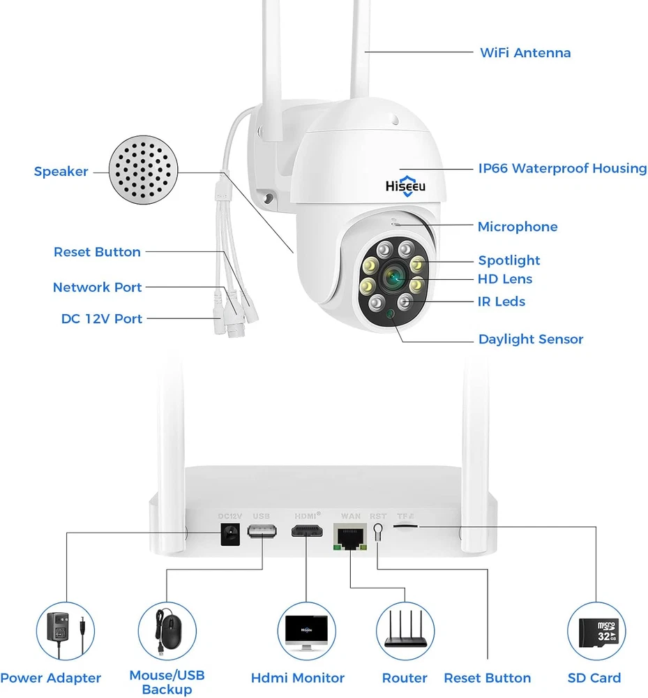 Store New Arrivals Add to Favorite View Feedback Contact 【PTZ Camera Wireless System】 3MP Security Camera System Two Way Audio, Auto Tracking, Full Color Night Vision, IP66 Waterproof, Expandable 10CH NVR, 24/7 Record with 1TB Hard Drive Description Item model number WK-4HD303-AT Style 4Pcs PTZ Cameras System Optical Sensor Technology CMOS Power Source Corded Electric Memory Storage Capacity 1 TB Country of Origin China Low light technology Night color Recording Mode motion detection Other camera features Front Number of Channels 10 Hardware Interface 802.11 ac/b/g/n Item dimensions L x W x H 15 x 8.99 x 7 inches Total USB Ports 1 Video Capture Resolution 1536p, 1520p, 1296p Item Weight 6.7 pounds Connectivity Technology Wireless Signal Format Digital Special Feature motion sensor Color 4PCS PTZ Camera Compatible Devices Smartphones, Tablets, Cameras elevatoare Product Dimensions 15 x 8.99 x 7 inches Pan Tilt Zoom & 3MP Image :Vertical 90 °, horizontal rotation 320 ° and 5X digital zoom, the wireless ptz camera can be rotated up, down, left and right remotely by mobile phone. 3MP 2304*1296 resolution camera, super HD image lei you see more clernly. 【Motion Detection & Two-Way Audio】When outdoor ptz security camera detects movement, it will send an alert to your phone within one second. The two-way audio function allows you to talk to the ones around the security camera anytime anywhere. 【Smart Night Vision & IP66 Waterproof】Equipped with 4 white leds, the camera will show you a clear picture even in total darkness, extending your night vision distance to 65 feet. Strong-build case with IP66 waterproof, which could withstand all kinds of bad weather. 【H.265+ Video Compression & 1TB Hard Drive】Compared with H.264, second generation H.265+ is able to double data compression ratio,while improve video quality with low Bit-rate. It enables IP camera to deliver smooth HD video with low bandwidth, in turn, reducing the network bandwidth and save up to 50% video storage space. 1T hard drive pre-installed support 24 hours more than 30 days reliable video recording. 【Expandable 8 Channel Camera】 . This system includes 1x 10-channel NVR and 4 x 3MP (2304 X 1296P) wireless IP66 waterproof cameras. Cameras and NVR are paired before shipping, connect the NVR and cameras with power adapter, cameras configuration 10ft cable power supply, easy installation. Product Description The video showcases the product in use. The video guides you through product setup. The video compares multiple products. The video shows the product being unpacked. Do the cameras work 24/7? Yes but not by default. All solar-powered security cameras record on motion detection. You can plug the cameras to power with 5V DC phone chargers, switch to "Continuous Recording Mode" to make them work 24/7. It affects the battery longevity though. Does it require internet connection to function? No. The system works without internet. Internet is for you to remotely check on Can I connect the NVR to my network via WiFi? Yes, you can either hard wire the NVR to your network with included network cable, or connect via 2.4Ghz WiFi. Can this be charged any other way than solar? Yes. Simply connect it to a USB charger(NOT INCLUDED) using the provided USB cable. What’s the WiFi distance from cameras to NVR? In open space, the camera can be placed from the NVR for up to 300ft in line of sight. The actual range will vary depending on a number of factors such as the thickness of walls, obstacles inside the house, and the location of NVR. ABOUT US We offer the best prices around on high quality products. Our E-store includes media such as books, movies, music and games while offering electronics, toys, sporting apparel, clothing, tools, general home, garden items and more. SHIPPING We are always working hard to ensure your package arrives as soon as possible. Please understand that some factors like weather, high postal traffic, and the performance of shipping companies are outside of our control. We offer free shipping to the lower 48 states and ship within 2 business days of payment, usually sooner. We do not accept P.O. Boxes. Please provide a physical address. For shipping outside of the continental USA, we only use eBay's Global Shipping Program.The item is shipped to KY and then sent to the rest of the world. International customers are responsible for all duties and taxes. Continue to check out in order to calculate costs for shipping the item to your country. Messages regarding eBay's Global Shipping Program MUST be directed at eBay EXCLUSIVELY. RETURNS We offer a 30-Day Return Policy on items which you are not completely satisfied with. You have the option for a full-refund or an exchange of the item. No returns are available on items shipped outside of the USA. PAYMENT We accept PayPal. CONTACT US This page content is yet to come Please ad us to your favorite seller and visit again later Thank You CUSTOMER SATISFACTION We try our very best to make sure every customer is completely satisfied. If there's a problem, message us! We're happy to help. WE ACCEPT Copyright © 2021 AutoDS. | All Rights Reserved
