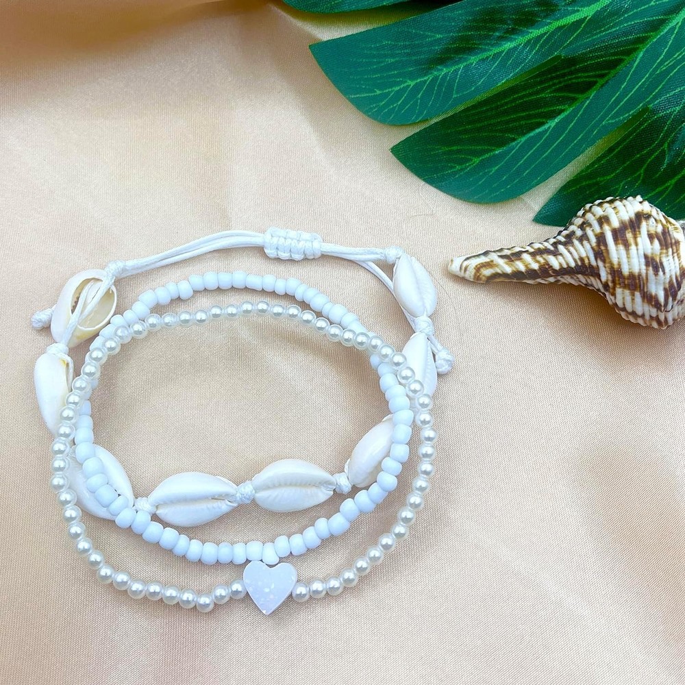 $ 3.17Plus Size Beaded Anklet Handmade White Seed Bead Jewelry Stretch Bracelet