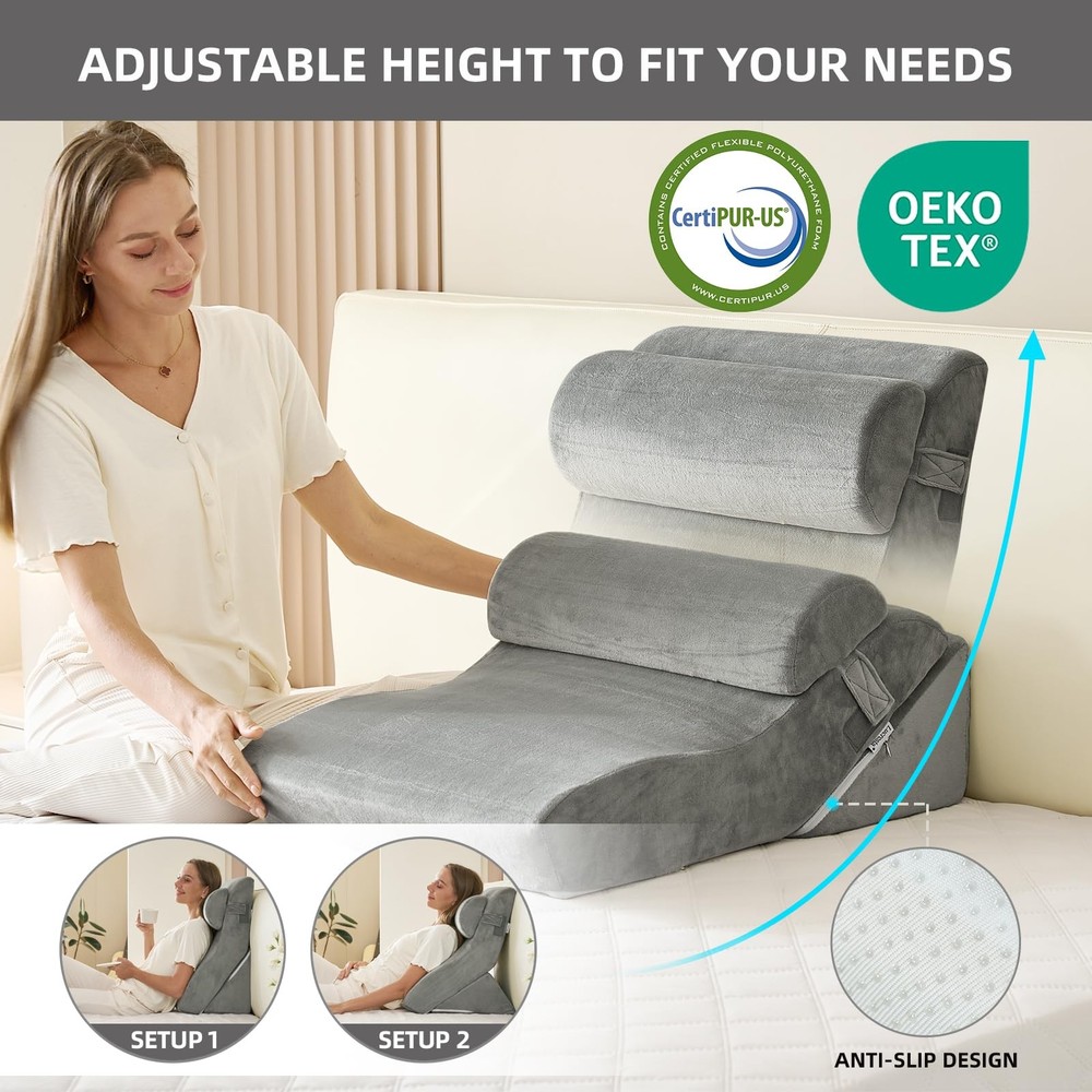 This orthopedic wedge pillow set is a game-changer for comfort and support! The 45D memory foam molds perfectly to your body, easing pressure on your neck and spine. I love the ergonomic curved design—it keeps me aligned whether I’m sleeping, reading, or working. The 10-in-1 adjustability makes it super versatile, and the three-piece set gives me options for different needs. Highly recommend for anyone wanting better posture and relief!