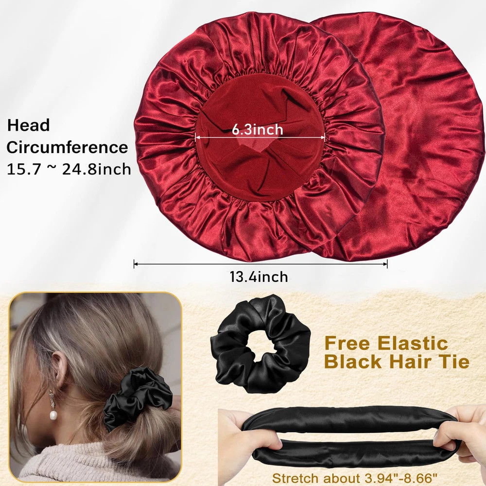 【Stretchy Big Wide Band No Tightness No Compression】-Diameter 9~15 inch extra large stretch wide-brimmed sleep cap allows us to say goodbye to head tightness, headaches, indentations and other problems, and sleep will not slip from the head, a whole night to feel super-soft comfortable, breathable, Great for holding dreadlocks, braids, curly hair, natural hair, weaves, waves, long, dry, tangled, perms, rollers, afros, buns, short, shoulder length wavy, and up-dos 【Premium Satin Protection Your Hair】-Silk sleep caps can greatly reduce the friction of the hair, and reduce the dryness, fork, and hair loss of hair. Hair Bonnets for sleeping keep hair from knotting,protecting the luster and flexibility of the hair to the greatest extent,single layer design doesn’t add any extra heat , Our bonnet super Soft, Smooth, Lightweight, and Skin-friendly; 【Lightweight Breathable Hair Cover】-Sleeping with a hair hat may make you feel like a burden, but not this light hair bonnet with only 0.06 pound which barely leaves any weight on your head. Getting hot while sleeping will not be an issue due to the breathable satin we use to make this hair sleep cap 【Ideal Helper for Daily Life】- This silky head cover is really convenient in daily use. Not only it used as sleeping cap at home for preserving certain hairstyles and keep your hair healthy, but also when wash your face, skin care, hair beauty, makeup, do housework, cook, take shower or relax at home. As well as 3 colors are used to match home clothes of various colors to meet daily needs 【Best Gift for Womens and Mens】-Package: 3* Bonnet+1*Hair Band /Set. It's a great present in Thanksgiving, Christmas, New Year, Birthday, Mothers 'Day, Anniversary, Valentines for your wife, husband,mom, girlfriend, daughter who over 12 years old.