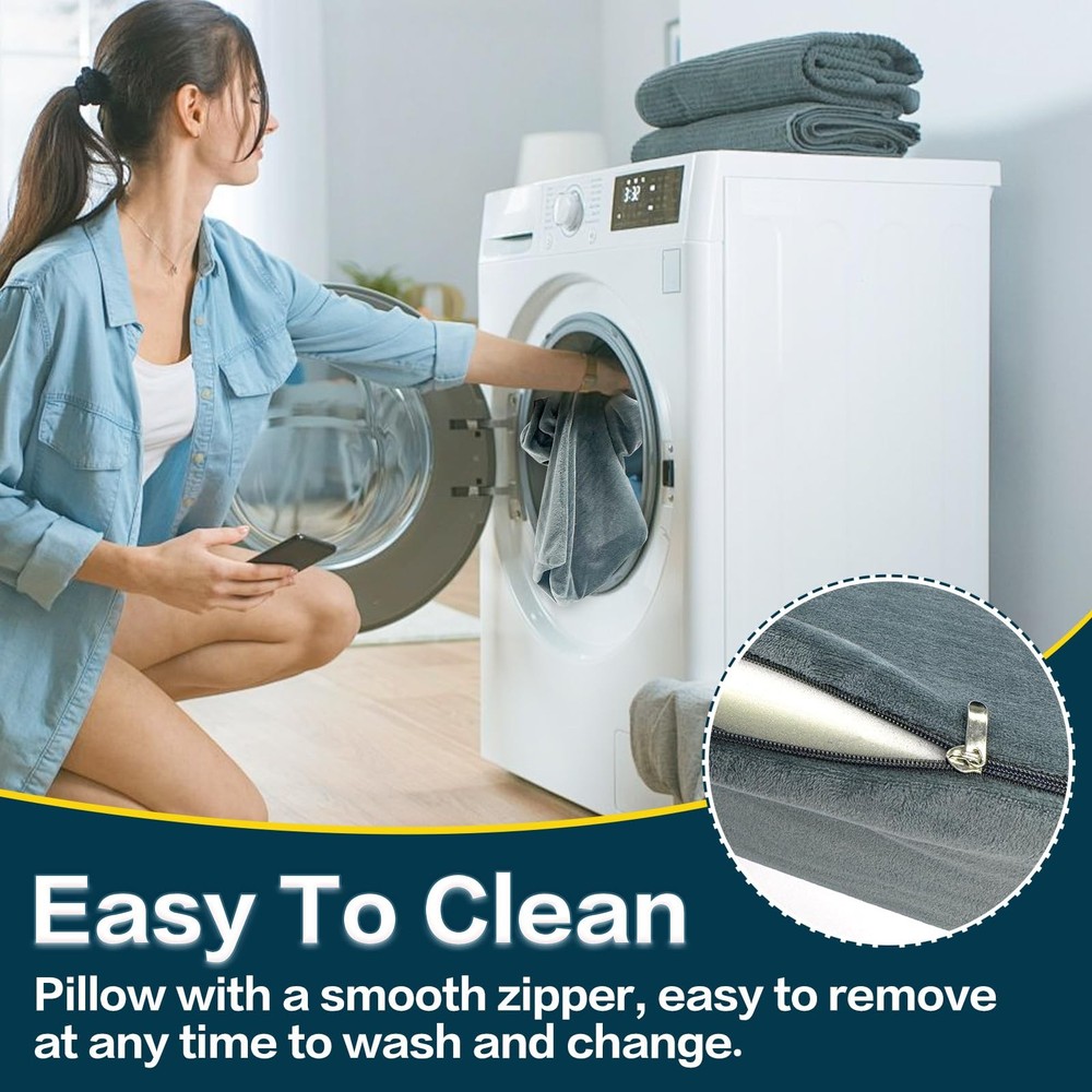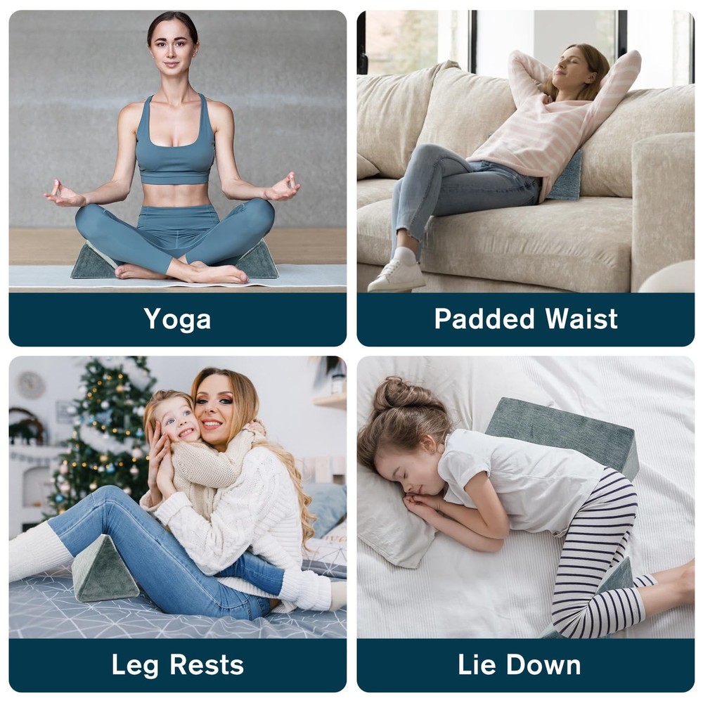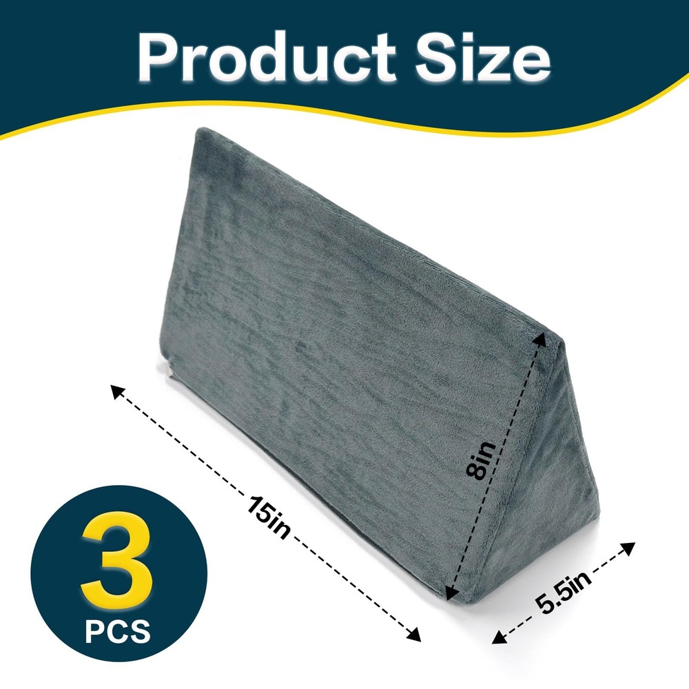 1 Enhanced Comfort & Support: Our wedge pillow offers versatile support for better sleep, reducing neck strain, acid reflux, and snoring when placed under your head. Elevate your legs for improved circulation or use it as a side sleeper pillow. Perfect for pregnancy positioning, it ensures a comfortable and restful night. Multifunctional Design: Ideal for various uses, this pillow serves as a yoga and meditation aid, a back support for office chairs, or even a laptop stand. Its compact size (15x5.5x8 inches 3pcs, 200g) makes it easy to carry, suitable for home, travel, or workplace use. Pain Relief & Health Benefits: Designed to alleviate discomfort, this medical wedge pillow reduces sciatic nerve tension, edema, and bedsores when placed under your knees. It also relieves back pain and provides optimal support for side sleeping, ensuring a healthier and more comfortable experience. Easy Maintenance & Durability: Featuring a removable, machine-washable crystal fleece fabric cover, this pillow is easy to clean and maintain. Filled with high-density foam, it expands fully within 24 hours, offering long-lasting support and durability for everyday use. Versatile Support for Every Need: Whether you're reading, watching TV, or working, this wedge pillow provides comfortable lumbar and back support. It’s also a great yoga accessory, offering stability during meditation or stretching exercises, making it a must-have for various activities.