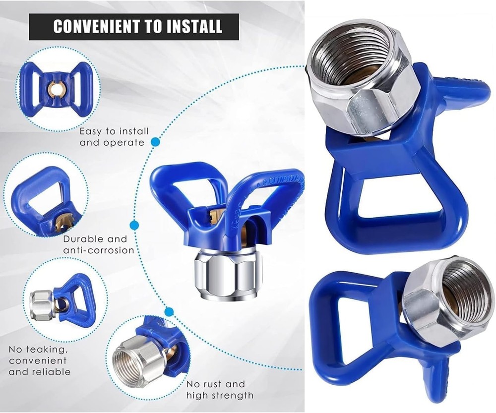 These spray tip nozzles are a game-changer! The reversible design makes cleaning a breeze, and the sturdy metal-plastic construction ensures durability. Perfect fit for my Graco sprayer, and the guard provides great safety while painting. The 3-pack is a fantastic value—no more downtime swapping tips mid-job. Highly recommend for anyone serious about their paint projects!