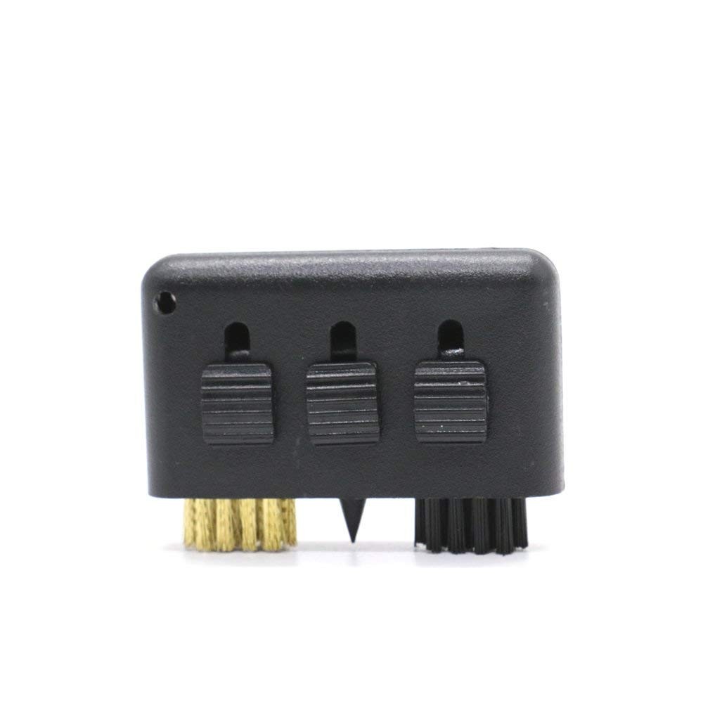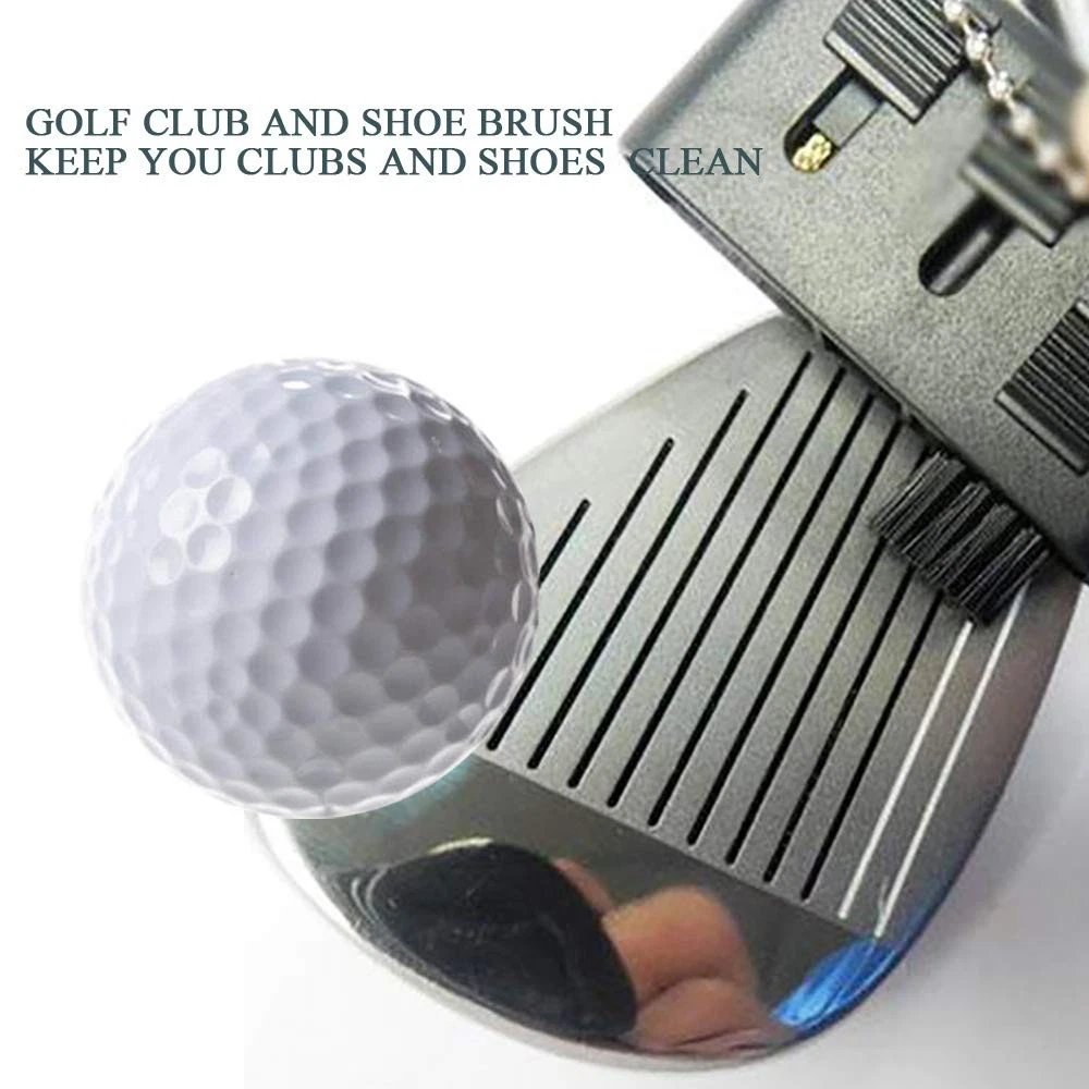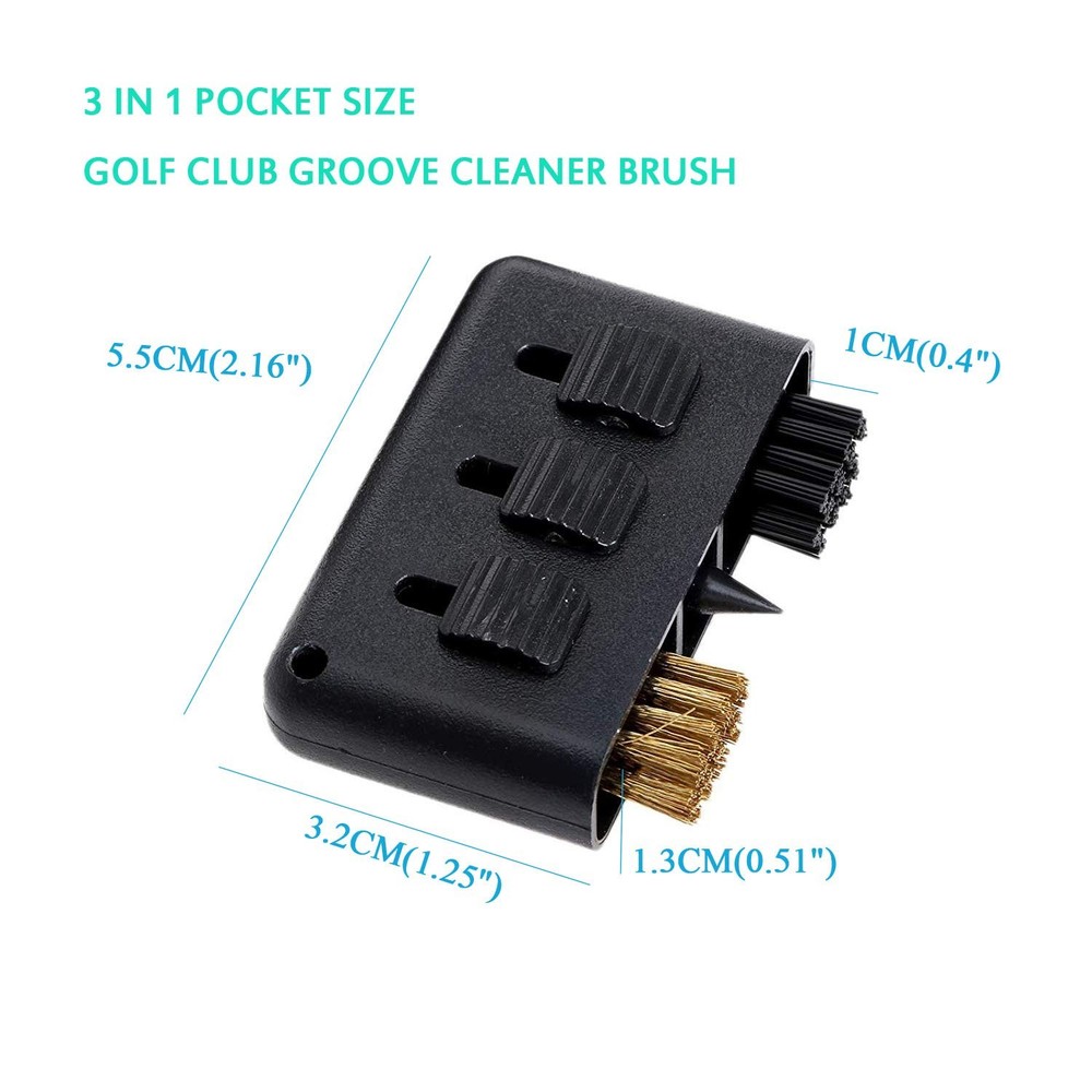 Features: Size: approx.5.5cm(2.16") x 3.2cm(1.25") x 1.3cm(0.51") Color: Black Notice: There is no lock to keep the brush extended while using, you have to keep thumb on the button while using. Package List: 3 * 3-in-1 Pocket size golf club groove cleaner brush This brush consists of hard wire brush,soft nylon brush,and a sharp spike.The wire bristles are strong and study and do a great job of cleaning the irons;the normal nylon brush is perfect for subsequently cleaning dirt off; the needle is great and allows you to remove the dirt and mud from the grooves or clean golf shoes. Size: Approx.5.5cm(2.16") x 3.2cm(1.25") x 1.3cm(0.51"),Bristles and spikes retract back into the cleaner when not in use. This golf club brush and spike features a unique retracting design and cute pocket size. This 3-in-1 pocket-sized club brushes allow you to enjoy better shots with clean clubs, Best golf club groove cleaners, Perfect for golfers. Material: ABS, brass, nylon