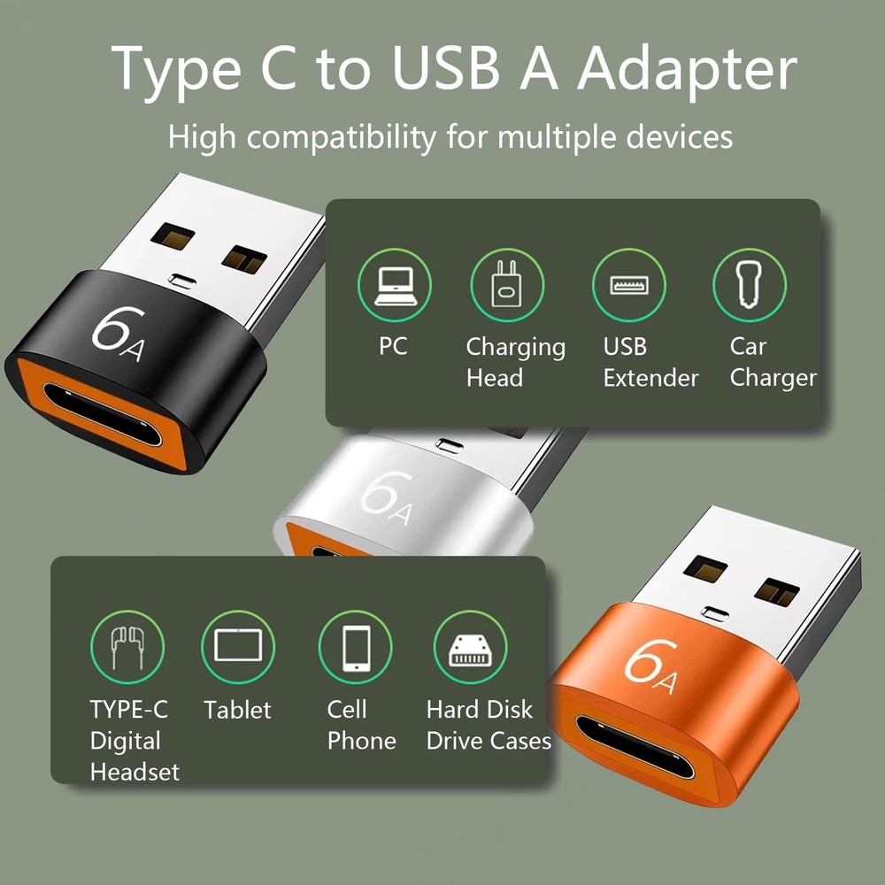 HATMINI Type C Female to A Male Charger Cable Plug Connector feature: 1. The USB C female to USB male adapter is small and exquisite, easy to carry and takes up little space. 2. The USB to USB C adapter is made of aluminum alloy, which is sturdy and durable, has high corrosion resistance and good conductivity 3. Designed to convert USB A male port to USB C female port for fast charging or data transfer. 4. No need for other drivers/software, you can enjoy data transmission and fast charging anytime, anywhere, just plug and play. Specification: Name: USB to USB C Adapter Interface: USB3.0 Interface:Type-c Function: Charging/Transmission/Audio Applicable equipment: computers, chargers, car chargers, hard drives, etc. Package: 3* USB to USB C Adapter 6A fast charging: USB A to C type adapter, paired with PD data cable, can provide up to 6A power output to quickly charge your devices High-speed transmission: USB A male to USB C female provides USB 3.0 data transmission speed up to 5Gbps. With PD cable, it is easy to connect to the computer to download and transfer files. Plug and play, no driver required (Note: Video signal transmission is not supported) High Quality Material:Both ends of the female USB to USB C adapter are made of high quality aluminum alloy, specially designed for frequent plugging and unplugging and heat dissipation, safe and durable. Three color configurations, convenient to use and more fashionable at the same time Small and Portable:The USB C Female to USB Male Adapter is small in size, lightweight and takes up almost no space, making it very portable. You can put it in your pocket, bag/purse and take it out for use anytime, anywhere Wide Application:6A USB-A to USB-C adapter can convert wall chargers, power banks, computers, laptops, PCs, car chargers, car games, hubs, etc. to USB C-enabled by plugging into a standard USB port platform.