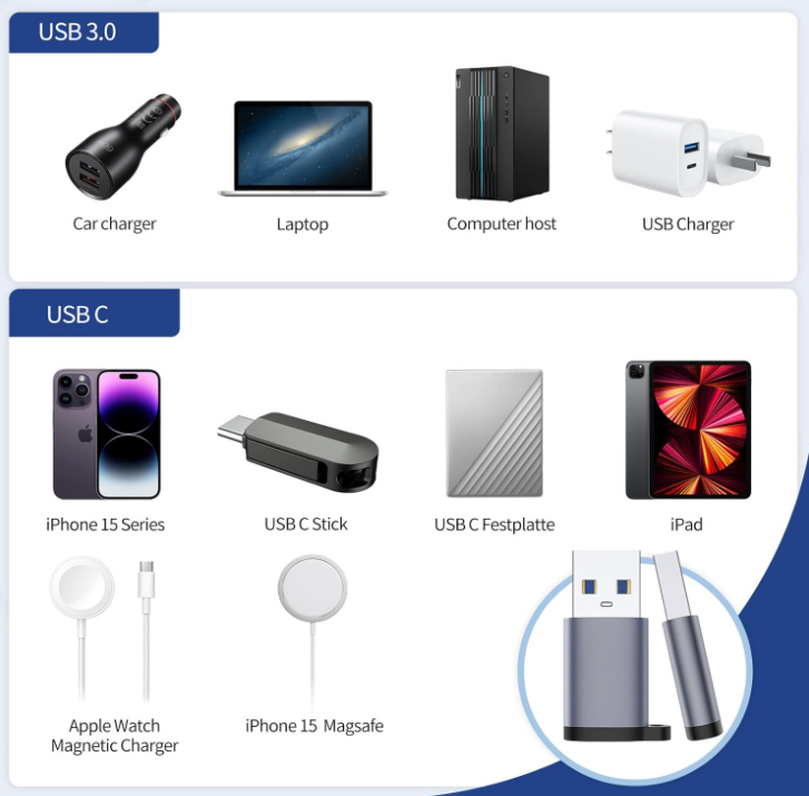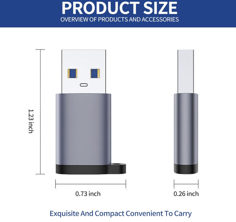 USB C Female to USB Male Adapter 3 Pack, USB C to USB 3.0 Adapter, Type C to USB A Charger Cable Converter Compatible for Apple Watch iPhone 15 14 13 AirPods 3 MacBook Samsung Galaxy Google Car JHAOUS Compatible Devices Laptop, Mouse, Keyboard, Tablet, Android Specific Uses For Product Cell Phone, Laptop, Tablet Connector Type USB C Female to USB 3.0 Male Adapter Color Gray Item dimensions L x W x H 1.26 x 0.73 x 0.26 inches About this item 【USB-C to USB-A Plug and Work】: With this adapter, you never have to worry about the problem that the Type C device and USB A device port can't be connected. The plug-and-play function makes it more convenient for you to charge your device at home, at work or in the car while traveling. 【Reliable Quality 】: These adapters are made from high-quality, scratch-resistant aluminum alloy,offering excellent wear resistance and heat dissipation. exquisite lanyard makes it more convenient to carry, store and fix, so you don't have to worry about it missing. 【Stable & Faster Data Transfer】: USB 3.0 Adapter offers data transfer speeds of 1Gbps(Max) High Speed between connected devices and also supports up to 2 Amps of power output for charging your devices. Enjoy the fast and safe charging 【Broad Compatibility】: The USB 3.0 Port is widely compatible with computers, laptops with the USB Type-A port, USB C 3.1 Female port can work for Type-C enabled hard drives, smartphones, or tablets like apple watch series 7,iPhone pro, AirPods 3, Samsung, flash disk and etc 【What You Get 】: You will receive 3 pieces of JHAOUS USB C Female to USB Male Adapter 3 Pack, totaling 3 pieces. If you have any questions about them, please contact our customer support team. . We offer FREE shipping on all orders! . We ship within Five business days of payment, usually sooner. . We use a selection of shipping services such as UPS, FedEx, USPS etc. . We only ship to the lower 48 states, no APO/FPO addresses or PO Boxes allowed. . Local pickups and combined shipping options are not provided at this time. . Your satisfaction is a wonderful reward for our efforts. Please assist us by leaving a positive review if you feel pleased with our service. . In the event that you encounter any difficulties related to your order, please do not hesitate to reach out to us directly through the Messaging system on the Ebay platform. Kindly consider opening a COMPLAINT or a RETURN REQUEST as a last resort, only after all other possible measures have been attempted and we have been unable to provide you with assistance. . We will get in touch with you within 24 hours and make every effort to ensure your satisfaction. . Please rest assured of our service quality.