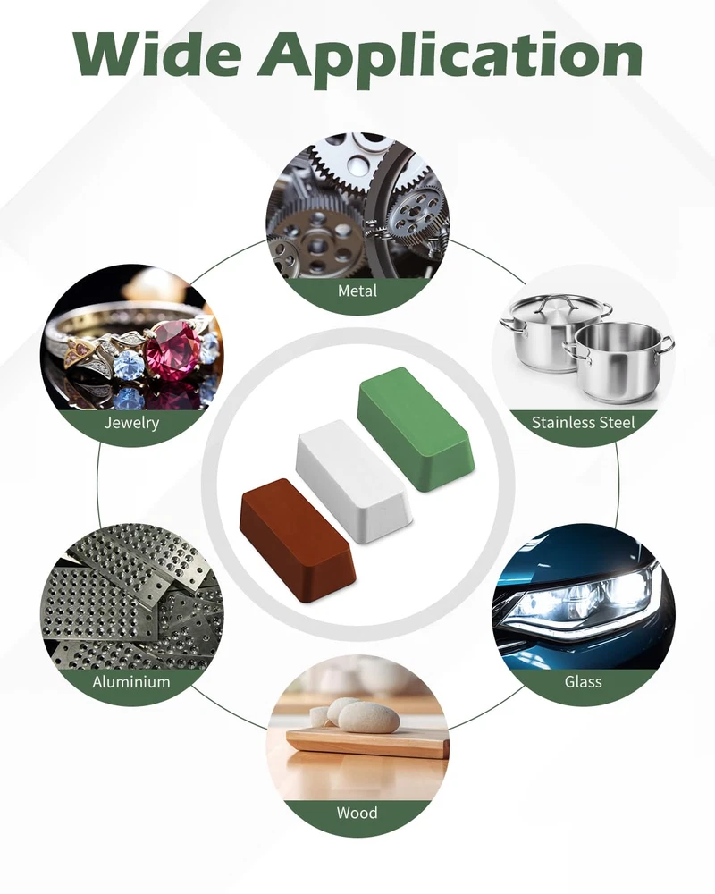 Store New Arrivals Add to Favorite View Feedback Contact 3Pcs Buffing Polishing Compound Kit, Metal Polish 12 Oz - Red Jewelers Rouge, White Diamond, Green Stainless Steel Polishing Compound Description Item model number A-19 Item dimensions L x W x H 3 x 2 x 2 inches Product Dimensions 3 x 2 x 2 inches; 11.89 ounces Material Animal Fat Country of Origin China Style 3Pack Grit Material Stainless Steel,Steel Grit Type Super Fine Brand AOKLIT Manufacturer AOKLIT Premium Quality & Longevity - These polishing compound are sturdy and effective, providing a lasting polishing effect,Say goodbye to that dull and aged look, and welcome a fresh high luster and shine that makes your treasures look brand new. User-friendly Design - Designed for easy application on buffing wheels, whether on motors, drills, or grinders, ensuring a hassle-free and efficient polishing experience. Adopting a thoughtful and humanized trapezoidal strip shape, it is more comfortable and convenient to use Easy To Use - Color-coded compounds, from coarse to super fine, allow for quick selection,Gently press the polishing agent onto the rotating polishing wheel , and are effortlessly applied to buffing wheels with heat and friction. Versatile Application - Suitable for a wide range of materials including aluminum, stainless steel, brass, jewelry, and metal polish, ensuring a smooth, mirror-like finish on diverse projects. Comprehensive Polishing Kit - Each buffing compound comes with multiple compounds(red, white, green) catering to various polishing needs, be it cutting, waxing, cleaning, repairing, or restoring, making it an all-in-one solution. Product Description AOKLIT Buffing Polishing Compound Kit key Feature: Our polishing compound providing a lasting polishing effect Easy to use, gently press the polishing agent onto the rotating polishing wheel Can meet various polishing needs, whether it is cutting, waxing, cleaning, repairing or repairing Suitable for a wide range of materials including aluminum, stainless steel, brass, and jewelry polish Package included: 1 Pack Green Polishing Compound 1 Pack White Diamond Buffing Compound 1 Pack Red Jewelers Rouge Polishing Compounds ABOUT US We offer the best prices around on high quality products. Our E-store includes media such as books, movies, music and games while offering electronics, toys, sporting apparel, clothing, tools, general home, garden items and more. SHIPPING We are always working hard to ensure your package arrives as soon as possible. Please understand that some factors like weather, high postal traffic, and the performance of shipping companies are outside of our control. We offer free shipping to the lower 48 states and ship within 2 business days of payment, usually sooner. We do not accept P.O. Boxes. Please provide a physical address. RETURNS We offer a 30-Day Return Policy on items which you are not completely satisfied with. You have the option for a full-refund or an exchange of the item. No returns are available on items shipped outside of the USA. PAYMENT We accept PayPal. CONTACT US This page content is yet to come Please ad us to your favorite seller and visit again later Thank You CUSTOMER SATISFACTION We try our very best to make sure every customer is completely satisfied. If there's a problem, message us! We're happy to help.
