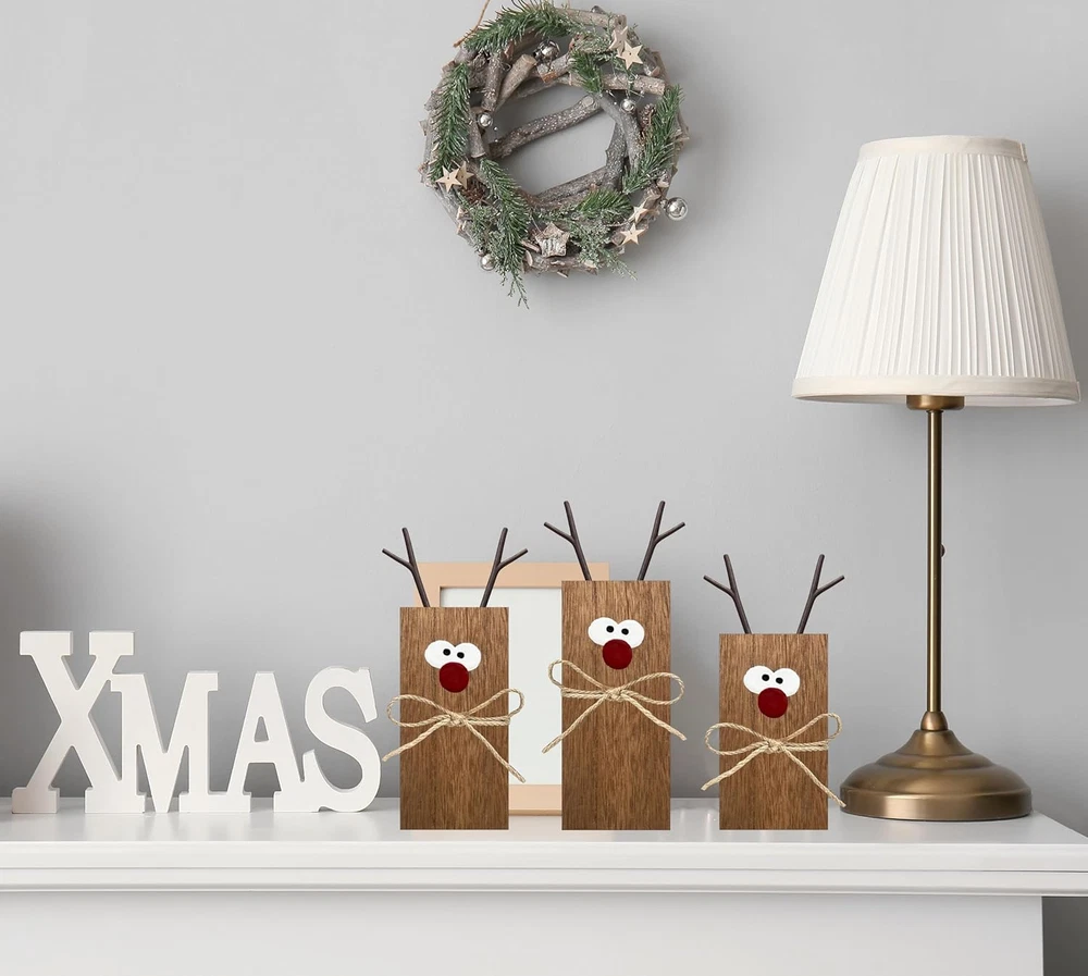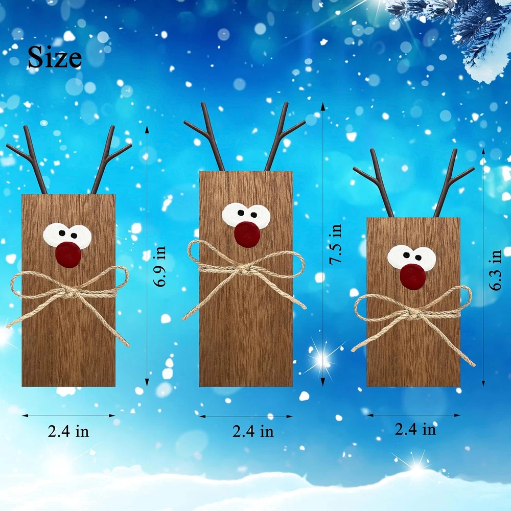 Store New Arrivals Add to Favorite View Feedback Contact Fast deliveries to the customer's home Quality customer service John Make the customers happy! 3Pcs Reindeer Table Signs Christmas Decorations Indoor Farmhouse Winter Decor Christmas Vintage Reindeer Blocks for Office Kitchen Home Decor Description Christmas decorations for home : The Christmas reindeer sign, which give your home a Christmas touch,and the eye catching signs will attract and surprise your guests.They will make a great addition to your Xmas or Winter party, Winter decor! Christmas Decor : The Christmas Decor Reindeer Signs are made of quality wood material, have good durability and not easy to break, nice printing with vivid color, clear and no worry about fading. Wide Application : This Christmas Decor reindeer sign set is perfect for decorating your tiered trays,table,cabinets,risers,shelves,kitchen island or anywhere you want to display them in Winter or Christmas style. Perfect Gift : The Christmas Reindeer Decor set is also a good choice as a gift to relatives and friends. Christmas decor - Simple and convenient to use. 3Pcs Reindeer Table Signs Item model number rs-3 Style Farmhouse Mounting Type Tabletop Color Brown Product Dimensions 8"L x 6"W Material Wood Shape Rectangular Item Weight 8.1 ounces Theme Christmas, Reindeer, Winter Pre-printed Reindeer, Christmas, Winter Recommended Uses For Product Seasonal home decor (Winter, Christmas) Included Components 3 x Reindeer ABOUT US We offer the best prices around on high quality products. Our E-store includes media such as books, movies, music and games while offering electronics, toys, sporting apparel, clothing, tools, general home, garden items and more. SHIPPING We are always working hard to ensure your package arrives as soon as possible. Please understand that some factors like weather, high postal traffic, and the performance of shipping companies are outside of our control. We offer free shipping to the lower 48 states and ship within 2 business days of payment, usually sooner. We do not accept P.O. Boxes. Please provide a physical address. For shipping outside of the continental USA, we only use eBay's Global Shipping Program. The item is shipped to KY and then sent to the rest of the world. International customers are responsible for all duties and taxes. Continue to 'check out' to calculate costs for shipping the item to your country. Messages regarding eBay's Global Shipping Program MUST be directed at eBay EXCLUSIVELY. RETURNS We offer a 30-Day Return Policy on items in which you are not completely satisfied with. You have the option of a full-refund or an exchange of the item. No returns are available on items shipped outside of the USA PAYMENT We accept PayPal. CONTACT US This page content is yet to come Please ad us to your favorite seller and visit again later Thank You CUSTOMER SATISFACTION We try our very best to make sure every customer is completely satisfied. If there's a problem, message us! We're happy to help. WE ACCEPT