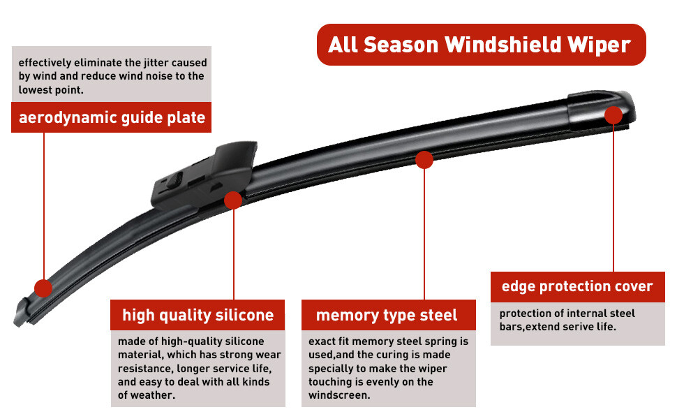 $ 6.8624-inch and 21-inch All-Season Bracketless J-Hook Windshield Wiper Blades High Quality US Made