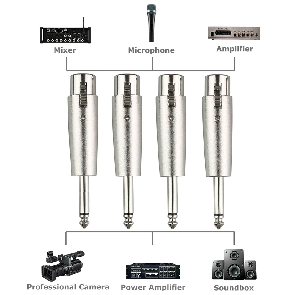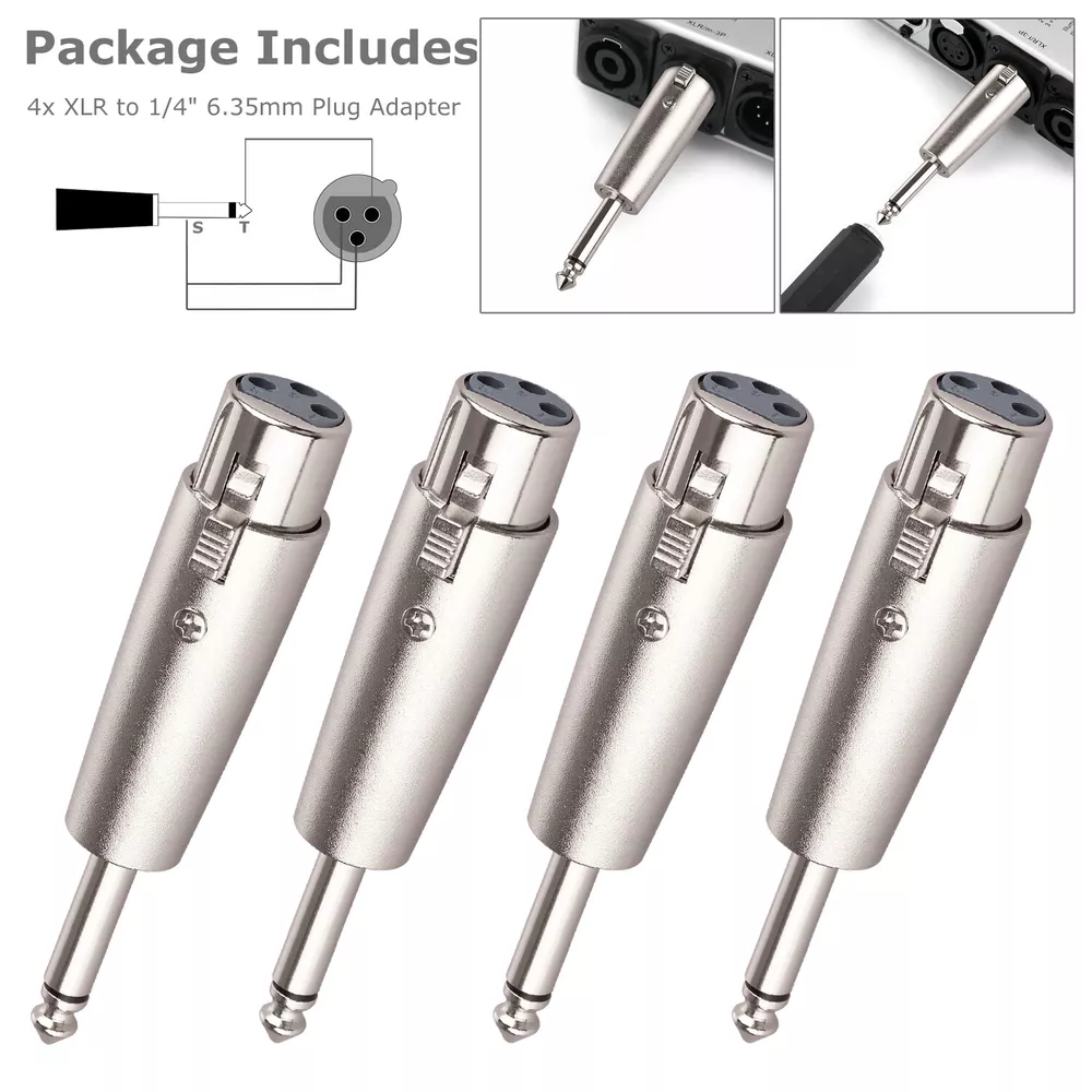 3Pin XLR Female to 1/4" 6.35mm Mono Male Plug Audio Cable Mic Adapter 4 Pack Features Metal 3 Pin XLR Female to 6.35mm 1/4" Mono TS Male Adaptor. Constructed with multi-layers of shielding minimize signal interference and ensure the transmission stable, provides maximum cancellation of hum and noise. This adaptor is designed to adapt an XLR input to a 6.35mm mono output. Can be applied on microphone connections/audio electronics, amplifiers and cabling applications. The Housing for high strength zinc alloy die-casting nickel plating, attractive and durable. Protective Shielding for RF and EMI noise elimination. Specifications Type: XLR Female to 1/4" 6.35mm Male Plug Adapter Connection A: 3-Pin XLR Female Jack Connection B: 6.35mm TS Male Plug Material: Zinc Alloy Package Included Four (4) XLR to 1/4" 6.35mm Plug Adapter Payment Shipping Returns About Us Payment Shipping Returns About Us We accept PayPal, major credit cards, and other methods supported by eBay Managed Payments. We offer FREE shipping on all orders! Your order will be dispatched within 24 hours receiving payment and you should expect to receive it two to five days after dispatch. If you are not completely satisfied within 30-days of your purchase, you can return the product and get a full refund or replacement (your choice). Our return process is eBay managed and very easy to follow. We will be responsible for the return shipping cost of the damaged or wrong items. We are a family owned business located in the beautiful western Pennsylvania. We began as a wholesale jewelry and fashion importer. After successfully selling a few precison jewelry scales on a major online marketplace in 2009, we decided to transform into a professional weight scale distributor. Then soon expanded into other great product categories. See our other items Features ---Metal 3 Pin XLR Female to 6.35mm 1/4" Mono TS Male Adaptor. ---Constructed with multi-layers of shielding minimize signal interference and ensure the transmission stable, provides maximum cancellation of hum and noise. ---This adaptor is designed to adapt an XLR input to a 6.35mm mono output. ---Can be applied on microphone connections/audio electronics, amplifiers and cabling applications. ---The Housing for high strength zinc alloy die-casting nickel plating, attractive and durable. ---Protective Shielding for RF and EMI noise elimination. Specifications ---Type: XLR Female to 1/4" 6.35mm Male Plug Adapter ---Connection A: 3-Pin XLR Female Jack ---Connection B: 6.35mm TS Male Plug ---Material: Zinc Alloy Package Included ---Four (4) XLR to 1/4" 6.35mm Plug Adapter 3Pin XLR Female to 1/4" 6.35mm Mono Male Plug Audio Cable Mic Adapter 4 Pack Features Metal 3 Pin XLR Female to 6.35mm 1/4" Mono TS Male Adaptor. Constructed with multi-layers of shielding minimize signal interference and ensure the transmission stable, provides maximum cancellation of hum and noise. This adaptor is designed to adapt an XLR input to a 6.35mm mono output. Can be applied on microphone connections/audio electronics, amplifiers and cabling applications. The Housing for high strength zinc alloy die-casting nickel plating, attractive and durable. Protective Shielding for RF and EMI noise elimination. Specifications Type: XLR Female to 1/4" 6.35mm Male Plug Adapter Connection A: 3-Pin XLR Female Jack Connection B: 6.35mm TS Male Plug Material: Zinc Alloy Package Included Four (4) XLR to 1/4" 6.35mm Plug Adapter Payment We accept PayPal, major credit cards, and other methods supported by eBay Managed Payments. Shipping We offer FREE shipping on all orders! Your order will be dispatched within 24 hours receiving payment and you should expect to receive it two to five days after dispatch. Returns If you are not completely satisfied within 30-days of your purchase, you can return the product and get a full refund or replacement (your choice). Our return process is eBay managed and very easy to follow. We will be responsible for the return shipping cost of the damaged or wrong items. About Us We are a family owned business located in the beautiful western Pennsylvania. We began as a wholesale jewelry and fashion importer. After successfully selling a few precison jewelry scales on a major online marketplace in 2009, we decided to transform into a professional weight scale distributor. Then soon expanded into other great product categories. See our other items Features Metal 3 Pin XLR Female to 6.35mm 1/4" Mono TS Male Adaptor. Constructed with multi-layers of shielding minimize signal interference and ensure the transmission stable, provides maximum cancellation of hum and noise. This adaptor is designed to adapt an XLR input to a 6.35mm mono output. Can be applied on microphone connections/audio electronics, amplifiers and cabling applications. The Housing for high strength zinc alloy die-casting nickel plating, attractive and durable. Protective Shielding for RF and EMI noise elimination. Specifications Type: XLR Female to 1/4" 6.35mm Male Plug Adapter Connection A: 3-Pin XLR Female Jack Connection B: 6.35mm TS Male Plug Material: Zinc Alloy Package Included Four (4) XLR to 1/4" 6.35mm Plug Adapter