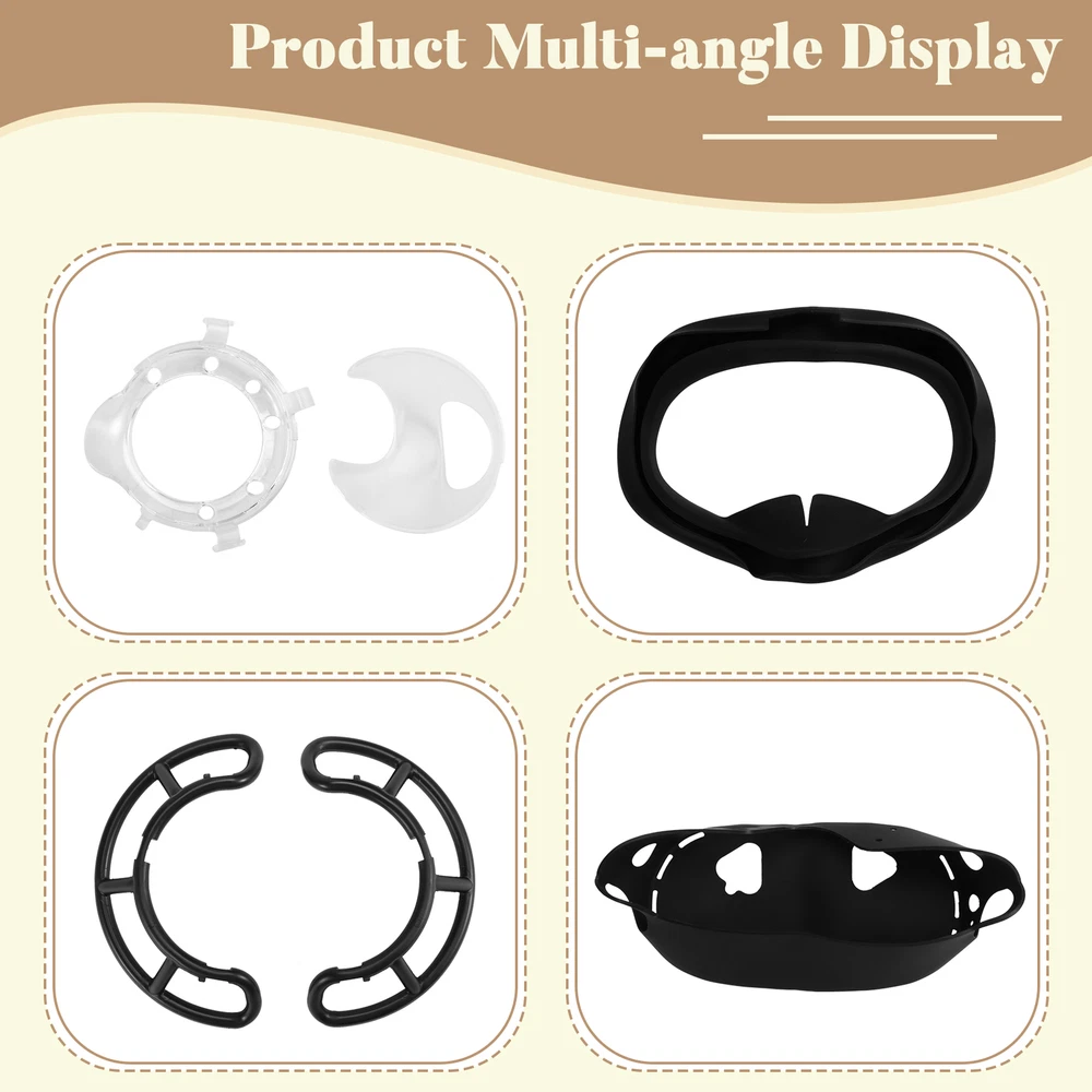 For 3S Silicone Host Cover with Controller Protector and Lens Cover for 3659 Enhance your VR experience with our comprehensive accessory kit for the Quest 3S. This bundle includes: Silicone Front Shell: Protects your device from bumps and scratches while maintaining its sleek look. Face Cover: Made from soft High-quality materials, it provides a comfortable barrier that keeps your headset clean and sweat-free. Controller Protector: Guards against and wear, extending the life of your controllers. Lens Cover: Keeps the lenses free from dust and scratches, ensuring clear vision. Due to different batches, there may be differences in product appearance and printed text, which not affect use Colour:Black Material:ABS Package Contents: 1 x Host protective cover 1 x Face mask 1pair x handle protective covers 1 x Lens cover 1pair x joystick covers 1 x Wiping cloth
