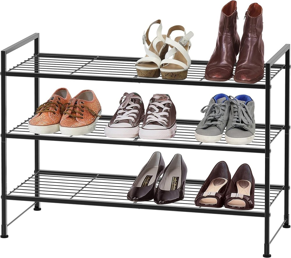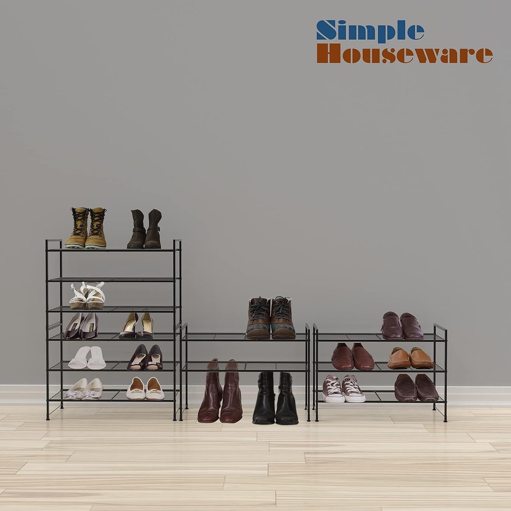 This shoe rack is a game-changer for small spaces! The sturdy metal frame holds up to 9 pairs securely, and I love the extra bottom shelf for slippers. Super easy to assemble, and the stackable design lets me expand as my collection grows. The sleek black finish looks modern, and each shelf handles heavy boots without bending. Perfect for keeping my entryway organized!