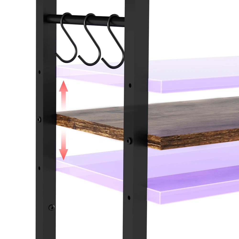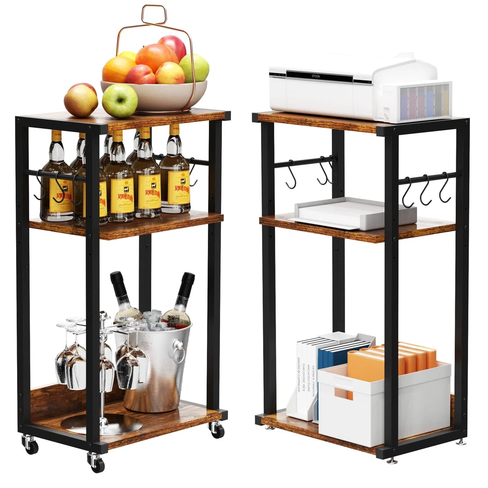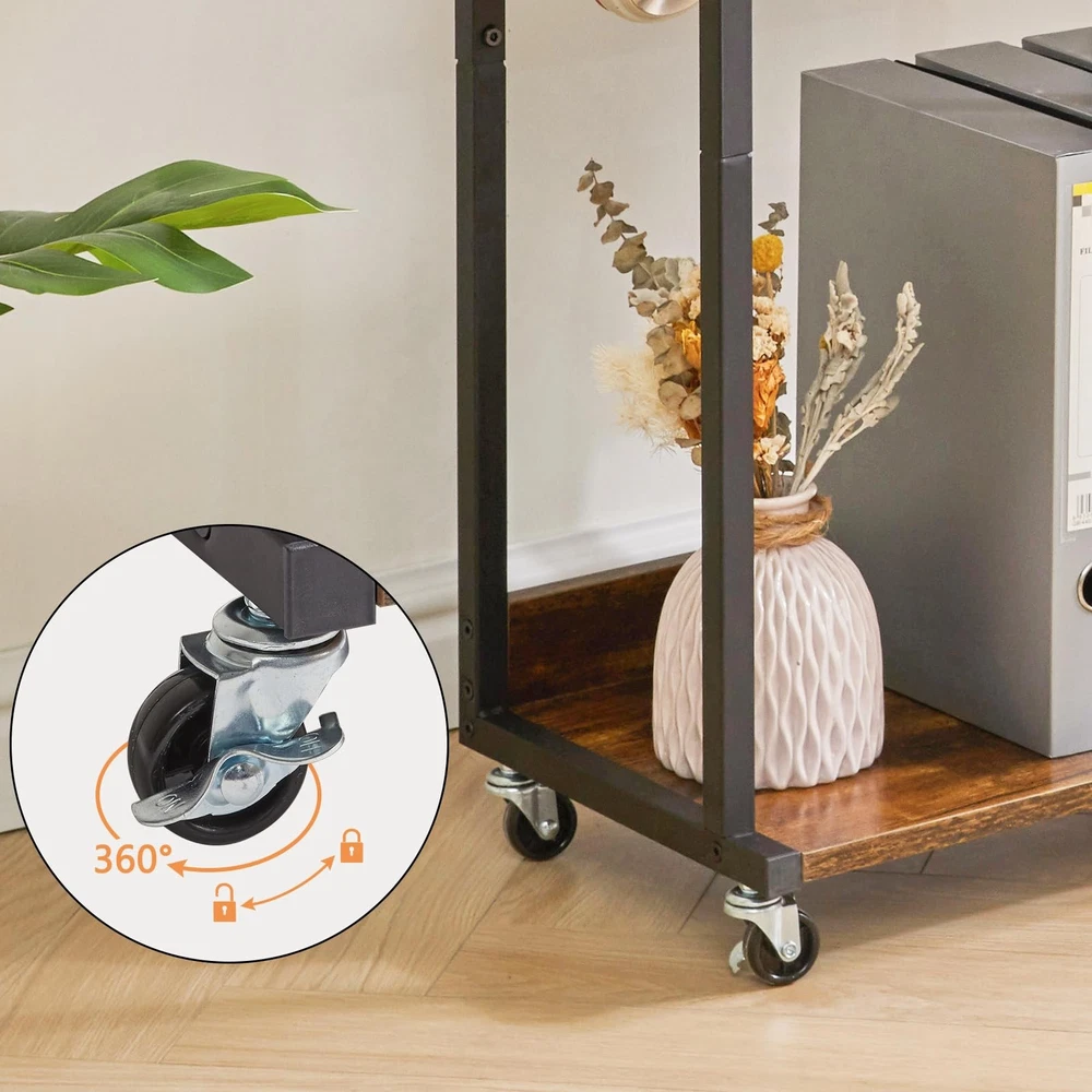 Tall Printer Stand HPT002H 3 Tier Storage Design: The top space of the computer stand is great for the printer and fax machines. The next panel and 6 S-Hooks can store your work supplies, stationery, and documents. And the space below is suitable for the computer host and Shredder. The second layer adopts an adjustable layer board design, which can be suitable for storage needs of different heights Sturdy and Heavy Duty: The CPU stand comprises MDF wood panels and heavy-duty iron frames, which ensures strong stability. The sturdy metal frame can firmly support items placed on the home desktop printer stand. For home office as an great addition to the desk space Easy to Move: Equipped with four wheels that can turn 360 degrees, two of which can be locked. When you need to work, you can lock the wheels and fix them on the edge of your desk. It is also very convenient to move large computer hosts and Paper shredder Easy to Assemble: Comes with all tools needed, including screwdriver, and all parts are labeled with a sticker matching to instruction. You can definitely complete the installation easily and smoothly by following clear and detailed instruction Product Size: 32.28*17.32*11.81'' , Use a clean and damp cloth to wipe the surface