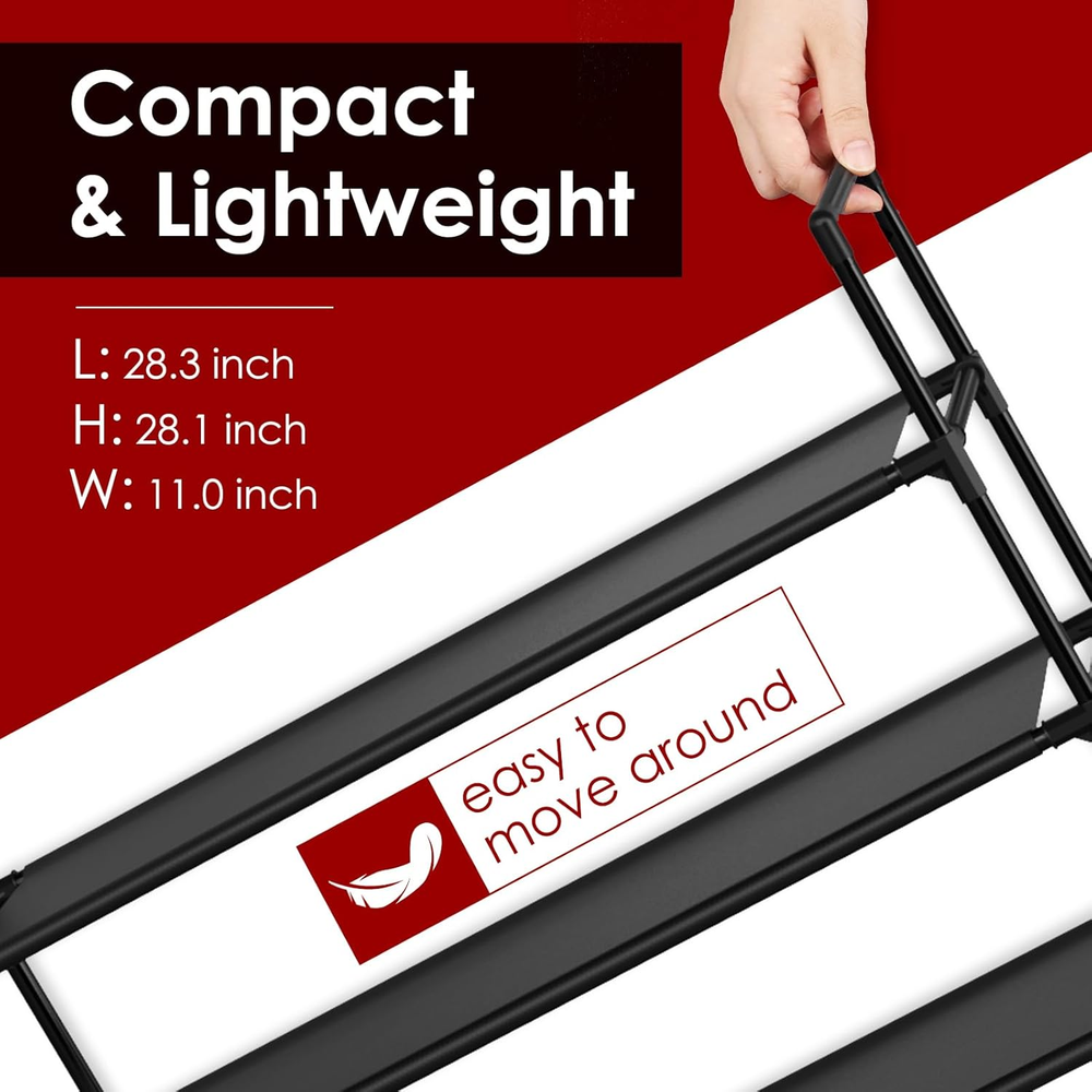 Store New Arrivals Add to Favorite View Feedback Contact Shoe Rack with Non-Woven Fabric - 3-Tier Shoe Organizer for Closet, Garage, Corridor & Entryway, Sturdy and Stackable, X-Large, Black Description Item model number US653 Style Modern Number of Items 1 Number of pieces 1 Country of Origin China Shelf Thickness 6.7 Inches Room Type Entryway, Garage, Closet, Bedroom, Living Room Assembly Required Yes Batteries required No Product Dimensions 11"D x 28.3"W x 28.1"H Min Required Door Width 28 Inches Installation Type Freestanding Product Name Shoe Rack" or "Shoe Organizer Finish Type Black Specific Uses For Product Shoe storage and organization in various home spaces, including bedrooms, living rooms, entryways, closets, and garages. Included Components Assembly Hardware Age Range (Description) No age limit Item Weight 2.14 pounds Number of Shelves 3 Material Metal, Non-Woven Fabric Mounting Type Floor Mount Special Feature Shoe Organizer, Sturdy, Large Capacity Shelf Type Metal Shape Rectangular Manufacturer Sakugi Color Black Furniture Finish Black Recommended Uses For Product Shoe storage and organization in various home spaces, including bedrooms, living rooms, entryways, closets, and garages. Finish types Black Model Name US653 Brand Sakugi Product Care Instructions Wipe with Dry Cloth Size X-Large Ample Space For Your Shoe Collection: Designed with tiered levels for organized storage, these shoe shelves offer a versatile solution for your footwear Sturdy Metal Construction: Crafted with rust-proof coated steel tubes and non-woven fabric, Sakugi shoe organizer for closet floor is made to last Compact Size:The minimalist frame design is easy to move around and position in tight spaces Customizable Storage: Sakugi closet shoe organizer features a stackable design that is perfect for customizing storage to fit your space Multi-Use Organizer: The compact shoes organizer fits perfectly in small home spaces like garages, walk-in closets, entryways, and living rooms Product Description Explore More Add to Cart Customer Reviews 4.0 out of 5 stars 3,903 4.0 out of 5 stars 3,903 4.0 out of 5 stars 3,903 4.0 out of 5 stars 3,903 4.0 out of 5 stars 3,903 4.0 out of 5 stars 3,903 Price $15.99 $ 15 . 99 — — $12.99 $ 12 . 99 $14.99 $ 14 . 99 $14.99 $ 14 . 99 Number of Tiers 3-Tier 3-Tier 3-Tier 3-Tier 4-Tier 5-Tier Size X-Large X-Large X-Large X-Large XX-Large XXX-Large Color Black White Gray Brown Black Black Dimension 11.0"D x 28.3"W x 28.1"H 11.0"D x 28.3"W x 28.1"H 11.0"D x 28.3"W x 28.1"H 11.0"D x 28.3"W x 28.1"H 11.0"D x 28.3"W x 34.6"H 11.0"D x 28.3"W x 42.5"H Customizable ✔ ✔ ✔ ✔ ✔ ✔ ABOUT US We offer the best prices around on high quality products. Our E-store includes media such as books, movies, music and games while offering electronics, toys, sporting apparel, clothing, tools, general home, garden items and more. SHIPPING We are always working hard to ensure your package arrives as soon as possible. Please understand that some factors like weather, high postal traffic, and the performance of shipping companies are outside of our control. We offer free shipping to the lower 48 states and ship within 2 business days of payment, usually sooner. We do not accept P.O. Boxes. Please provide a physical address. RETURNS We offer a 30-Day Return Policy on items which you are not completely satisfied with. You have the option for a full-refund or an exchange of the item. No returns are available on items shipped outside of the USA. PAYMENT We accept PayPal. CONTACT US This page content is yet to come Please ad us to your favorite seller and visit again later Thank You CUSTOMER SATISFACTION We try our very best to make sure every customer is completely satisfied. If there's a problem, message us! We're happy to help.