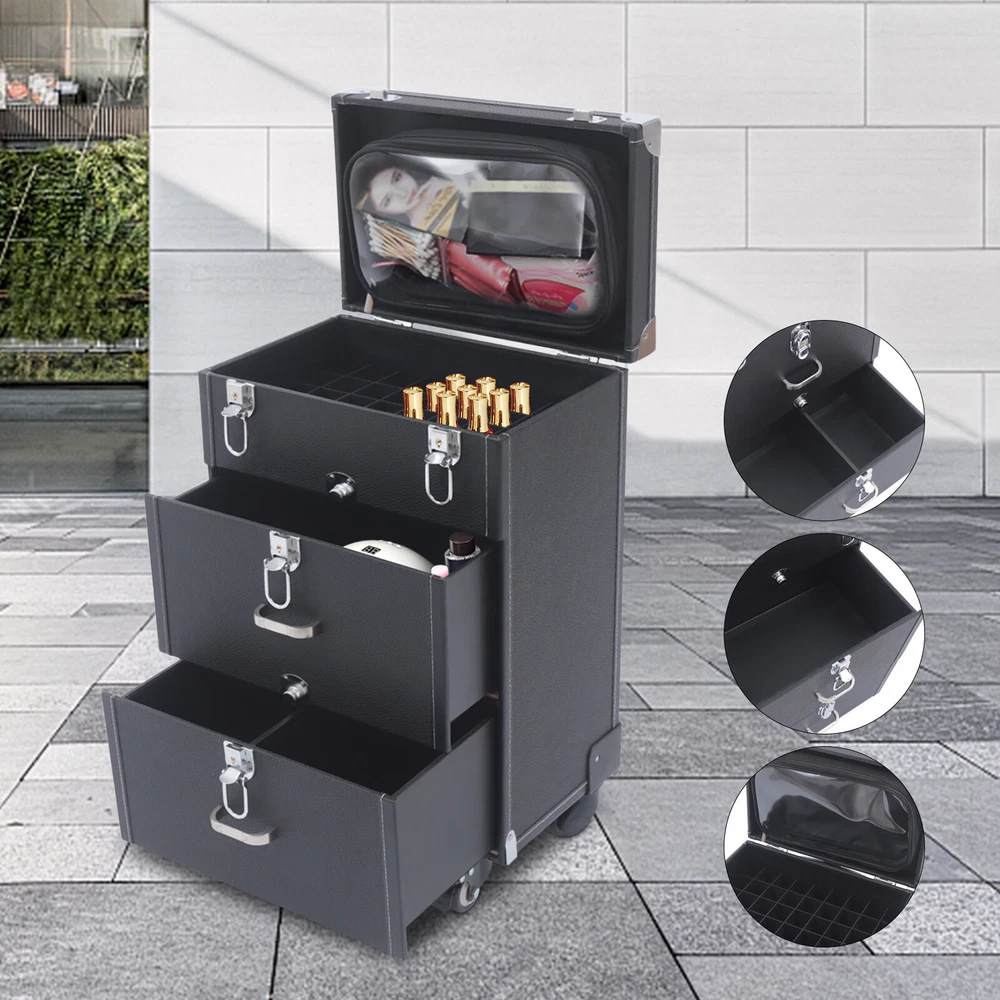 3-Tier Rolling Makeup Train Case Nail Polish Storage Box Organizer Cosmetics BOX 3-Tier Rolling Makeup Train Case Nail Polish Storage Box Organizer Cosmetics BOX Description This is a cosmetics rolling organizer with a large capacity. You can use it to store all your cosmetics. This organizer is made of high-quality PU material. It is very durable. Besides, it has a delicate and beautiful appearance. Furthermore, the wheel design makes it very easy to carry and transport. It is a good choice. Specification Color: Black Body Material: PU Latch Material: Zinc Alloy Wrapped Corners Material: Zinc Alloy Number of Layers: 3 Shape: Rectangular Telescopic Rod Length (Max.): 45cm/17.8inch Case Size: 36 * 23 * 49cm/14.2*9*19.3inch Wheel Height: 7cm/2.8inch Lid Height: 5cm/2inch Upper Layer Size: 36*23*9cm/14.2*9*3.5inch Middle Layer Size: 36*23*17cm/14.2*9*6.7inch Bottom Layer Size: 36*23*17cm/14.2*9*6.7inch Upper Layer Inside Size: 33.5*22*8cm/13.2*8.7*3inch Each Upper Compartment Size: 3.5*3.5*4.5cm/1.4*1.4*1.8inch Diagonal Length of Upper Layer: 40cm/15.7inch Middle Layer Inside Size: 30*19.5*13.5cm/11.8*7.7*5.3inch Diagonal Length of Middle Layer: 38cm/15inch Each Bottom Layer Compartment Size: 14.5*19*13.5cm/5.7*7.5*5.3inch Diagonal Length of Each Bottom Compartment: 22cm/8.7inch Gross Weight: 10kg/22lbs Package Size: 63*32*41cm/24.8*12.6*16.1inch Package Included 1* Cosmetics Rolling Organizer 2* Keys Warranty 5 Years 1.Feature *: Unique Appearance,Great Durability Highlights Compact Design,Unique Appearance,high reliability Color Black Material PU Brand Unbranded ISBN Does not apply Features Rolling Type Case MPN Does not apply Manufacturer Warranty 1 Year Maximum Length of Telescopic Rod 45cm/17.8'' Number of Layers 3 Shape Cuboid Wheel Height 7cm/2.8'' Lid Height 5cm/2inch Gross Weight 10kg/22lbs On Feb 5, 2025 at 21:48:55 PST, seller added the following information: