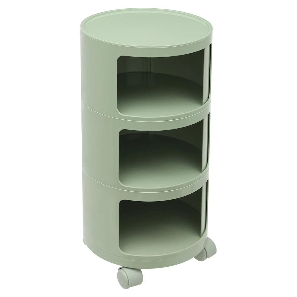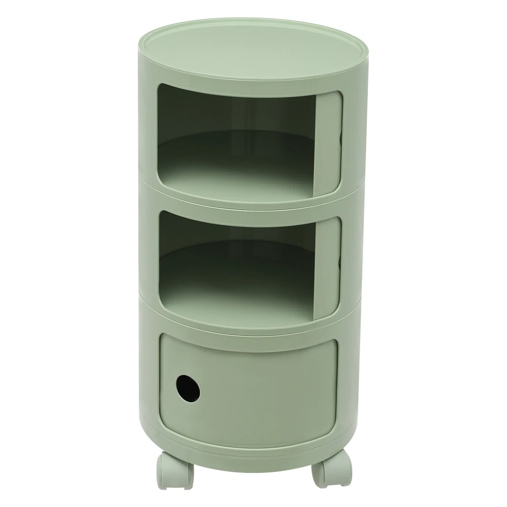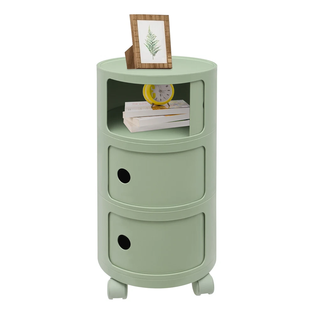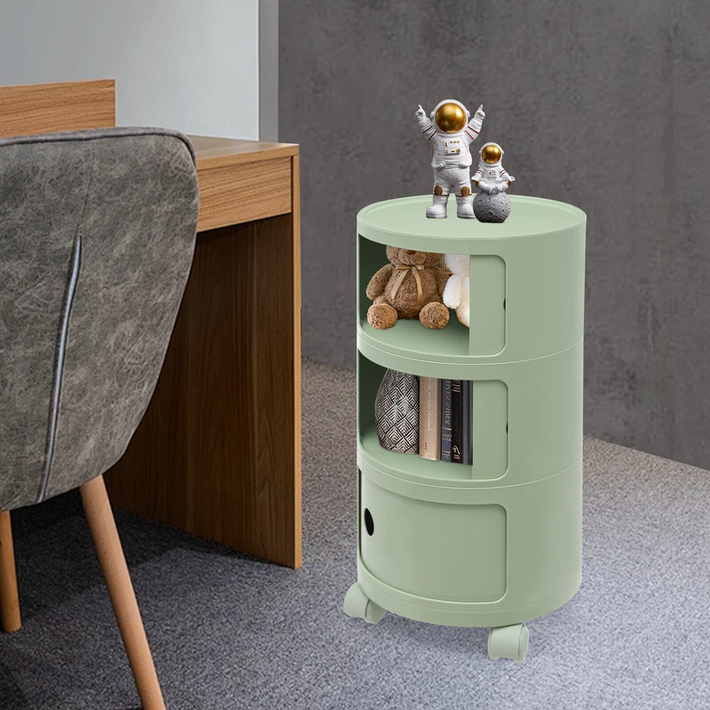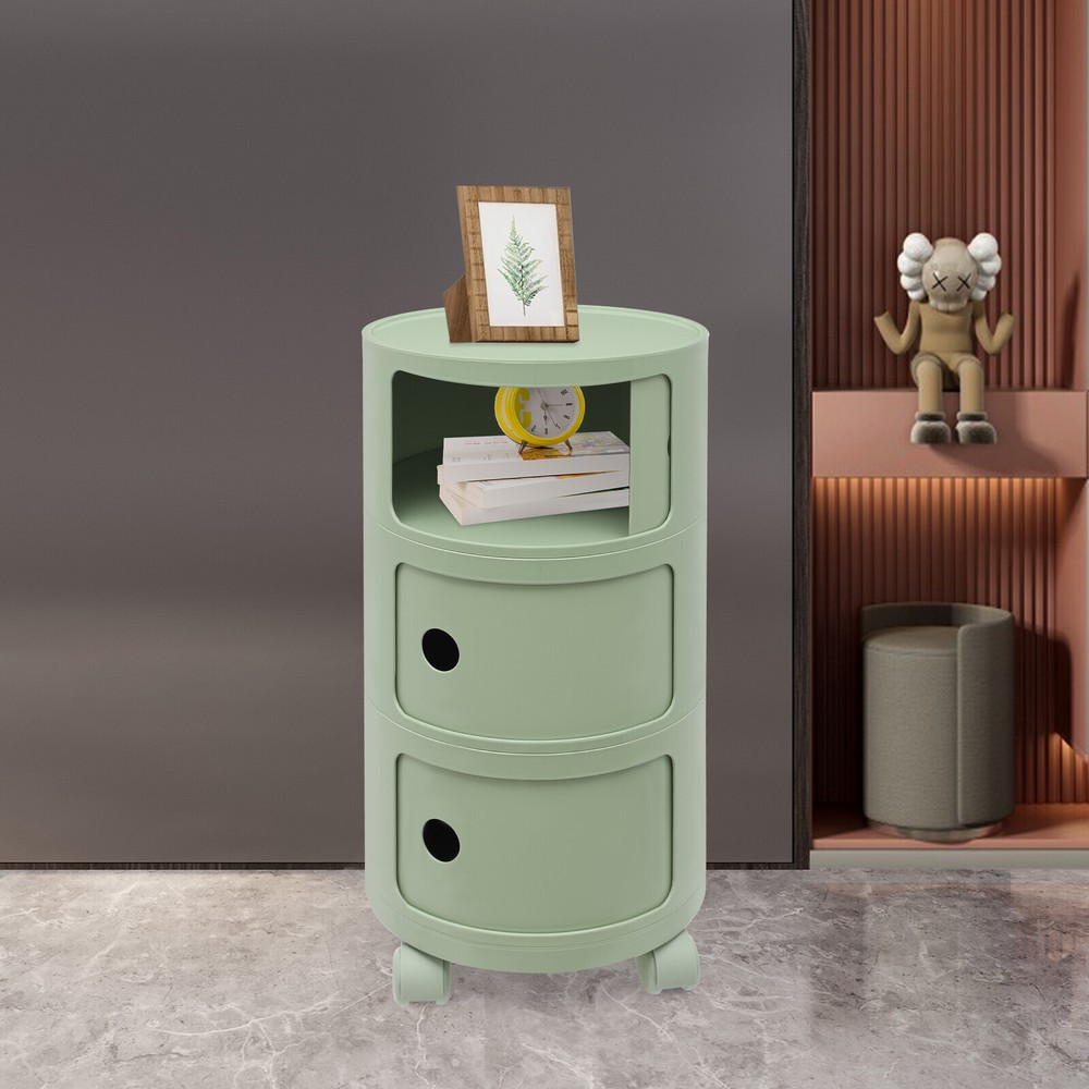 3-tier Round Bedside Cabinet Multifunctional End Table Storage Cabinet w/Wheels Description Are you still struggling with a lack of storage space above your home? Here comes the good helper. This 3-tier bedside cabinet boasts a large size with 3 cabinets and a top space to provide you with enough storage space. The exquisite appearance makes it the finishing touch to a dull room. It stands quietly where you need it and brings you a sense of well-being within reach. Key Features High-quality Material : Made from high-quality ABS material, this product is wear-resistant , safe, water-resistant , sturdy, and durable, so it can withstand the test of time well. Thoughtful Design: Each tier is designed with a sliding door that pushes and pulls smoothly for easy access while preventing items from dusting and enhancing privacy. High Load-Bearing Capacity: The sturdy structure, thickened material, and stable designed wheels allow it to withstand a weight of up to 88.18 pounds without collapsing, allowing you to use it with confidence. Flexible to Move: You can easily move the product anywhere you need it thanks to its four four wheels, giving you a lot of mobility and convenience. Ample Storage Space : The 3-tier product and a wide top platform allow you to classify and store various items, decorations, etc., creating a clean and comfortable living environment for you. Each tier is 7.28 inches in height, providing ample storage space for your usage needs. Powerful Function: This product significantly combines practicality and aesthetics, it is very suitable for many places with storage and tidying needs. It can not only help you organize your room in order, and keep it tidy at all times, but also as an embellishment to make your home more attractive. Fashion Appearance: It adopts a light green color, which is simple, elegant, and very fashionable. Not only is it modern style, but it can also decorate the house. Enjoy Bedtime: After you wash, heat a cup of milk, lie on the bed, select a book(not included) from the bedside table, and enjoy a comfortable bedtime before the end of the tired day. Effortless Cleaning : A smooth surface and simple structure are convenient for cleaning to save you time. Ideal Gift: A simple but elegant design provides natural charm, leading the product to integrate into various decoration styles, so it is a suitable gift for others. Buy with Confidence: We stand behind all our guests and look forward to assisting you with your purchase. It is our pleasure to answer your confusion and questions. The end of the story between us is not "we sell and you buy". Details Round Corners: Compared with traditional square corners, an arc design can better ensure safety during installation and use. Raised Bottom: The raised bottom effectively prevents moisture and facilitates cleaning. Protective Guardrail: It effectively reduces the falling of items and serves a decorative purpose. 3 Round Holes: They facilitate opening and closing cabinet doors. Application It is suitable for indoor places such as the living room, office, bedroom, and cloakroom. It can be used as a bedside table, sofa side table, or storage cabinet for storing cosmetics, books, newspapers, magazines, cups, sundries, etc. Specifications Material: ABS Style: Modern Color: Light Green Mount Type: Freestanding Shape: Round Indoor/Outdoor Usage: Indoor Assembly Required: Yes Number of Tiers: 3 Number of Wheels: 4 Load Capacity: 40kg/88.18bs Gross Weight: 3.3kg/7.28lbs Net Weight: 2.8kg/6.17lbs Product Size(D*H): 12.6*25.2 in Each Tier Height: 18.5cm/ 7.28 in Package Size: 61*35.5*35.5cm/24.02*13.98*13.98in Package Included 1* 3-tier Bedside Cabinet 4* Wheels Notes Please carefully check if the size is suitable before placing an order. Please use the product within its weight capacity to avoid damage. Please note that this product does not include items such as books and newspapers. Please allow the slight color difference caused by the shooting light and 1-3cm error due to manual measurement, and make sure you do not mind before you order. Brand CNCEST UPC 763508618671 Item Height n/a Item Length N/A Item Width N/A Type Nightstand
