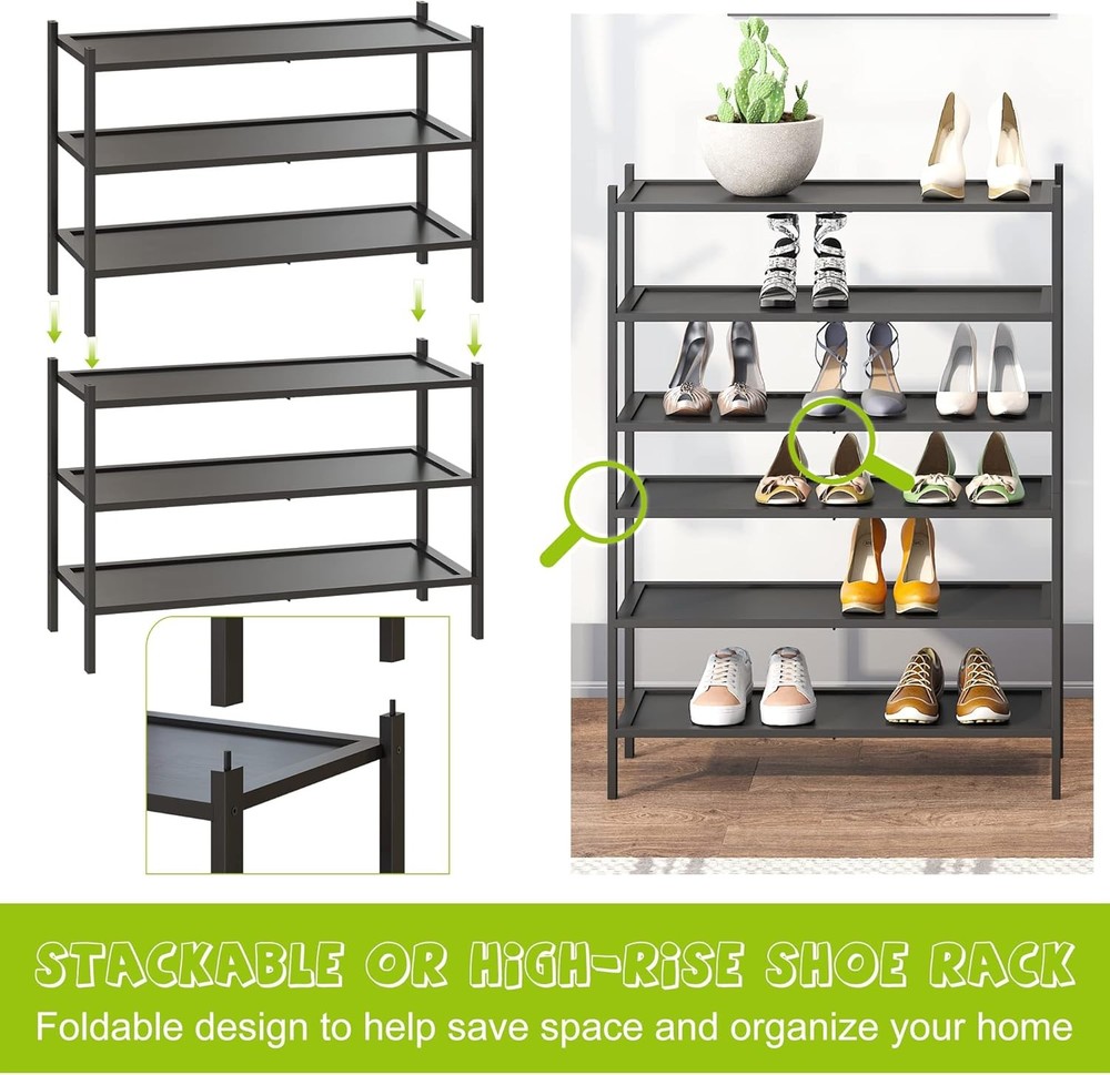 This shoe rack is a game-changer! The stackable design lets me expand storage as needed, and the bamboo looks sleek in my hallway. It holds all my shoes neatly while saving so much space—no more tripping over clutter. The different sizes make it super versatile, and it’s sturdy enough to stay stable even when stacked. Love how it keeps everything organized and tidy!