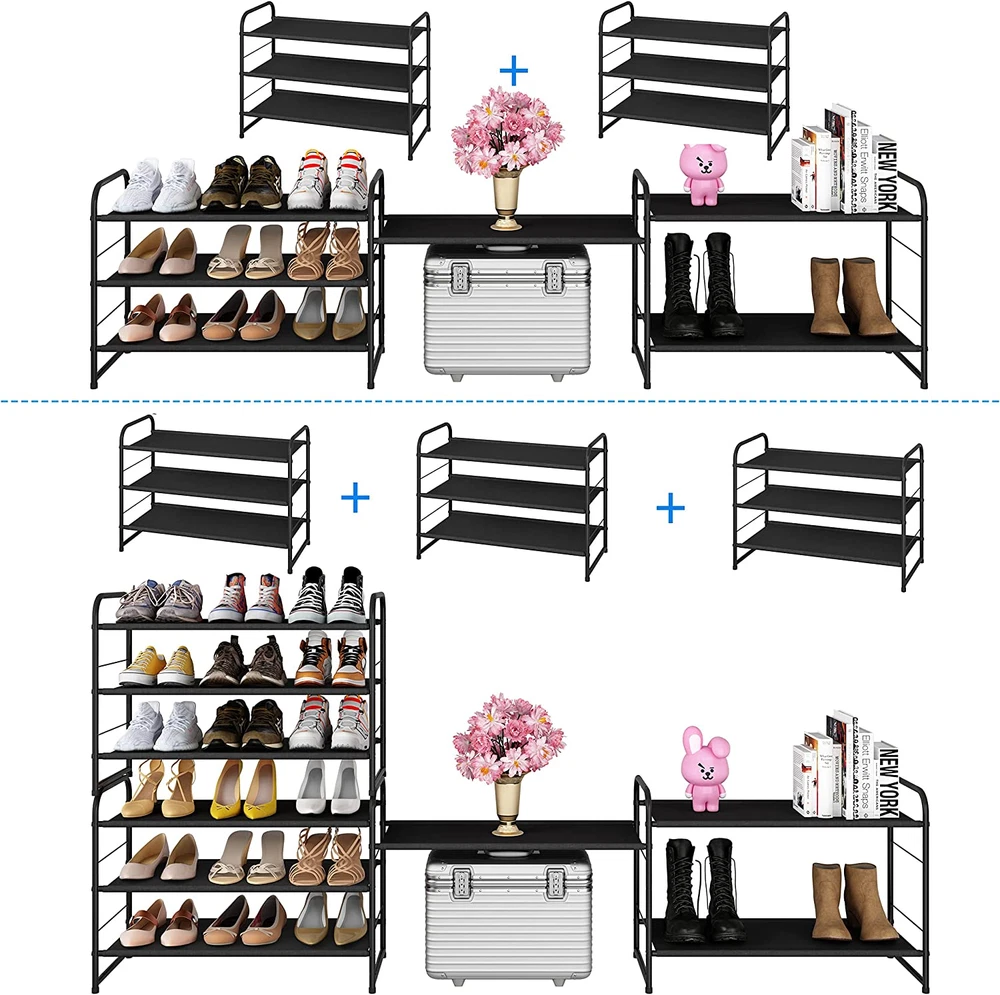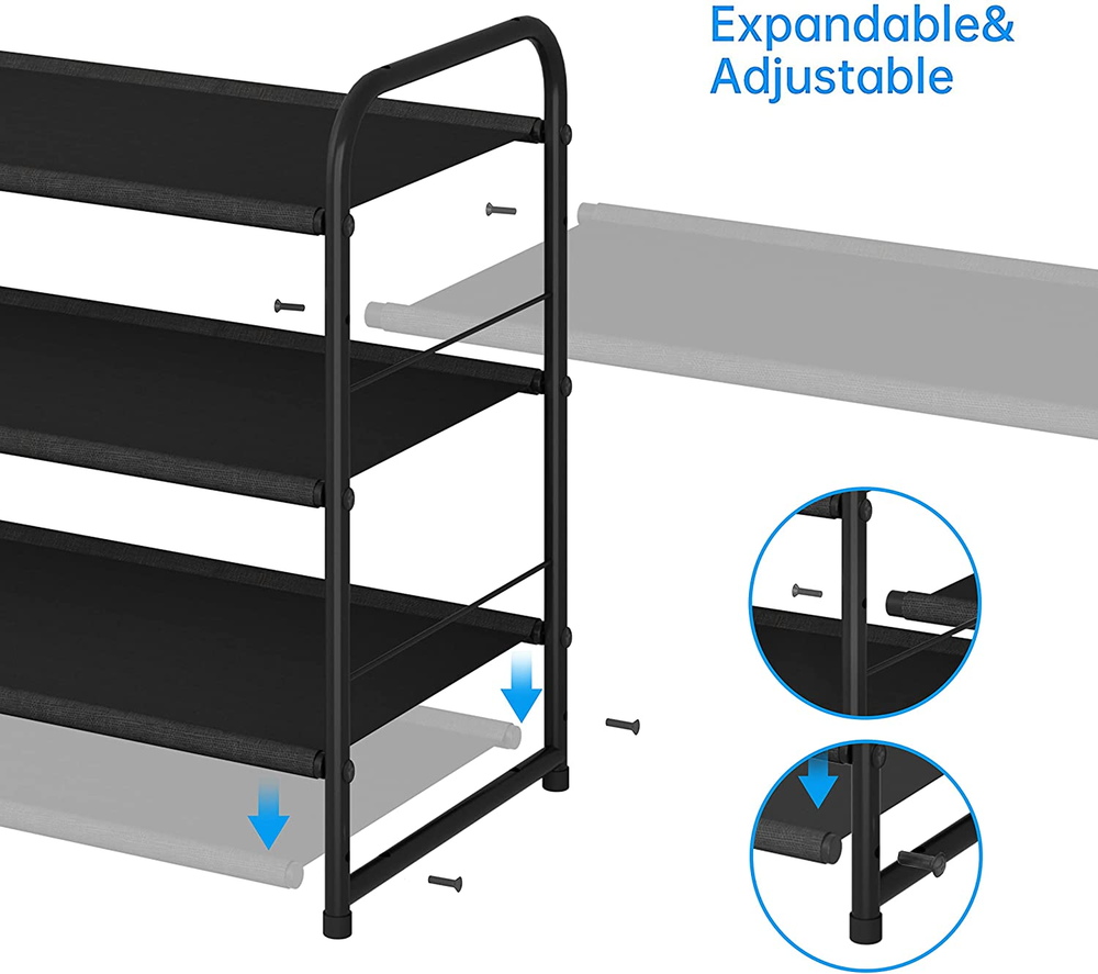 Store New Arrivals Add to Favorite View Feedback Contact Simple Trending 3 Tier Stackable Shoe Rack, Expandable Adjustable Fabric Shoe Shelf Storage Organizer, Black Description Unit Count 3.0 Count Style Minimalist Shelf Type Tiered Shelf Shape Rectangular Assembly Required Yes Color Black Material Metal Mounting Type Freestanding Product Dimensions 11.5"D x 27"W x 19"H Furniture Finish Black Country of Origin China Room Type Kitchen, Living Room Item Weight 3.25 pounds Installation Type Freestanding Age Range (Description) Adukt, Kid Number of Shelves 3 Manufacturer Simple Trending Included Components Connectors, Spoke Clips Recommended Uses For Product Shoe Special Feature Adjustable Height, Stackable, Expandable, Durable, Multifunctional Brand Simple Trending Finish Type Powder Coated,Coated,Multiple Size 3Tier 3 TIER SHOE RACK:Stores up 9-12 pairs of shoes for men, women, additional bottom storage for slippers, Allow extra storage which can hold sundries in your kitchen, living room Multifunctional:In the living room, the shelves can hold sundries,Put it in the closet and keep the clothes neat, Make the utility room looks cleaner STACKABLE EXPANABLE:Include 4 connectors and stack up to multiple units that maximizes storage space in the same footprint, or bridged horizontally to expand the unit Purchase 2 and more units to build horizontally and vertically storage ADJUSTABLE TIER HEIGH:Easy assembly Simple clip the shelves into the frame, You can easily adjust the height of shelves accommodates different sizes of shoes. Even the High Boots, you can store it easy STURDY DURABILITY:Made of thickened metal tube with power coated finish which is smooth and with strong corrosion resistance, Simple structure design makes it very easy to assemble Product Description Simple Trending 3-Tier Stackable Shoe Rack, Expandable & Adjustable Fabric Shoe Shelf Storage Organizer, Black ABOUT US We offer the best prices around on high quality products. Our E-store includes media such as books, movies, music and games while offering electronics, toys, sporting apparel, clothing, tools, general home, garden items and more. SHIPPING We are always working hard to ensure your package arrives as soon as possible. Please understand that some factors like weather, high postal traffic, and the performance of shipping companies are outside of our control. We offer free shipping to the lower 48 states and ship within 2 business days of payment, usually sooner. We do not accept P.O. Boxes. Please provide a physical address. RETURNS We offer a 30-Day Return Policy on items which you are not completely satisfied with. You have the option for a full-refund or an exchange of the item. No returns are available on items shipped outside of the USA. PAYMENT We accept PayPal. CONTACT US This page content is yet to come Please ad us to your favorite seller and visit again later Thank You CUSTOMER SATISFACTION We try our very best to make sure every customer is completely satisfied. If there's a problem, message us! We're happy to help.