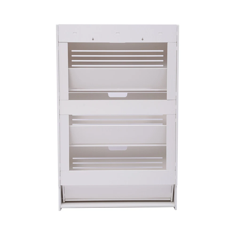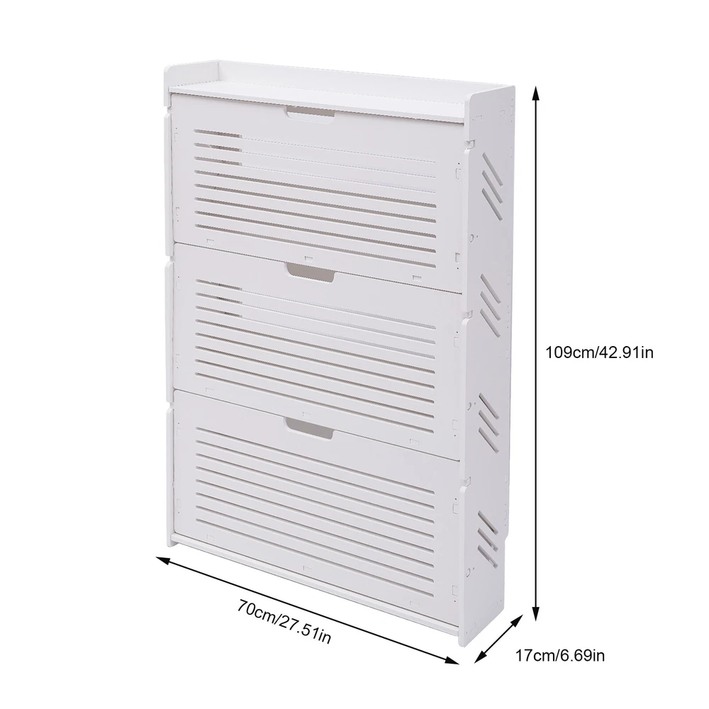 Specification Color: White Installation Type: Freestanding Style: Modern Shape: Rectangular Material: PVC Number of Tiers: 3 Load Capacity Per Tier: 5kg/11.02lbs Gross Weight: 8.3kg/18.3lbs Net Weight: 8kg/17.64lbs Plate Thickness: 10mm/0.39inch Product Size: 70*17*109cm/27.56*6.69*42.91inch Package Size: 116*37*9cm/45.67*14.57*3.54inch 3-Layer Shoe Organizer White Tipping Shoe Cabinet Shoe Rack Cabinet for Entryway Description Are you still worried about having too many shoes lying on the mat at your entrance? This flip-up white shoe cabinet is just what you need! It is made up of three shoe cupboard tiers and a shelf layer, which is enough for your storage needs. You can keep your keys and bags handy, so you can get out more easily and quickly. This shoe cabinet is a good choice for the hallway, living room, and bedroom. Key Features High-quality Material: The shoe cabinet is made of 0.39inch thick PVC plates, which are tough and not easily deformed. It has a good weight-bearing capacity and longe r service life . Great Home Decor : In classic white with a simple design, this shoe storage cabinet provides a sense of modernization, which also enriches your entire entryway and gives your house a new look, showing off your lifestyle. Large Capacity : The shoe storage cabinet has 3 tiers and can store up to 9 pairs of shoes (the number depends on the height of the shoes) to meet your storage needs. Humanized Design: Its surface is smooth without burrs, and it will not scratch the hand. The corners of the frame are designed with rounded corners, so you will not be injured during use. Relieving Your Fatigue: This beautiful shoe cabinet guards the door every day and welcomes you home. It allows you to put away your exhaustion as soon as you get home and start enjoying leisurely home life by taking off your shoes. Organized Lifestyle: This shoe cabinet cleverly integrates shoe storage into life, placing it at the doorway to store your messy shoes, making it pleasing to the eyes as soon as you open the door, bringing you an organized lifestyle. Strong Load-bearing: Each layer of this shoe storage cabinet can be ar about 11.02lbs, e ven if you put heavier leather shoes or boots on it, you can use it with peace of mind. Tipping Bucket Design: The entire shoe cabinet features a tipping bucket design for easy opening and closing, making it very easy to use. It also keeps dust out of the shoe cupboard. Space Saving: With a small footprint of 27.56*6.69 inch at the bottom, it can be placed in every corner of the home. By using the doorway space wisely, even a small entryway can be turned into a storage treasure trove. Easy to Clean: Its PVC material makes it very easy to clean, all you need to do is wipe it down regularly with a dry cloth or wash away any serious stains with soapy water. Easy to Assemble: With all the accessories and instructions included in the package, it is easy and quick to assemble the cabinet without much effort. Easy to Clean: Its PVC material makes it very easy to clean, all you need to do is wipe it down regularly with a dry cloth or wash away any serious stains with soapy water. Easy to Assemble: With all the accessories and instructions included in the package, it is easy and quick to assemble the shoe cabinet without much effort. Details Top Platform: The top platform is spacious enough to hold keys, photo frames, etc., making it very practical. And with an anti-drop fence on the platform, items will not fall easily. Full Plate Layer: The layer rack is designed with a full plate, which can effectively prevent the ash on the bottom of the shoes from falling onto the shoes on the lower layer. At the same time, the full plate layer shelf to place shoes more stable, and even high heels will not fall. Pre-drilled Holes: There are two pre-drilled holes at the top of the back of the shoe cabinet to allow you to fix the cabinet to the wall and prevent it from collapsing. Louvered Doors: Each tier of the shoe cabinet is designed with louver doors for breathability, which accelerates the air circulation in the cabinet and inhibits the growth of bacteria. Concealed Handle: The concealed pull handle is semi-circular. The curved shape is not only subtle and beautiful but also makes it easy to open and close the shoe cabinet without hurting your hands. Reserved Skirting: The skirting at the bottom of the back of the shoe cabinet keeps the cabinet close to the wall and is not easily shaken. Gloves: You can wear the gloves included in the package for installation to prevent abrasion of your hands. Application It is suitable to be placed at the door, living room, or bedroom used to place slippers, casual shoes, high heels, boots, leather shoes, and other shoes, as well as some daily necessities such as keys, books, and umbrellas. It can be used as a shoe cabinet, bookshelf, and storage rack. Specification Color: White Installation Type: Freestanding Style: Modern Shape: Rectangular Material: PVC Number of Tiers: 3 Load Capacity Per Tier: 5kg/11.02lbs Gross Weight: 8.3kg/18.3lbs Net Weight: 8kg/17.64lbs Plate Thickness: 10mm/0.39inch Product Size: 70*17*109cm/27.56*6.69*42.91inch Package Size: 116*37*9cm/45.67*14.57*3.54inch Package Included 1 * Shoe Cabinet 1 Pair * Gloves 1 * Mobile Phone Holder 2 * Fixing Backing 1 * English Manual Other Accessories for Installation Notes Please allow the slight color difference caused by the shooting light and 1-3cm error due to manual measurement, and make sure you do not mind before ordering. Payment Delivery details Terms of sales About us Contact us Payment We accept ebay payment 。 Fees such as import duties, taxes are not included in the item price or shipping costs. These charges are the buyer's responsibility. Delivery details Shipping: 2-9 working days to: USA Terms of sales We maintain high standards of excellence and strive for hundred percent customer satisfaction. Feedback is very important to us. We hope that you contact us immediately b