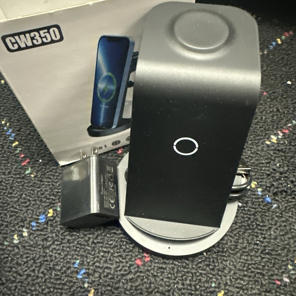3 in 1 CW350 Black Multiple Devices Charging Dock Stand For iPhone Open Box. Condition is Used. Shipped with USPS Ground Advantage.