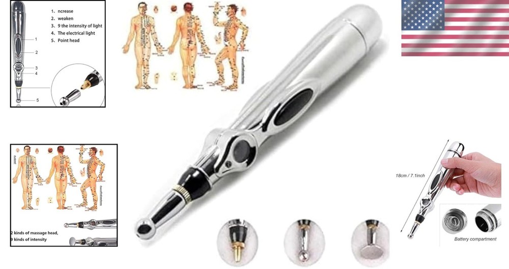Acupuncture Pen 3-in-1 Electronic Acupuncture Pen for Pain Relief, Powerful Meridian Energy Pulse Massage Pen, Includes Massaging Gel ‹ › ‹ › ‹ › ‹ › ‹ › ‹ › ‹ › ‹ › 3-in-1 Electronic Acupuncture Pen for Pain Relief Discover a new dimension of wellness with our cutting-edge Acupuncture Pen. Meticulously designed for those seeking relief and rejuvenation, this powerful device harnesses the energy of meridian therapy and transforms it into a soothing experience. Product Features: Three Versatile Massage Heads: Tailor your experience with 3 unique heads: Dome Type for facial rejuvenation; Node Type for alleviating body pains; and Spheroidal Type for quick pain relief. Nine Adjustable Power Levels: Customize your treatment with nine distinct energy levels. Identify acupuncture points easily by observing the pulse sensation as you glide the pen across your skin. Heals through Massage: The Meridian Energy Pen operates through magnetic and acupuncture principles, ensuring a gentle yet effective treatment experience. User-Friendly Design: This portable hand-held device features a digital display for easy operation. Simply press the start button to adjust the intensity, making self-care an effortless task. Safe and Family-Friendly: Powered by one 2 AA battery (not included). Enjoy a side-effect-free experience, suitable for home use. Package Includes: 1 Acupuncture Pen (battery not included) 3 Metal Massage Heads 2 Cases of Massaging Gel User Manual for effortless guidance How to Use: Insert a 1.5V AA battery into the pen. Press the start button until the display shows "0". Gently place the probe on your skin and slide slowly to locate acupuncture points. Adjust the intensity from "0" to "9" using the "+" or "-" button. Return to "0" when finished; the pen will auto-turn off after 3 seconds. Why Choose Our Acupuncture Pen? Say goodbye to discomfort and hello to a revitalizing journey toward well-being! Our 3-in-1 Electronic Acupuncture Pen is a must-have for anyone looking to relieve pain, promote relaxation, and rejuvenate the skin. Easy to use, customizable for your needs, and effective, this pen is the perfect addition to your wellness routine. Elevate your self-care game and experience the transformative benefits of precision acupuncture therapy right in the comfort of your home. Order your Electronic Acupuncture Pen today for a life where pain doesn't hold you back! Shipping Free & Fast Shipping - We offer free shipping to most of the USA with a normal delivery time of 3-7 days. However, due to the current situation, additional delivery time (up to 3 weeks) may be required for some items. Alternative Carriers - We may use alternative carriers (e.g. USPS, FedEx, UPS, etc.) to ensure your package arrives safely and on time. Due to the use of multiple carriers, we are unable to provide a tracking number automatically. Handling Time - Orders are processed and shipped within 1-2 business days of receiving cleared payment. Shipping Restrictions - Shipping to Alaska, Hawaii, Puerto Rico, Guam, and other US territories may incur shipping charges or delivery restrictions. Please contact us before ordering, or your order can be refunded/cancelled. State Restrictions - There may be restrictions based on your state of purchase. For example, certain items may not be shipped to California due to state regulations. Contact for Tracking Updates - If you require tracking updates or have any concerns about the delivery of your order, please feel free to contact us, and we will be happy to assist you. Return 30-Day Hassle-Free Returns - We want you to be completely satisfied with your purchase. If you are not, you can return the item within 30 days of receiving it for a full refund or exchange. Easy Return Process - To start a return, simply contact us and we will provide you with a prepaid return shipping label and detailed instructions. Restocking Fee - There are no restocking fees for returns. However, the buyer is responsible for return shipping costs if the return is not due to a seller's error. Refund Processing Time - Refunds will be processed within 5 business days of receiving the returned item in its condition. Payment We accept all major credit cards, PayPal, and Apple Pay for your convenience. Your payment information is secure and encrypted to ensure a safe and seamless transaction. Please complete your payment within 3 days of purchase to avoid any delays in shipping. Feedback Your feedback is extremely important to us. We strive to provide the best products and customer service possible. If you are satisfied with your purchase, please take a moment to leave us a positive review. If you have any concerns or issues with your order, please contact us before leaving negative feedback. We are committed to resolving any problems and ensuring your satisfaction. Contact Us If you have any questions or concerns, please feel free to out to our customer support team. You can contact us through the eBay messaging system. We are available Monday to Friday, 9:00 am to 5:00 pm EST, and we will do our best to respond to your inquiry within 24 hours. Buy it now and enjoy a pleasant shopping experience! Expiration Date: 2024-12-31 Unit Quantity: 1 Material: Metal Labels & Certifications: Acupuncture Pen for Pain Relief Body Area: Back Set Includes: Battery,3* metal head,2* Cases of gel,1* User Manual Features: Reusable,Three Massage Heads,Nine Power Levels,User Friendly,Safe and Portable,Heals through Massage Main Purpose: Pain Relief Power Source: Battery,Battery powered Type: Acupuncture-Pen Color: Metallic Number of Settings: 9 Item Diameter: 5.51 in Item Weight: 2.47 oz