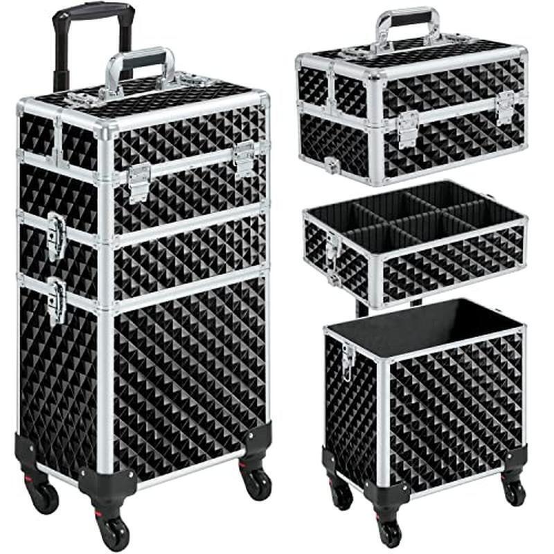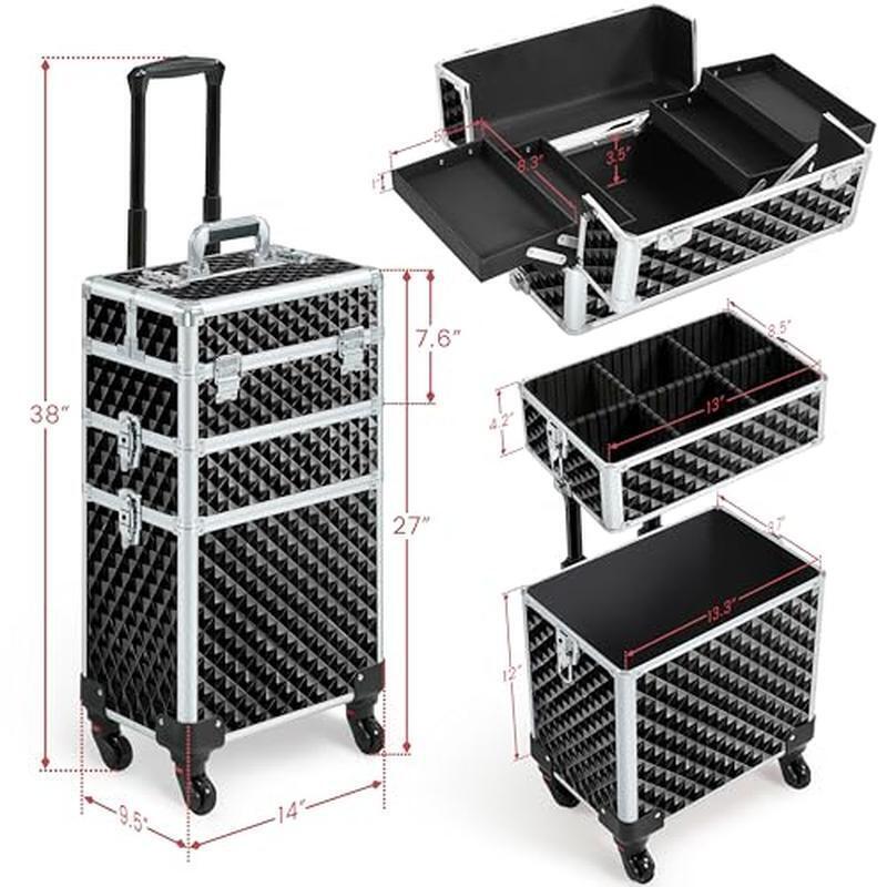 3 In 1 Transformable Cosmetic Trolley: The top compartment of this rolling makeup case doubles as a convenient portable cosmetic box, so you can carry it wherever you go. The middle part can be removed to create a 2-in-1 case based on your work demands Foam-lined Tray & Detachable Dividers: The middle tray of cosmetology case is specially lined with foam to keep your glass bottles and accessories safe and sound, while the five detachable dividers help you to customize the interior configuration to accommodate items of various sizes Extra Safety and Durability: All latches of this makeup case on wheels are lockable, providing an additional layer of security. Two keys are included for your convenience. The corners and edges are rounded and carefully protected with metal, offering enhanced durability and sturdiness 360-Degree Swivel Wheels: This train case with 360-degree rubber wheels is designed to safely and effortlessly transport your beauty products. Its pull handle with hexagonal telescopic rods can be securely attached to the case with a strap, ensuring added stability during travel Versatile For Makeup & Beauty Enthusiasts: This travel makeup case is an essential item for professional makeup artists, manicurists,and hair stylists. This case offers generous storage capacity, and easy portability, making it ideal for use on the move or in a salon environment You may also like Select A Size Mega Paper Towels 6 Rolls 1080 Sheets Absorbent Quick Clean Up New 27.18 USD 28.61 USD Free shipping 5% off TENS EMS Muscle Stimulator Pain Relief Device Back Neck Sciatica Therapy Red New 74.0 USD 77.9 USD Free shipping 5% off Cobalt Blue Iced Tea Goblets Set Of 12 Dishwasher Safe Drinking Glasses Wedding 72.67 USD 76.49 USD Free shipping 5% off 2 In 1 Infrared Meat Thermometer Instant Read Grill BBQ Pizza Oven Tool Black US 36.73 USD 38.66 USD Free shipping 5% off Bamboo Cutting Board Set Kitchen Chopping Serving Charcuterie Meal Prep Natural 51.49 USD Free shipping 10 Ton Hydraulic Crimping Tool 9 Dies Battery Cable Wire Rope Crimper Black New 53.05 USD 55.84 USD Free shipping 5% off Flex Head Ratcheting Wrench Set 12 Pc Anti Slip 72 Teeth Storage Case Flex New 74.02 USD 77.92 USD Free shipping 5% off Cool Mist Humidifier Filter Free Quiet Small Room Vapor Comfort White Plastic US 72.46 USD 76.27 USD Free shipping 5% off Mini Stepper Home Exercise Compact Hydraulic Alloy Steel Black Adjustable Pedal 56.8 USD 59.79 USD Free shipping 5% off Waterproof Marine Dry Box IP67 Fishing Boating Gear Storage Outdoor Adventure US 49.05 USD Free shipping Non Latex Resistance Band Roll 25 Yards Exercise Rehab Pilates Therapy Red New 57.8 USD 60.84 USD Free shipping 5% off Durable Brown Round Resin Planter W/ Drainage Holes Indoor Outdoor Gardening New 28.16 USD 29.64 USD Free shipping 5% off
