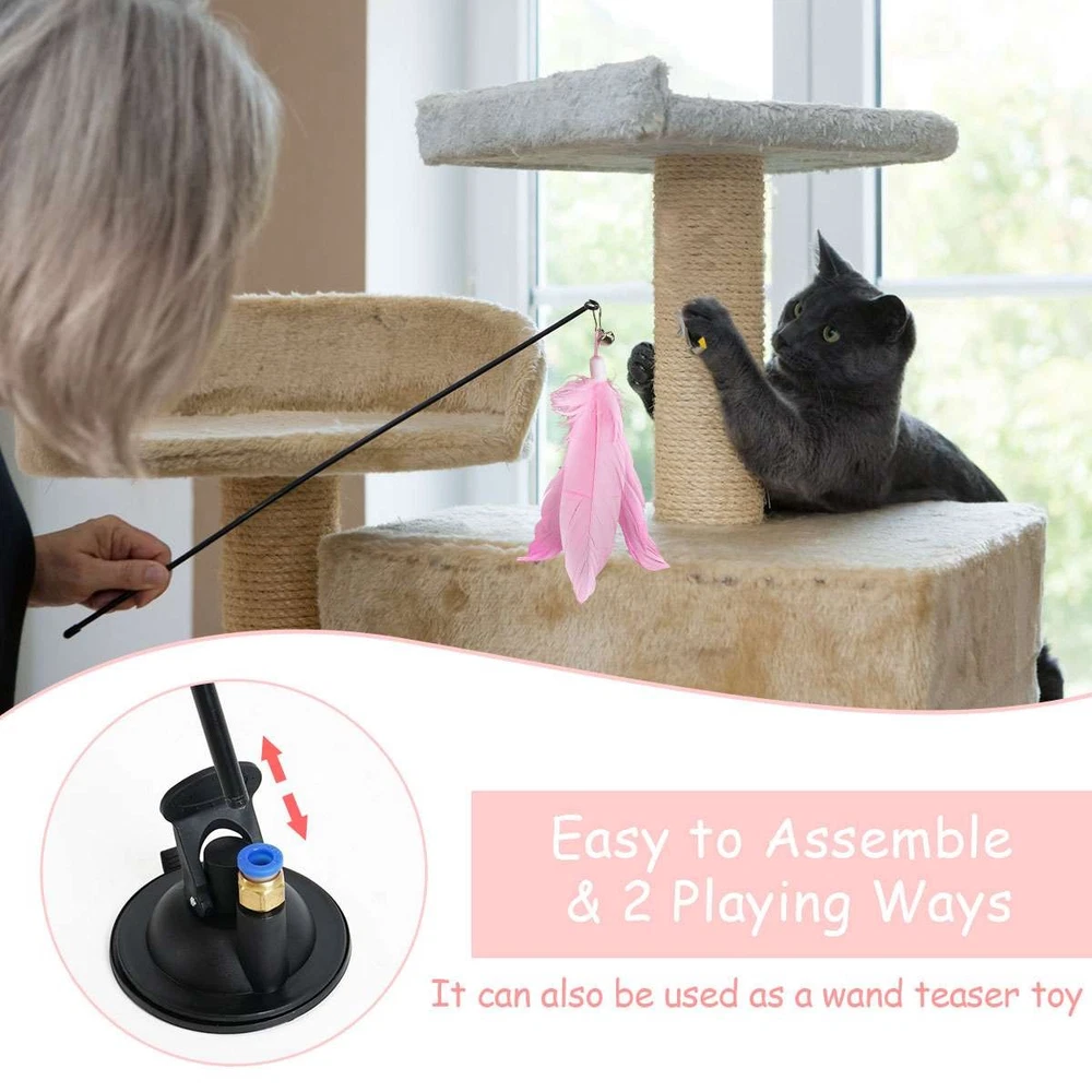Product Description Specifications: Material: ABS + Steel Wire + Feather Color: As Picture Teaser Rod Length: Approx. 80cm / 31.5in Feather Length: Approx. 20cm / 7.9in Bottom Width: 7cm / 2.8in Features: · Interactive Cat Teaser Toy: This interactive cat teaser toy features a flexible wire teaser rod that will swing or wiggle when your kitten pats or touches it, which gives your kitten fun and stimulates your kitten’s natural hunting instincts. · Strong Suction Cup Base: The cat teaser toy has a strong suction cup base that can be easily fixed on a clean flat smooth surface. Simply place the suction cup base on the smooth surface and press down the lever to fix. · Easy to Assemble & 2 Playing Ways: Gently press down the blue tube to unlock and then insert in the wire rod to assemble. Press down the blue tube to release the rod. It can also be used as a wand teaser toy for you to play with your furry friend for building a good relationship. · 3 Feather Attachments: The toy comes with 3 different-colored feather attachments (black, white and pink) for replacement. · Convenient Snap Hook: Convenient snap hook makes it easy to attach the feather attachment to the teaser rod. · Added Small Bell: Added small bell tinkles when your kitty is patting the toy to keep your kitty attracted. · Relieve Boredom & Enhance Exercise: It helps to relieve your kitty’s boredom and enhance your kitty’s exercise for a happy life. Notes: * Do NOT forget to supervise your dear pet when playing with a new toy! * NOT for aggressive pets. * Due to effect of light, camera and monitors, the item’s real color may have slight difference. * Allow slight dimension difference due to manual measurement. * Thank you for your kindly understanding. WARNING for California Residents: This product can expose you to chemicals including Diisononyl phthalate (DINP), which is known to the State of California to cause cancer. For more information, go to: https://www.p65warnings.ca.gov/. Package Includes: 1 X Suction Cup Base 1 X Teaser Rod 3 X Feather Attachments (Others are NOT included) Payment Shipping Returns Feedback PayPal is easy and safey, and we can accept PayPal payment Please do not hesitate to contact us if you have any questions of payment procedures 1.Items dispatched to buyer's PayPal comfimed address from Monday to Saturday(Sunday & Holiday excluded) via USPS within 20 hours after payment has been received.Please check your shipping address carefully before checkout.If you want to change the address, pls kindly contact us through ebay message within three hours after payment.Otherwise, any change information may be disregarded once dispatched. 2.Items are generally shipped usually after an approved payment by the buyer(Saturday and Sunday excluded). 3.Shipping from warehouses in CA usually takes 3-5 business days to reach completion for orders within the US placed by USPS first class mail(tracking numbers available). 4.Do not provide local pick up service. Returns will be accepted within 30 days after delivery. However, if the item is damaged upon arrival, buyers must contact us within 3 days after delivery for any refund or replacement. Returns will not be accepted if buyers caused any damages to the item. Refunds are given as Exchange or Money Back. 1.If you are satisfied with the product you received, please leave us positive feedback and 5 scores DSR. 2.If you are dissatisfied for any reason, please donot be quick to leave negative/neutral feedback. Pls contact with us via Ebay message, We work hard to resolve any problem to make sure EVERY CUSTOMER 100% SATISFIED and always leave positive feedback to all our customer. 3.If you feel delighted with this transation, Pls give us all 5-stars. We strive for 5-star service by providing high-quality goods and perfect service. Therefore, pls take the transaction seriously. (Positive)feedback is simply what we seek for. If you have any problems about your purchase, just let us know through "MY MESSAGES". We promise that we will try our best to solve problem for you since our mission as ebay seller is make sure that you are satisfied with your every transaction. So Pls contact us first to get the best solution before leave a (Negativa)or (Neutral)feedback Payment PayPal is easy and safey, and we can accept PayPal payment Please do not hesitate to contact us if you have any questions of payment procedures Shipping 1.Items dispatched to buyer's PayPal comfimed address from Monday to Saturday(Sunday & Holiday excluded) via USPS within 20 hours after payment has been received.Please check your shipping address carefully before checkout.If you want to change the address, pls kindly contact us through ebay message within three hours after payment.Otherwise, any change information may be disregarded once dispatched. 2.Items are generally shipped usually after an approved payment by the buyer(Saturday and Sunday excluded). 3.Shipping from warehouses in CA usually takes 3-5 business days to reach completion for orders within the US placed by USPS first class mail(tracking numbers available). 4.Do not provide local pick up service. Returns Returns will be accepted within 30 days after delivery. However, if the item is damaged upon arrival, buyers must contact us within 3 days after delivery for any refund or replacement. Returns will not be accepted if buyers caused any damages to the item. Refunds are given as Exchange or Money Back. Feedback 1.If you are satisfied with the product you received, please leave us positive feedback and 5 scores DSR. 2.If you are dissatisfied for any reason, please donot be quick to leave negative/neutral feedback. Pls contact with us via Ebay message, We work hard to resolve any problem to make sure EVERY CUSTOMER 100% SATISFIED and always leave positive feedback to all our customer. 3.If you feel delighted with this transation, Pls give us all 5-stars. We strive for 5-star service by providing high-quality goods and perfect service. Th