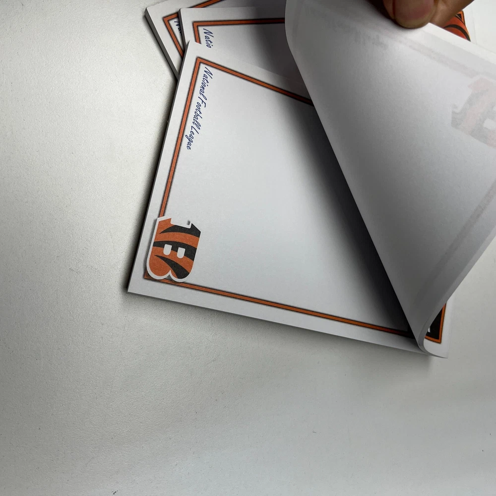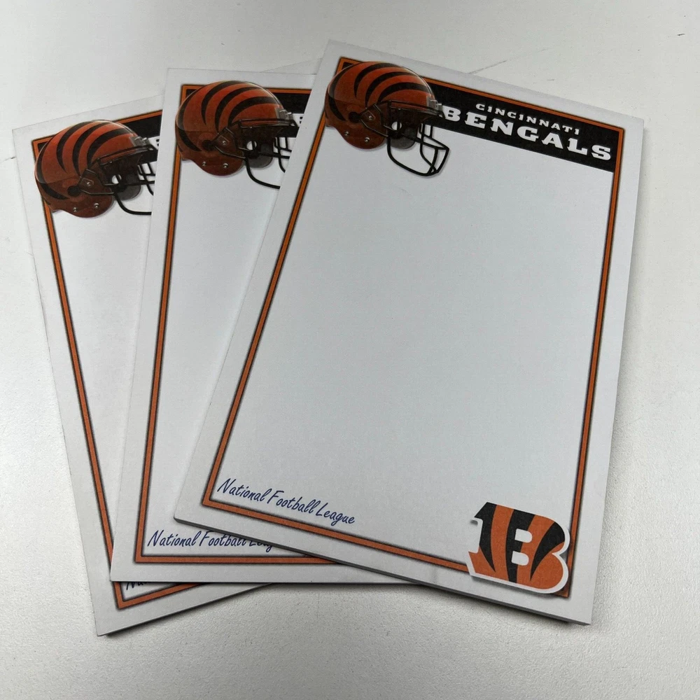 NFL Cincinnati Bengals 3-Pack Note Pads - Official Team Merchandise Stay organized in true Bengals style with this 3-pack of NFL Cincinnati Bengals Official Merchandise Note Pads. Perfect for jotting down notes, reminders, or game-day plans, each pad features a vibrant Bengals logo and colors, showing off your team pride. Features: Quantity: 3 Note Pads Design: Official Cincinnati Bengals Team Logo Sheets per Pad: 40 Paper Type: High-quality, smooth writing paper Size: Standard note pad dimensions Use: Ideal for home, office, or on-the-go Show your support for the Cincinnati Bengals while staying organized with this stylish and functional note pad set. Great for fans, collectors, or as a gift for any Bengals enthusiast! Condition: Brand New Buy Now and add a touch of Bengals pride to your everyday notes! Watches & Battery Operated Items: Our watches are “Collectors Items” 5-10 years old. There are NO working batteries in them! We include TWO watch batteries, but you must replace. Watches will NEED a battery replacement. Other items do not include batteries unless specifically stated! Officially LICENSED & AUTHENTIC Goods: 100% of the goods we sell are from Legitimate USA Wholesalers. We have Invoices for all the products we sell and we do NOT import from overseas. Sports items are from original suppliers like Northwest, Majestic, etc. Most have HOLOGRAM, real logos, and unique Serial Numbers! Competitive Pricing: With all of the new Tariffs and inflation, prices are WAY Up! Our prices are usually the lowest Buy Now you will find on the internet. Rest assured you’re getting a solid Company when purchasing from us, and we are HERE to resolve issues immediately, just Email us. Returns & Money Back Guarantee: We are committed to your satisfaction. If you’re unhappy with our product you may return Single Items in RESELLABLE Condition in 30 days. DO NOT BUY 2+ items unless you will KEEP the product, as those will not be free returns.