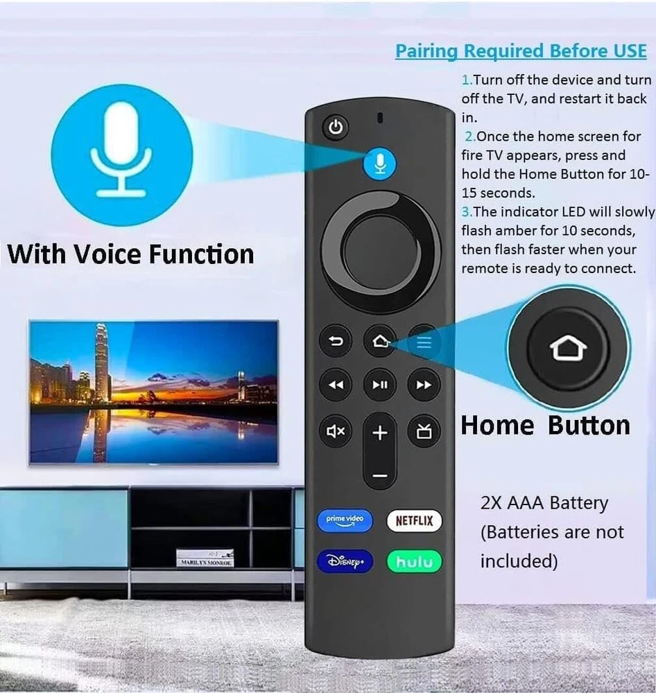 Voice Remote Control Replacement for 3rd Gen TV & Stick - Green Silicone Case < class="slides"> ‹ › ‹ › ‹ › ‹ › ‹ › ‹ › ‹ › ‹ › ‹ › ‹ › ‹ › Voice Remote Control Replacement for 3rd Gen TV & Stick Color: Green Silicone Case Features: <> Voice Functionality: Effortlessly navigate your entertainment with preset shortcut app buttons for Prime Video, Disney+, and Hulu. Quickly jump to your favorite content with the 3rd Gen Voice Remote . Wide Compatibility: Compatible with 3rd Gen TV, TV Stick Lite/Stick (2nd Gen and later), TV Stick 4K/4K Max/4K Bundle, and TV Cube (1st Gen and later). Note: Not compatible with TV (1st and 2nd Gen), TV Stick (1st Gen), or TV Edition smart TVs. Long-Distance Transmission: Enjoy a strong connection with an impressive range of up to 10 meters. Experience fast response times thanks to the new smart chip, ensuring seamless control. Durable Material: The ABS material of the Voice Remote ensures durability, while the silicone green protective case provides a dust-proof barrier and features soft, comfortable plastic keys for ease of use. Simple Setup: Pairing is required before use. Just press and hold the Home button for 10-15 seconds until the LED flashes, allowing for easy connection and quick access to your content. Benefits: <> Quick access to favorite apps with shortcut buttons ensures a seamless viewing experience. Enhanced remote control functionality lets you navigate your entertainment system with ease. Designed for both comfort and style with its sleek green silicone case. Reliable pairing ensures you stay connected to your device without interruption. Why choose our Voice Remote Control Replacement? Upgrade your home entertainment experience with our Voice Remote Control Replacement. This remote is not just built to last, but it's also designed for convenience and ease of use. With its dedicated app shortcut buttons, you can enjoy more of your favorite content without the hassle of lengthy searches. The durable materials and ergonomic design ensure comfortable handling and cleanliness. Don't let a worn-out remote control hold you back. Elevate your viewing experience and enhance your access to entertainment today! Purchase your Voice Remote Control Replacement now and enjoy a sophisticated upgrade to your home theater system. Shipping <> <> Free & Fast Shipping - We offer free shipping to most of the USA with a normal delivery time of 3-7 days. However, due to the current situation, additional delivery time (up to 3 weeks) may be required for some items. Alternative Carriers - We may use alternative carriers (e.g. USPS, FedEx, UPS, etc.) to ensure your package arrives safely and on time. Due to the use of multiple carriers, we are unable to provide a tracking number automatically. Handling Time - Orders are processed and shipped within 1-2 business days of receiving cleared payment. Shipping Restrictions - Shipping to Alaska, Hawaii, Puerto Rico, Guam, and other US territories may incur shipping charges or delivery restrictions. Please contact us before ordering, or your order can be refunded/cancelled. State Restrictions - There may be restrictions based on your state of purchase. For example, certain items may not be shipped to California due to state regulations. Contact for Tracking Updates - If you require tracking updates or have any concerns about the delivery of your order, please feel free to contact us, and we will be happy to assist you. Return <> <> 30-Day Hassle-Free Returns - We want you to be completely satisfied with your purchase. If you are not, you can return the item within 30 days of receiving it for a full refund or exchange. Easy Return Process - To start a return, simply contact us and we will provide you with a prepaid return shipping label and detailed instructions. Restocking Fee - There are no restocking fees for returns. However, the buyer is responsible for return shipping costs if the return is not due to a seller's error. Refund Processing Time - Refunds will be processed within 5 business days of receiving the returned item in its condition. Payment We accept all major credit cards, PayPal, and Apple Pay for your convenience. Your payment information is secure and encrypted to ensure a safe and seamless transaction. Please complete your payment within 3 days of purchase to avoid any delays in shipping. Feedback Your feedback is extremely important to us. We strive to provide the best products and customer service possible. If you are satisfied with your purchase, please take a moment to leave us a positive review. If you have any concerns or issues with your order, please contact us before leaving negative feedback. We are committed to resolving any problems and ensuring your satisfaction. Contact Us If you have any questions or concerns, please feel free to out to our customer support team. You can contact us through the eBay messaging system. We are available Monday to Friday, 9:00 am to 5:00 pm EST, and we will do our best to respond to your inquiry within 24 hours. Buy it now and enjoy a pleasant shopping experience! Unit Quantity: 2.89 Item Height: Remote Control for TV Item Length: Remote Control for TV Item Width: Remote Control for TV Compatible Model: Universal,For 3rd Gen TV,For TV Stick Lite,For TV Stick 4K/4K Max/4K Bundle Features: Voice Remote,Voice Function,Preset Shortcut App Buttons,Long-distance Transmission,Fast Response Time,Power-off Memory,Plug and Play Connectivity: Wireless Type: Voice Remote Model: Remote Control for TV Wireless Range: More Than 10 m Unit Type: oz Color: Green